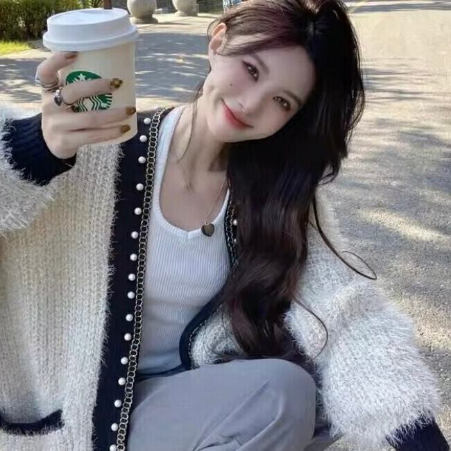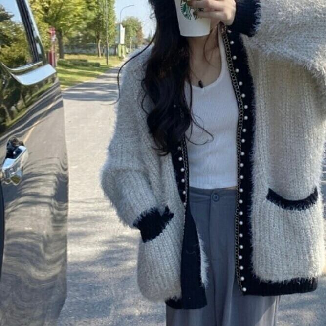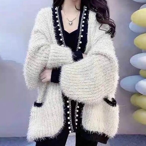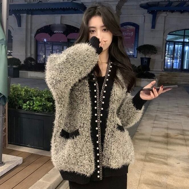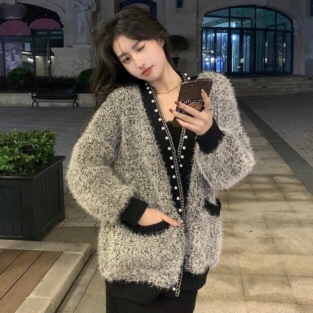 【outer】パールデザインモコモコカーディガン2色 MA0330