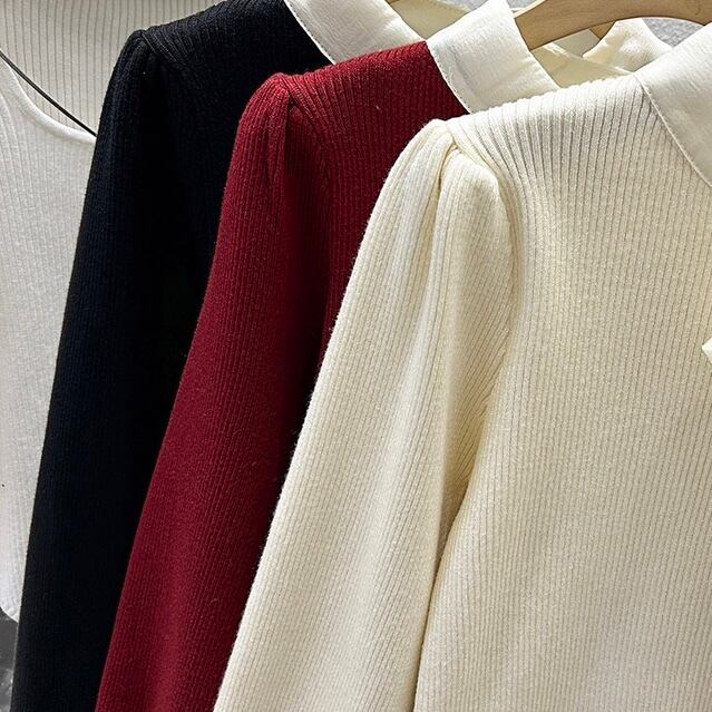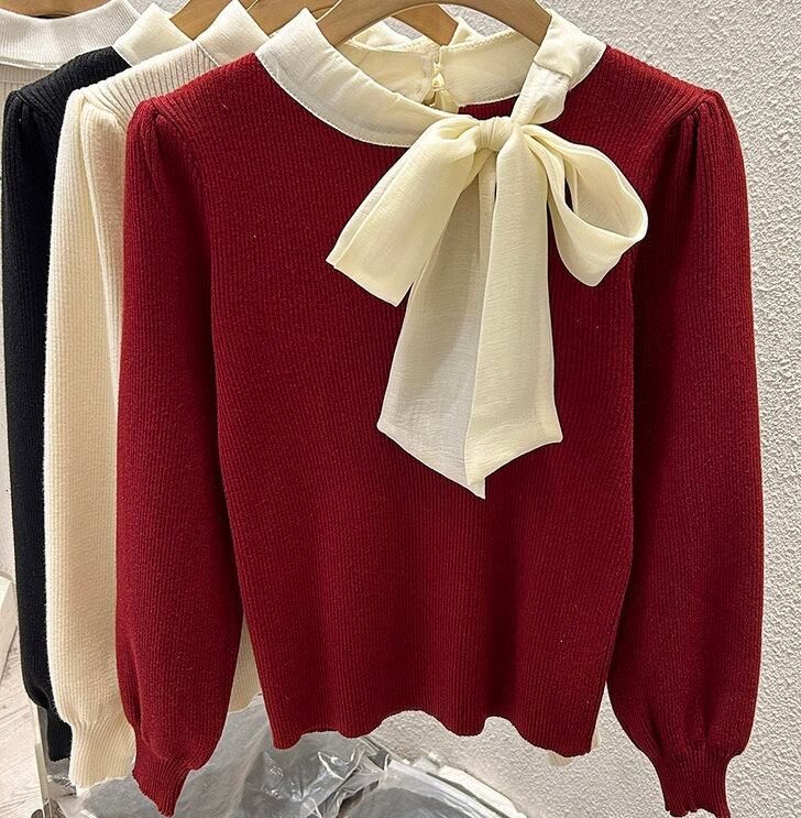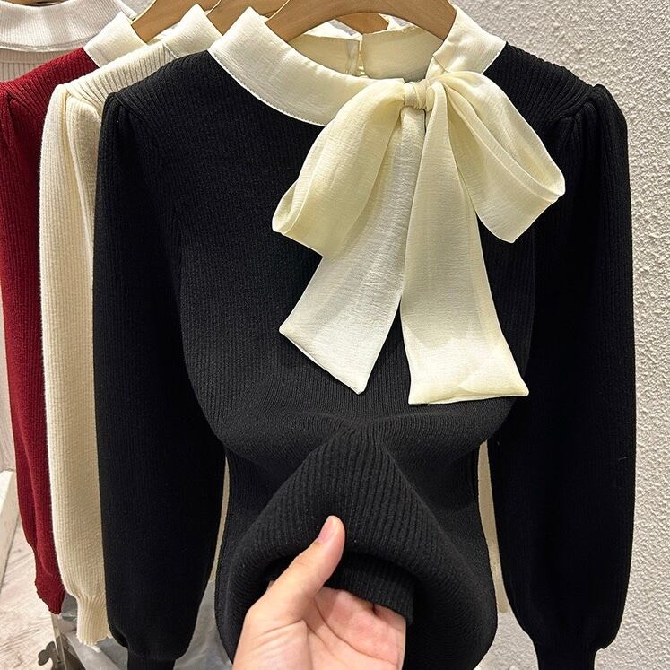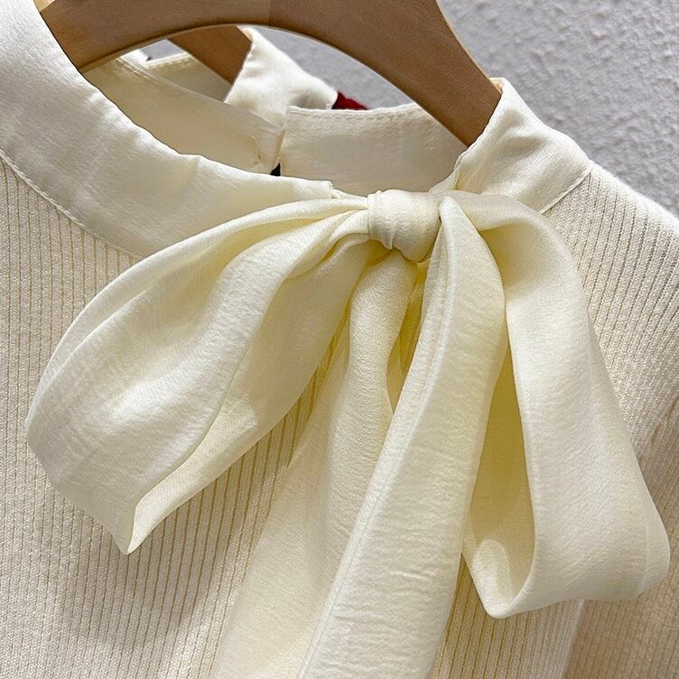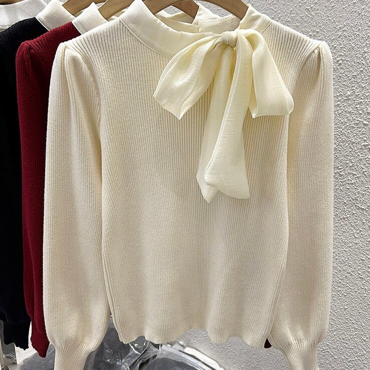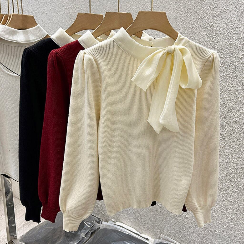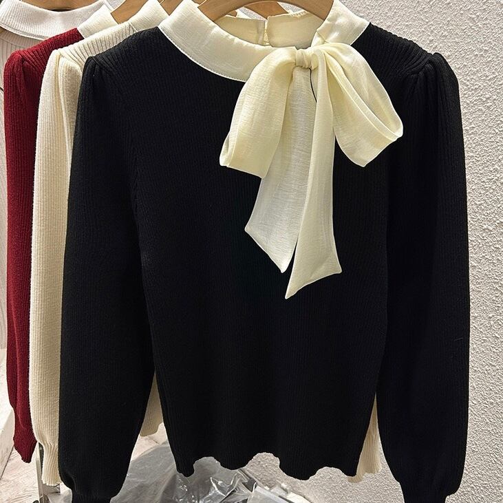 【tops】リボン長袖ニットトップス3色 XT1080
