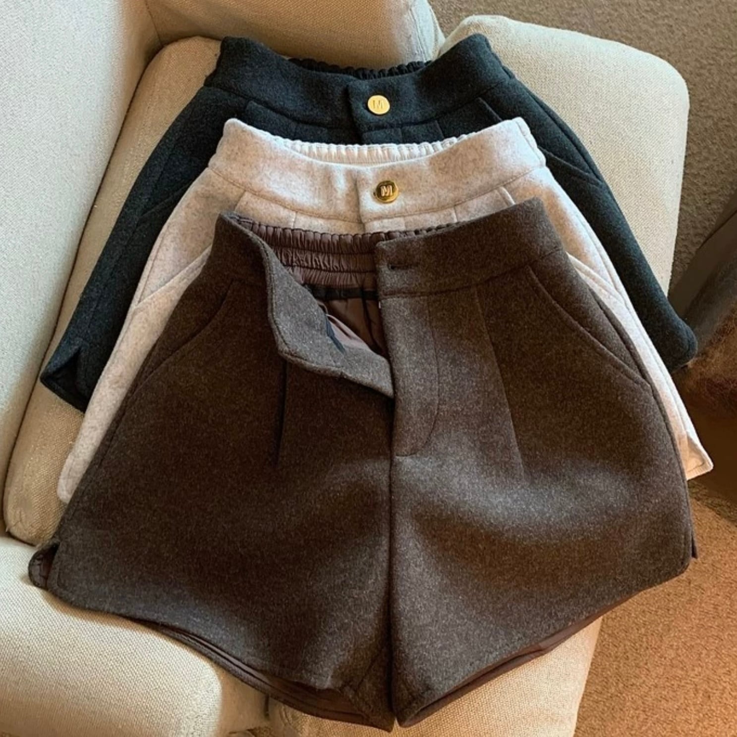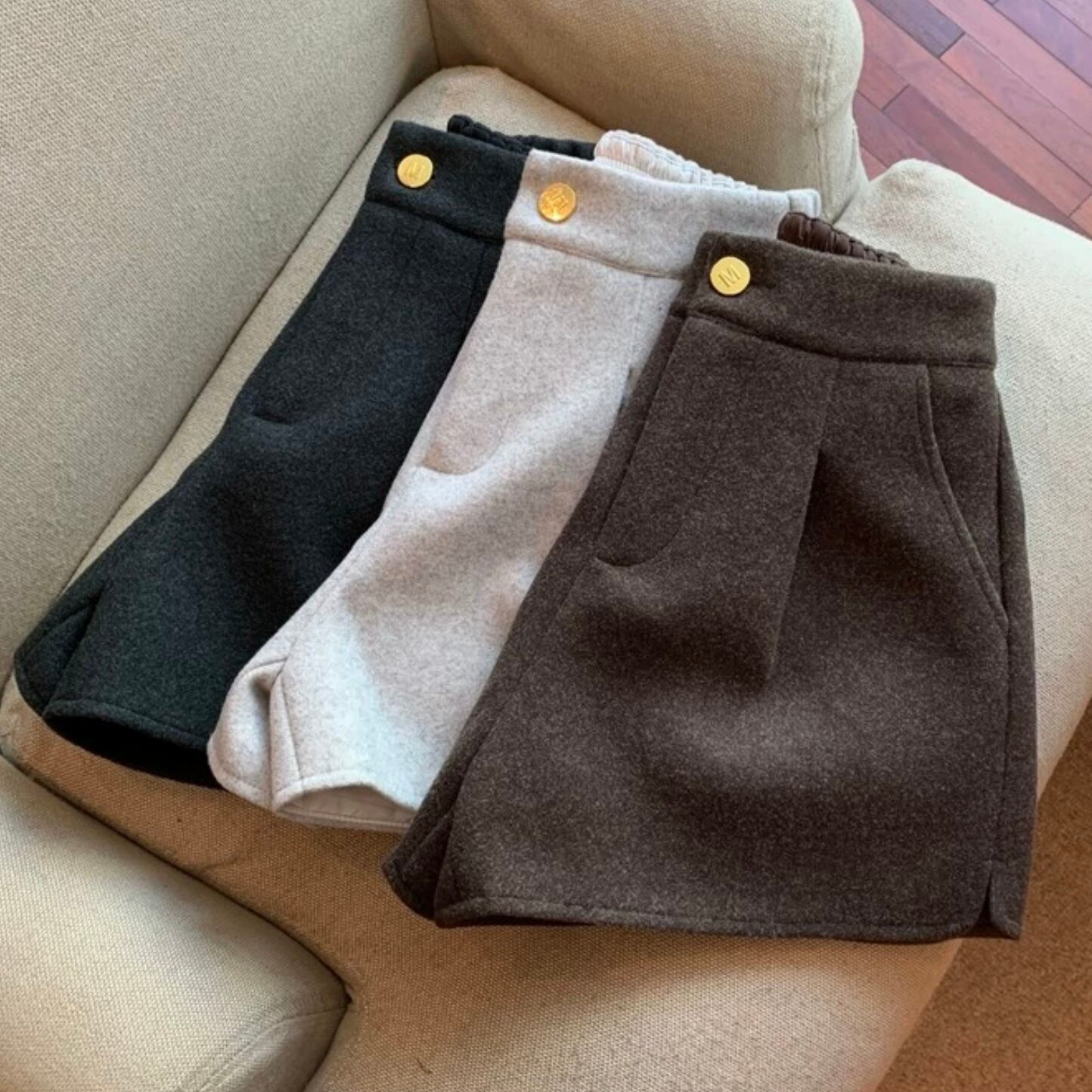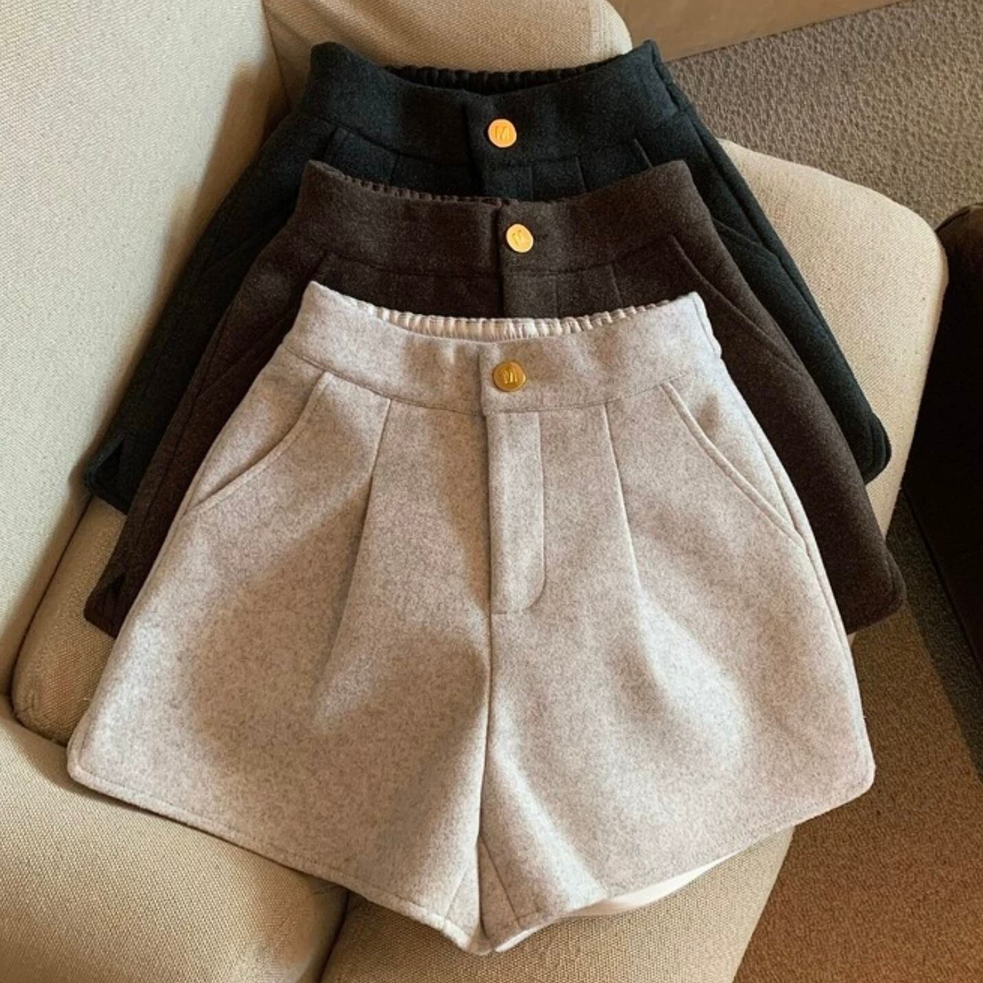 【bottoms】ウールスリットショートパンツ3色 MA0356