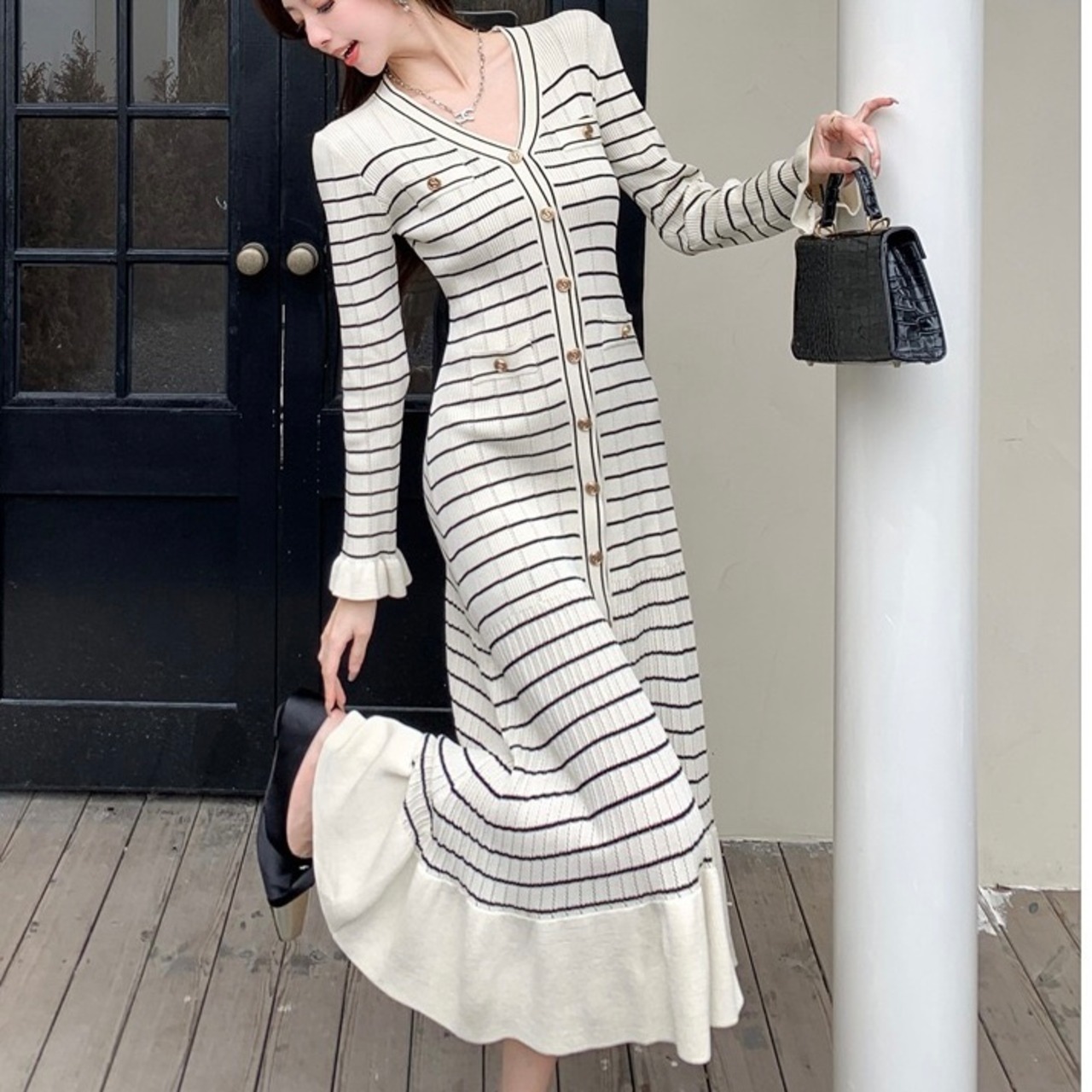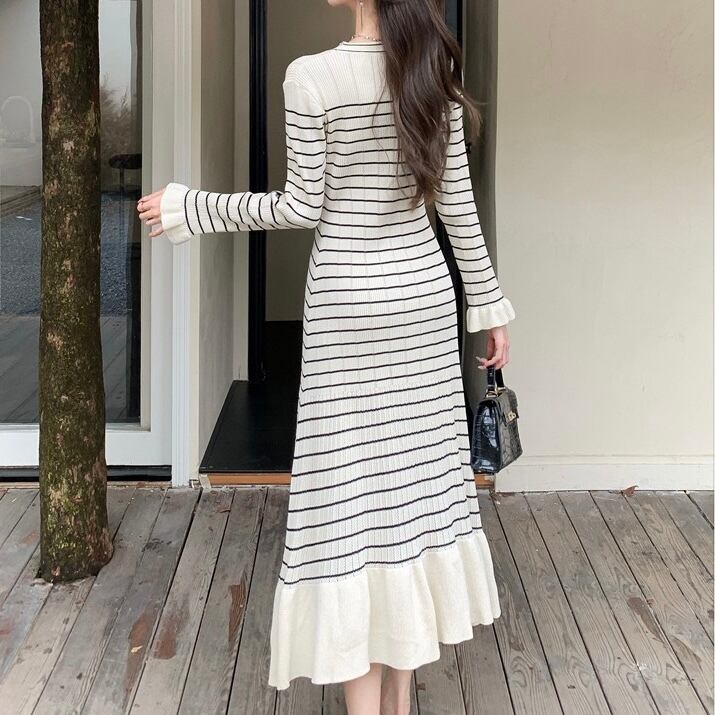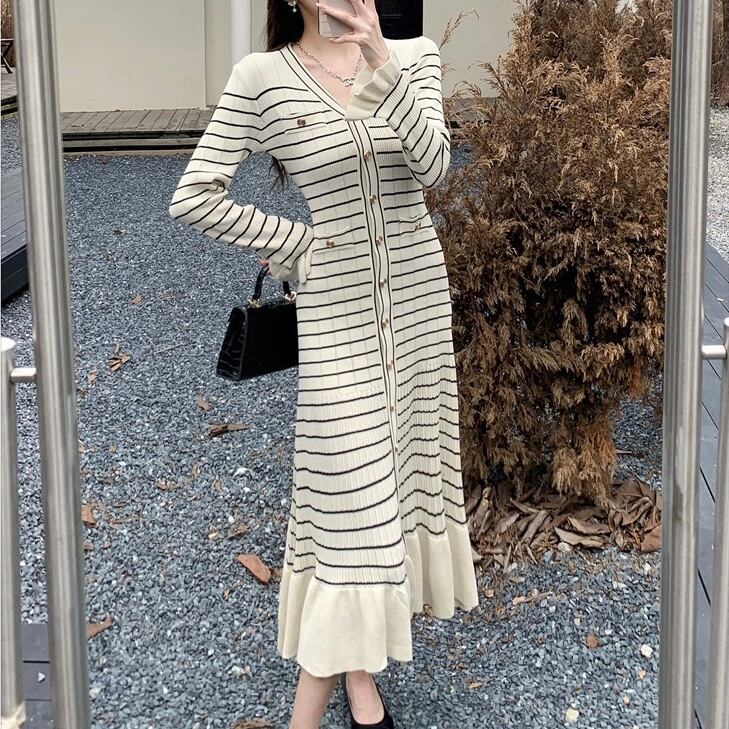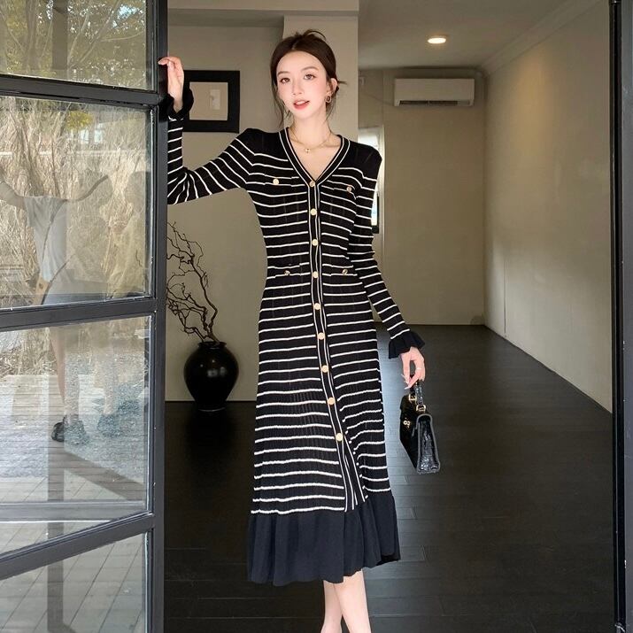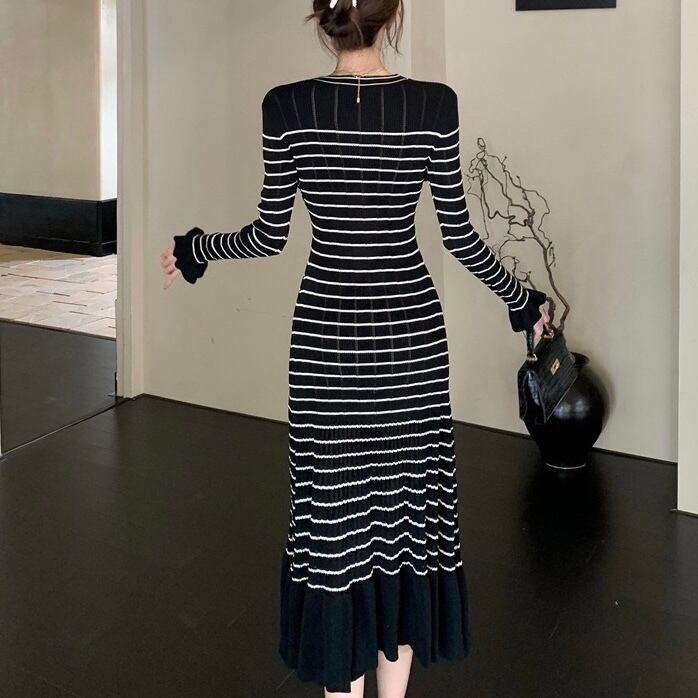 【dress】ボーダーフリルニットワンピース2色 IR1006