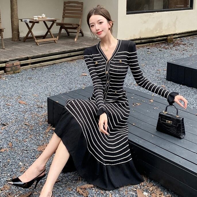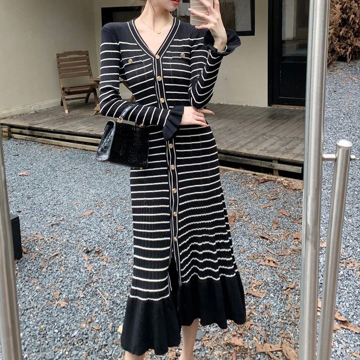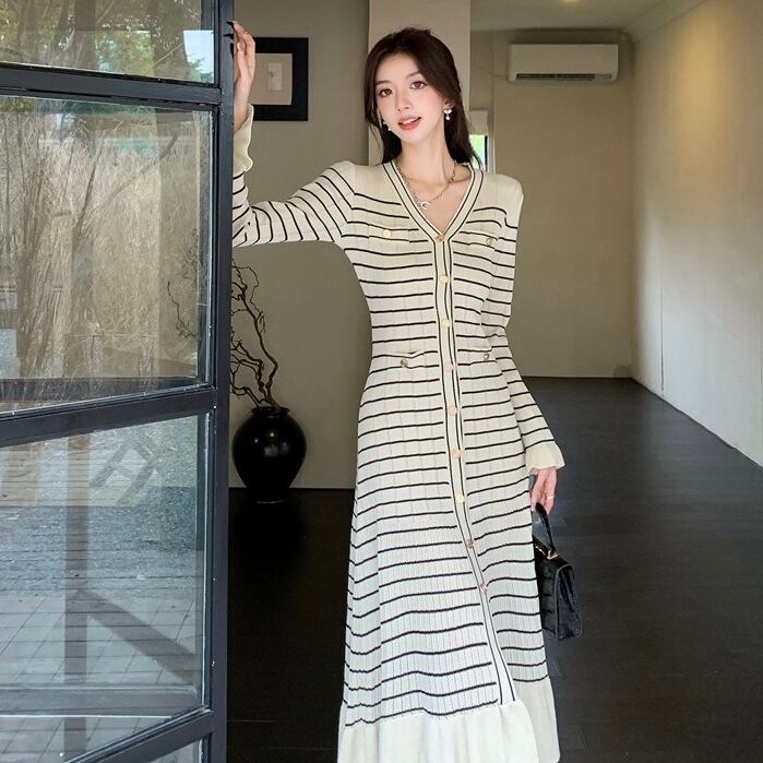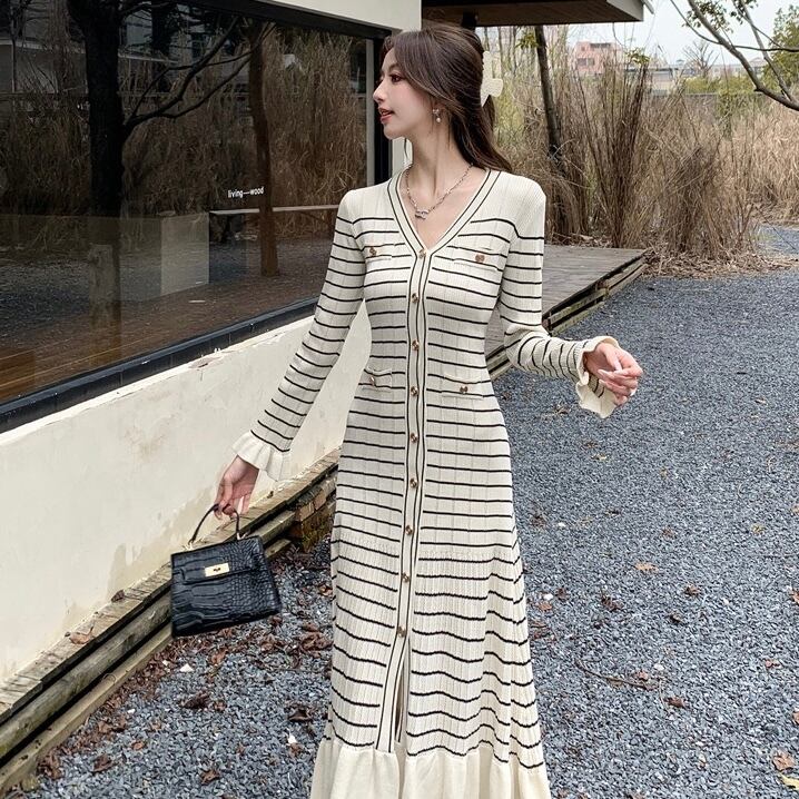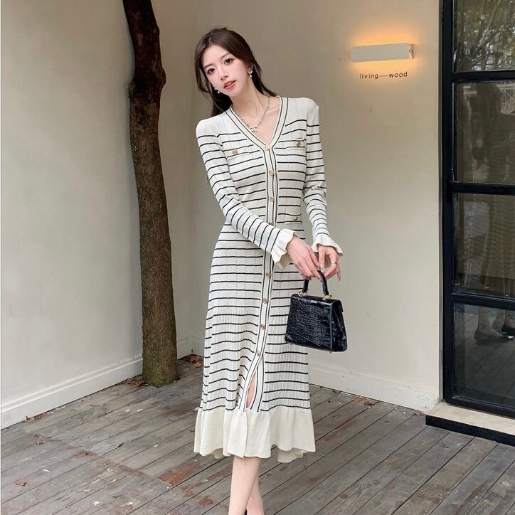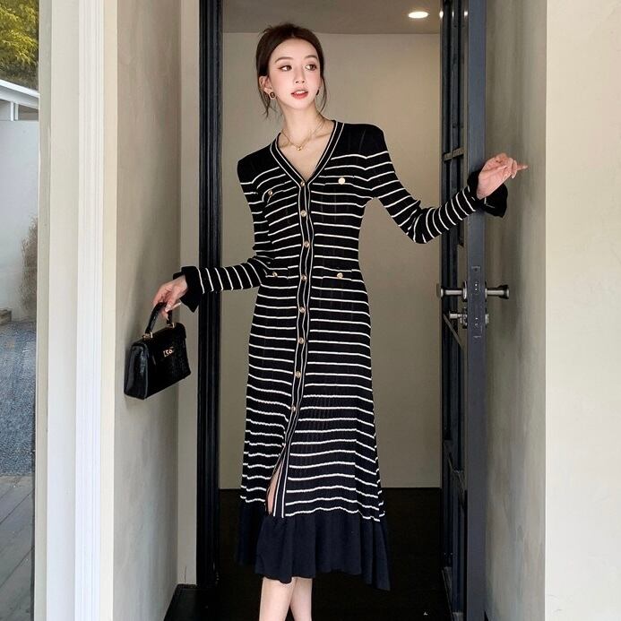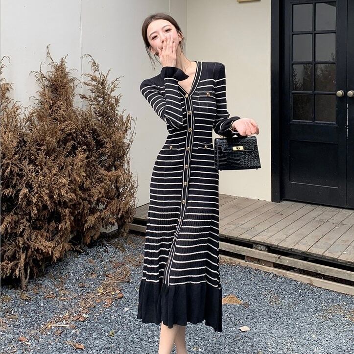 【dress】ボーダーフリルニットワンピース2色 IR1006
