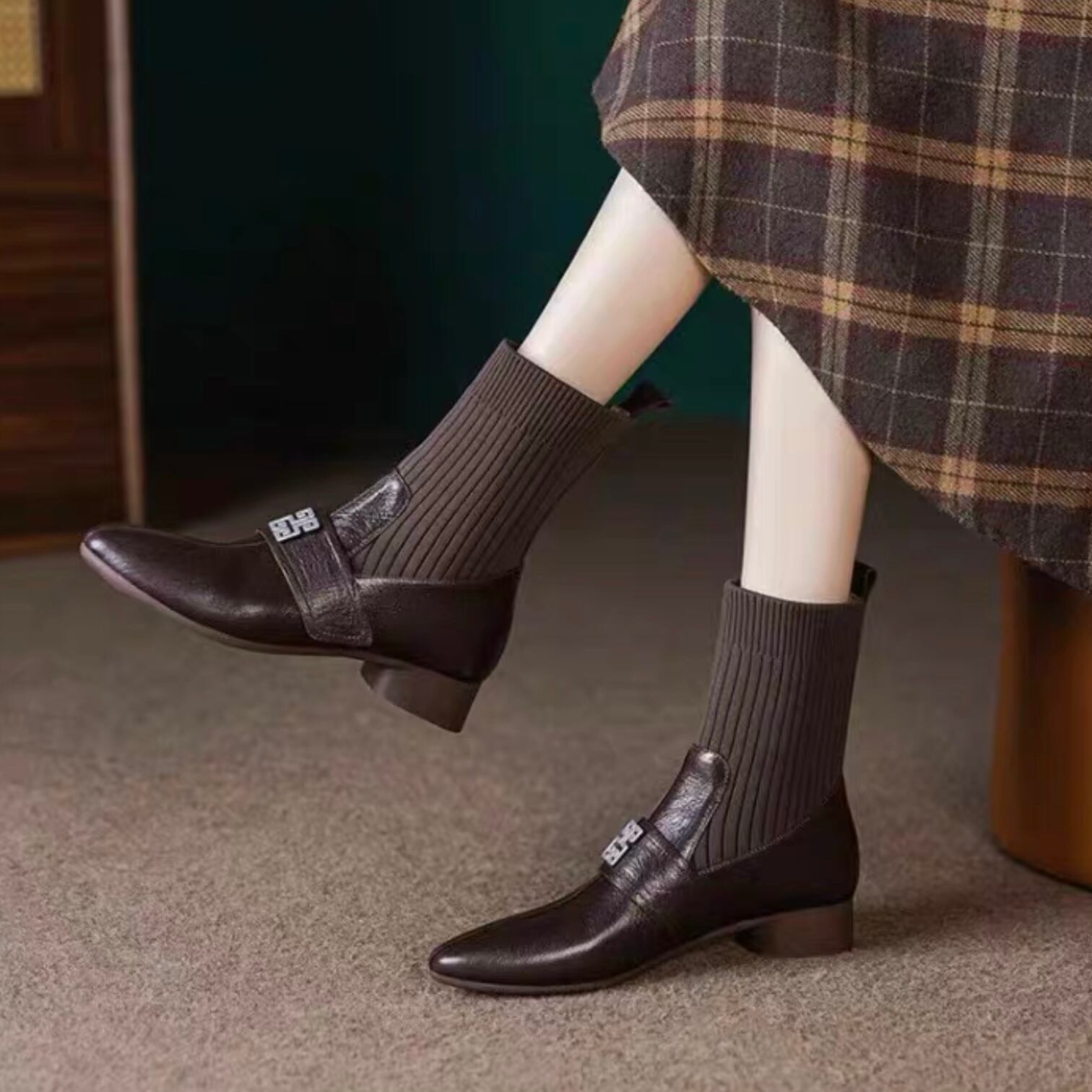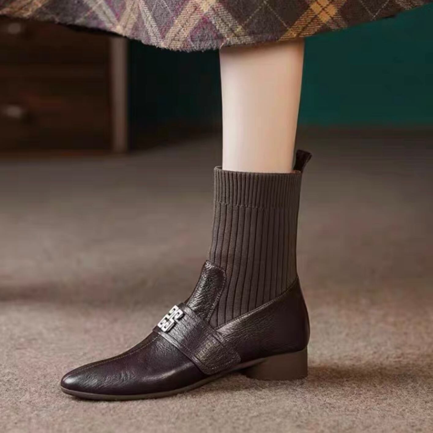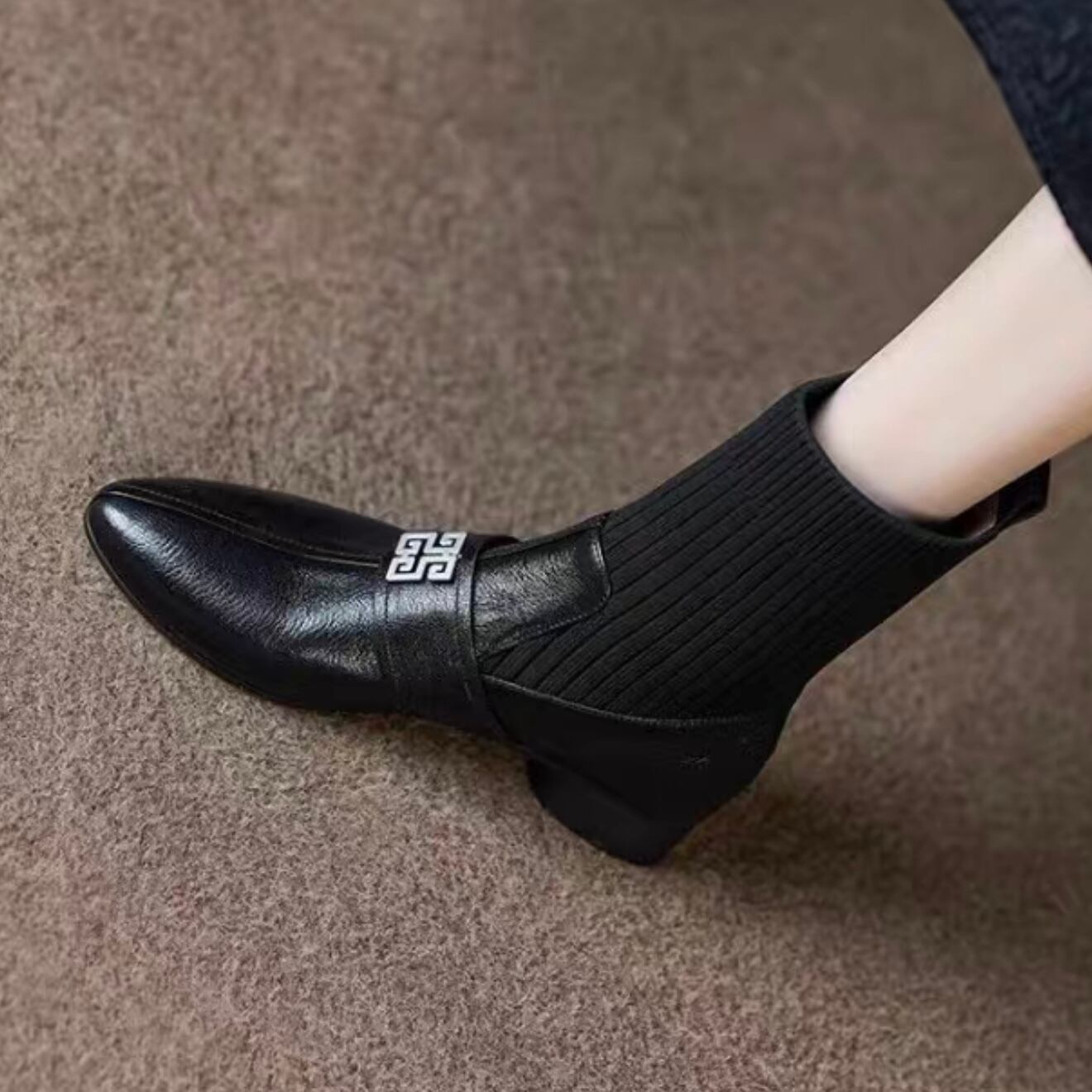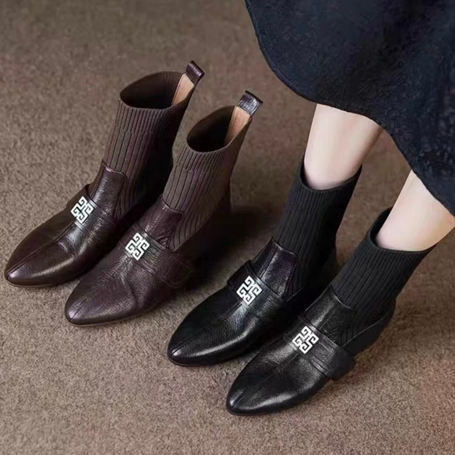 【shoes】リブソックスブーツ2色 YR0069
