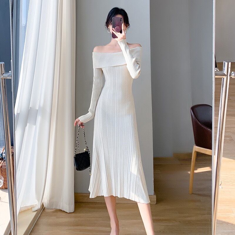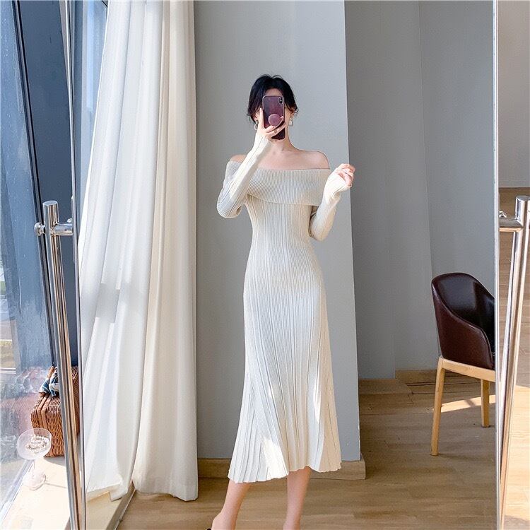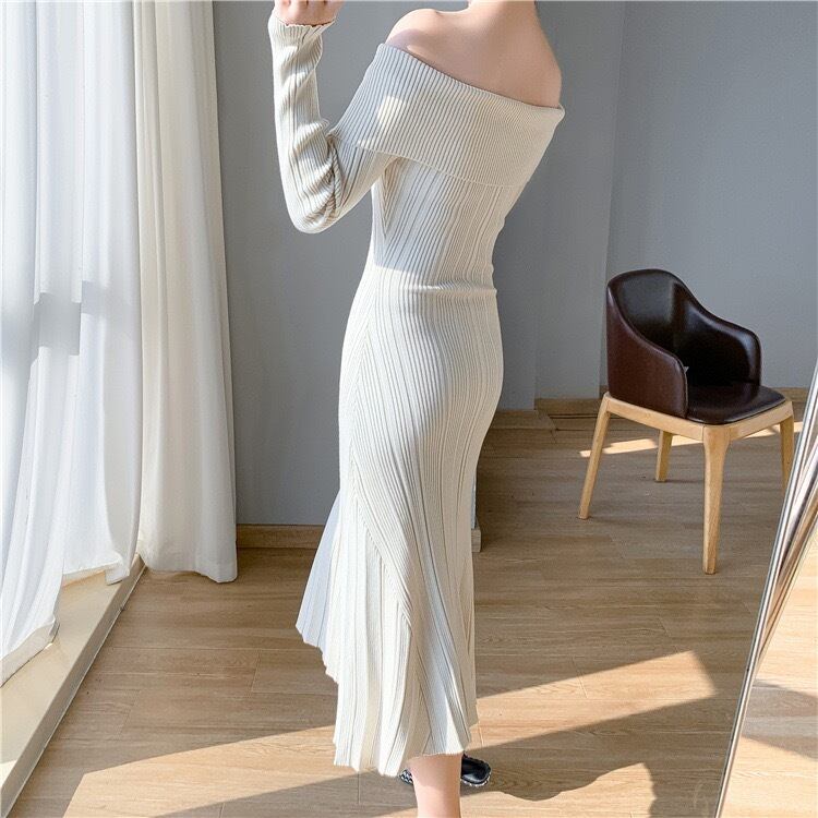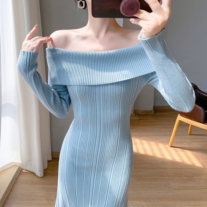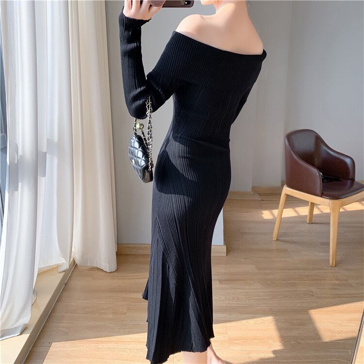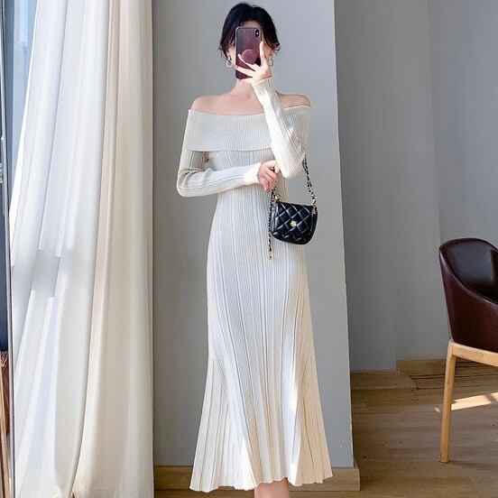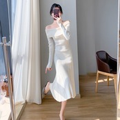 【dress】オフショルダーニットワンピース3色 KZ1111