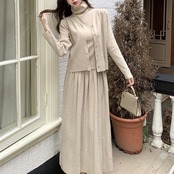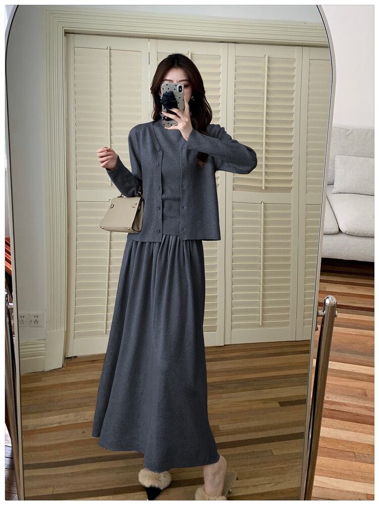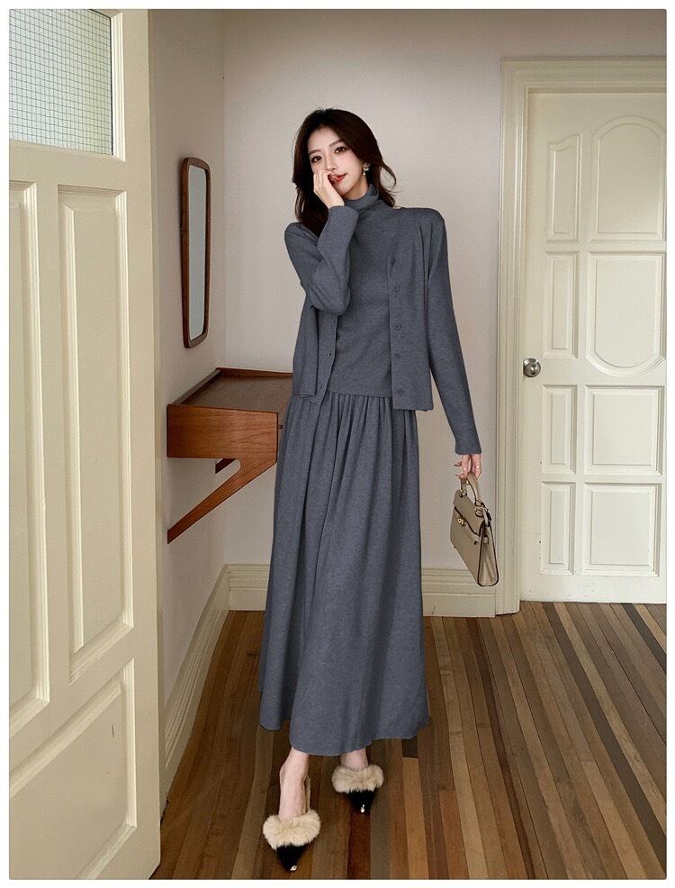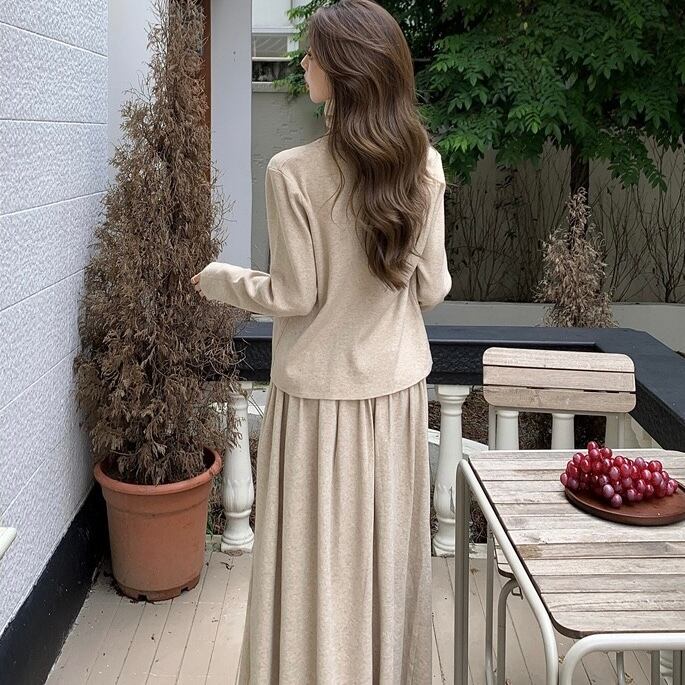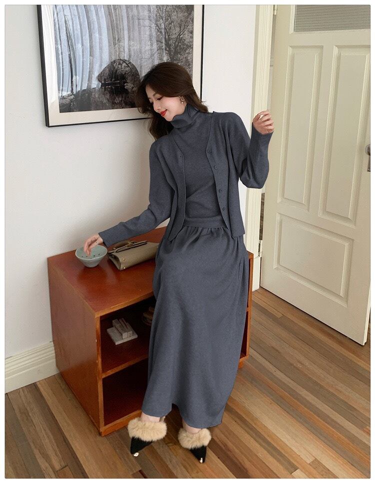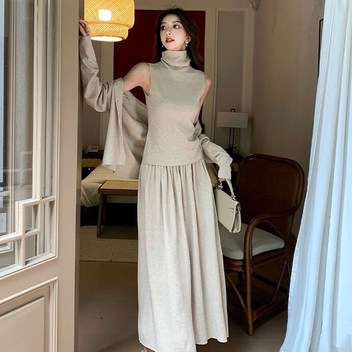 【set】着回し3点ニットセットノースリーブトップスxカーディガンxスカート3色 KZ1112
