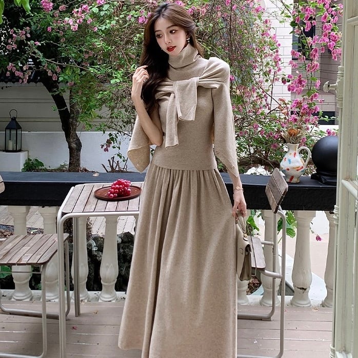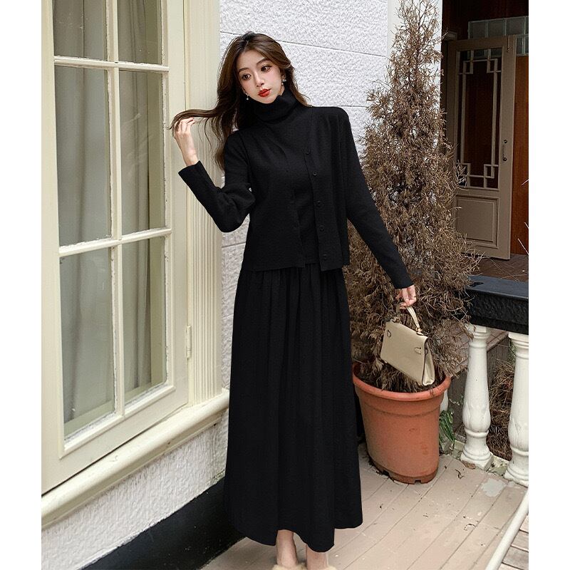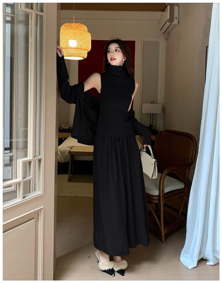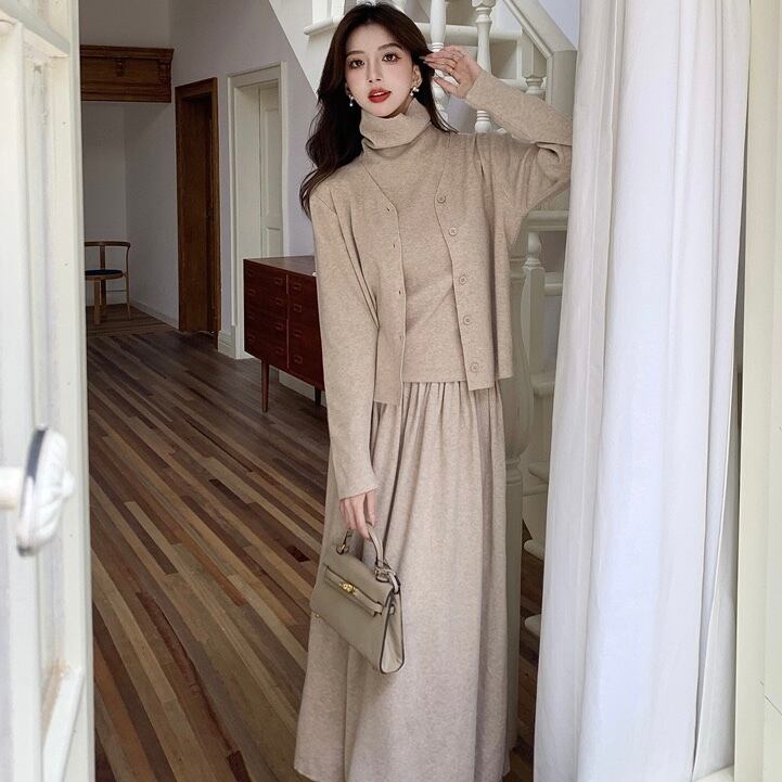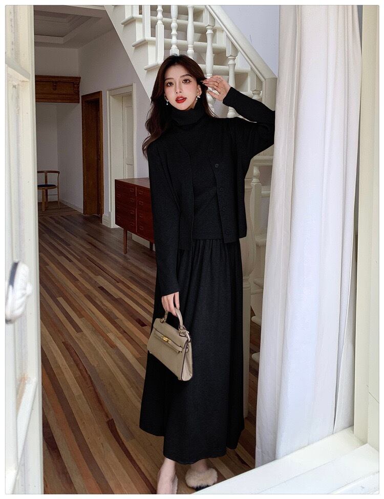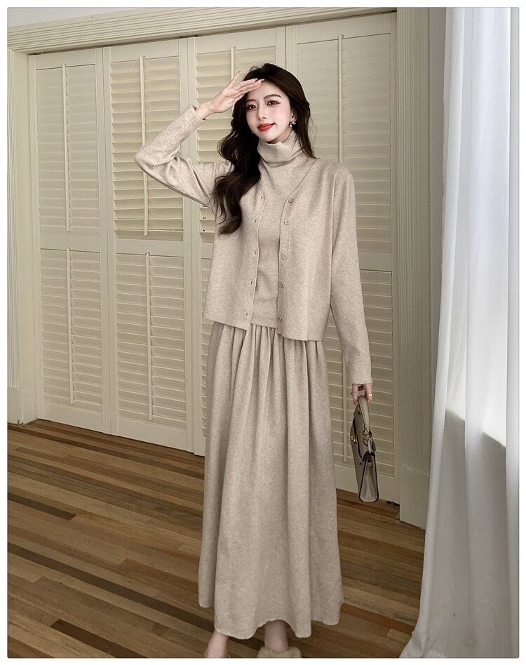 【set】着回し3点ニットセットノースリーブトップスxカーディガンxスカート3色 KZ1112