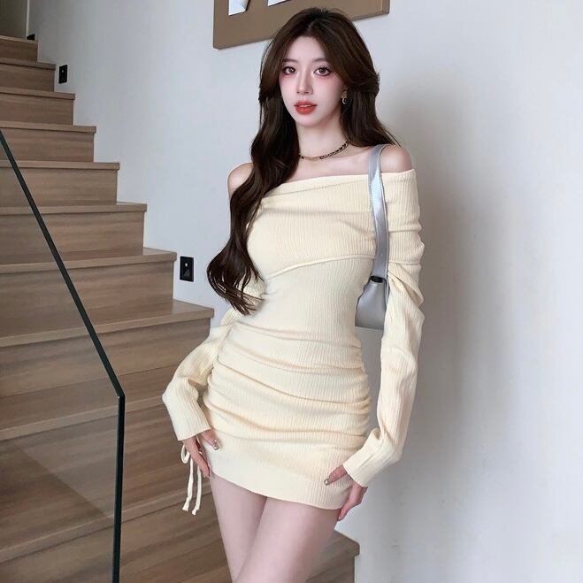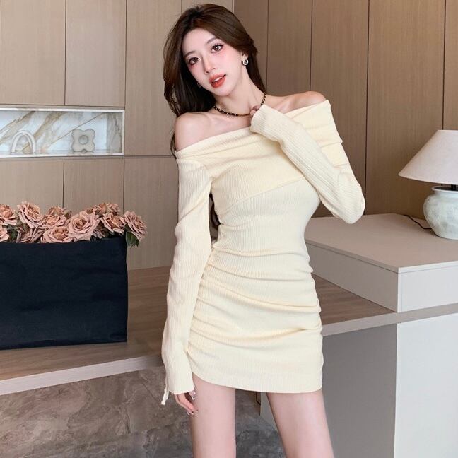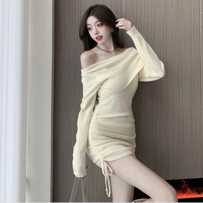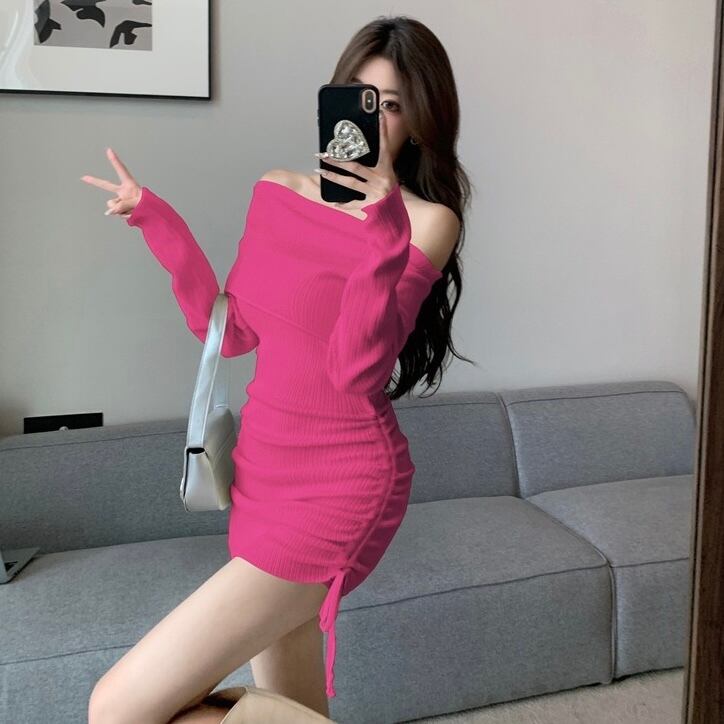 【dress】オフショルダーニットワンピース3色 KZ1116