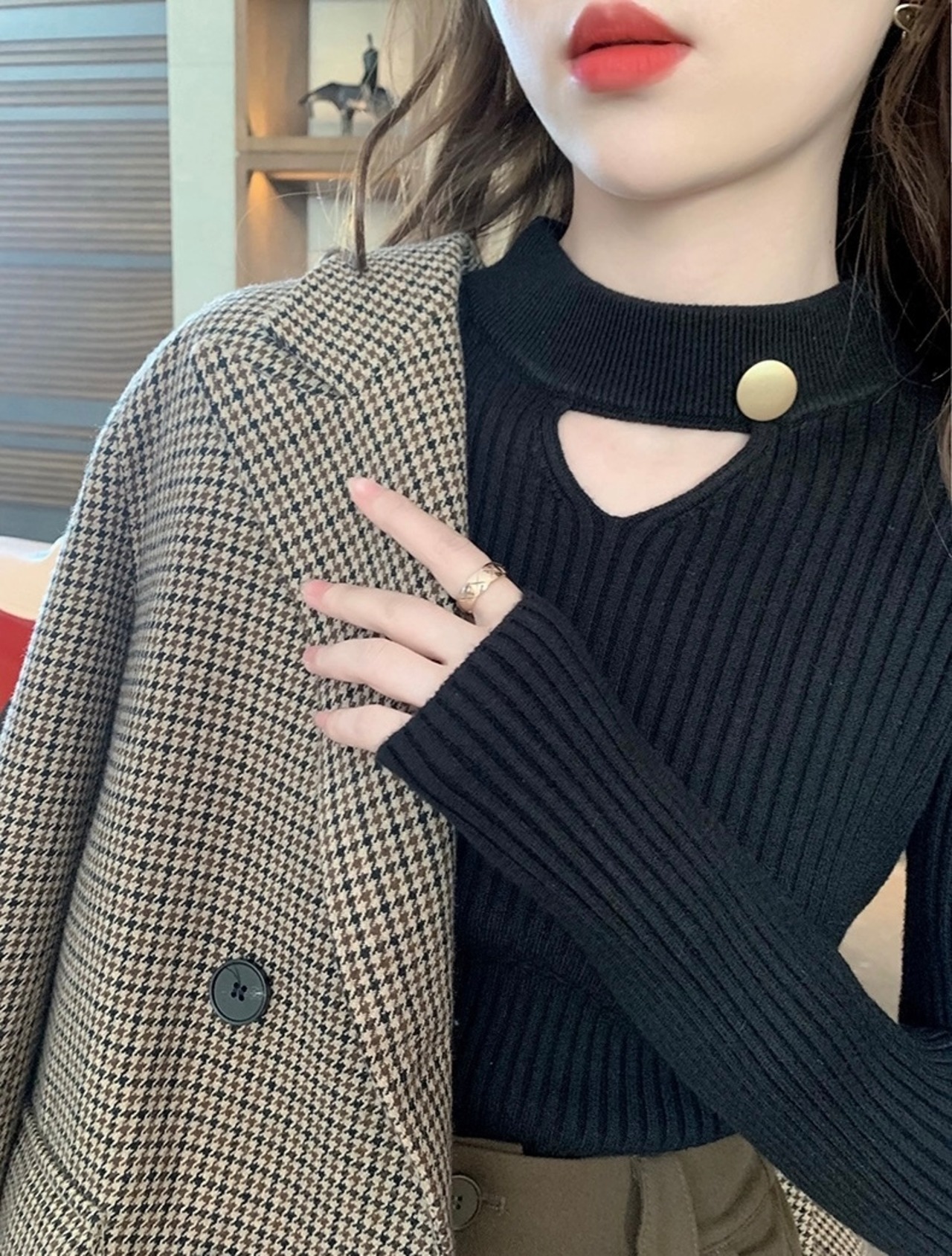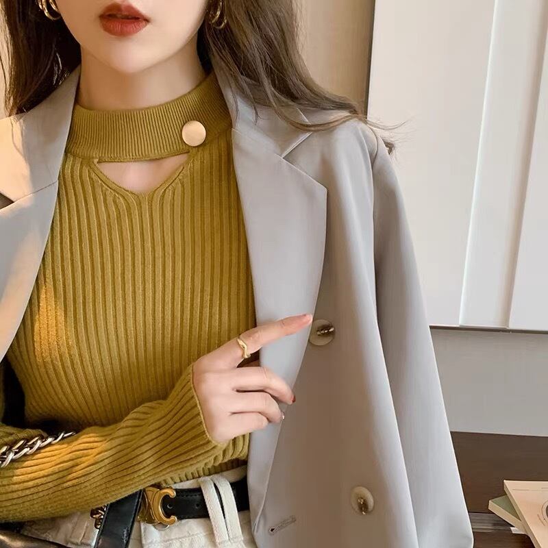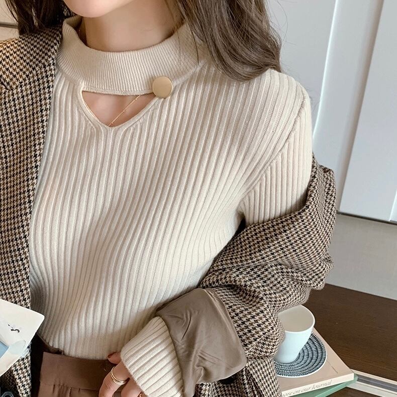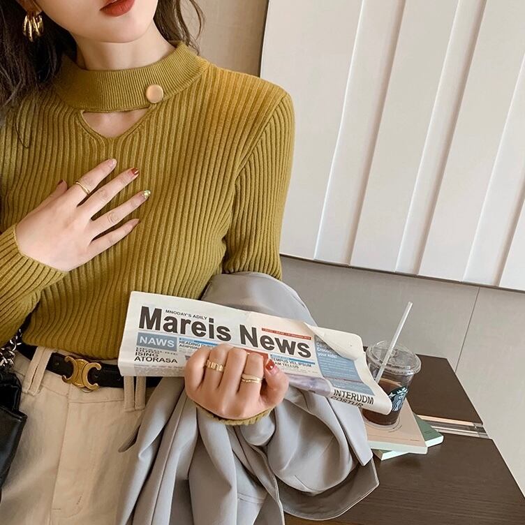 【tops】シンプルデザインニットトップス6色 KZ1116