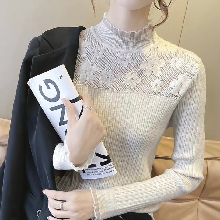 【tops】フラワープリントニットトップス5色 KZ0123
