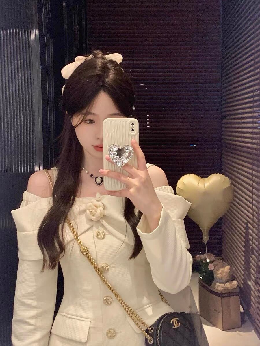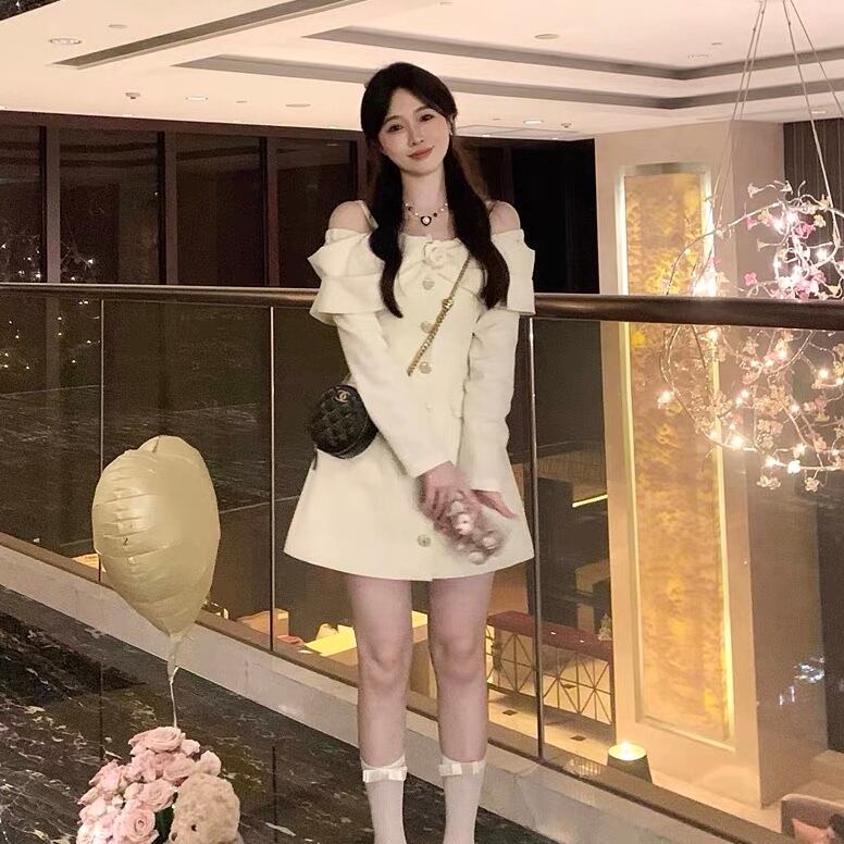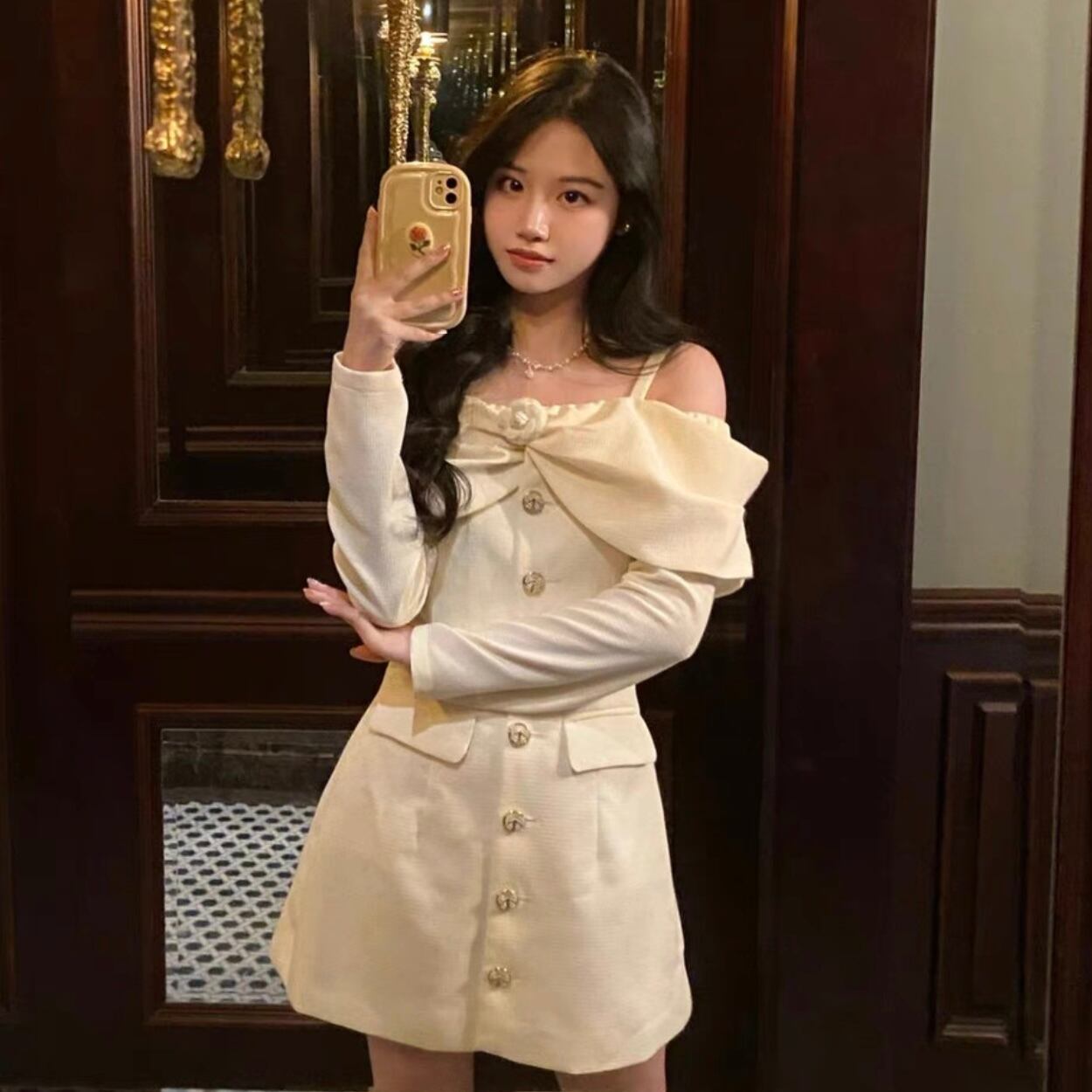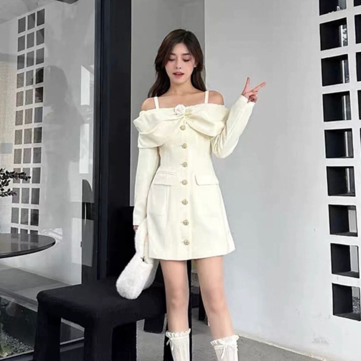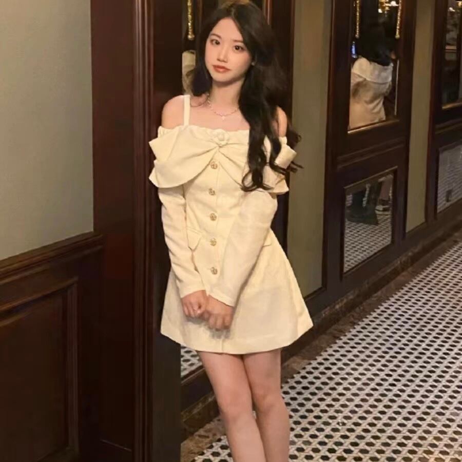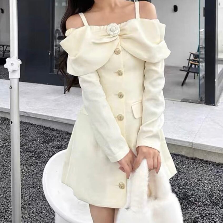 【dress】オフショルダーフラワー長袖ショートワンピース MA03735