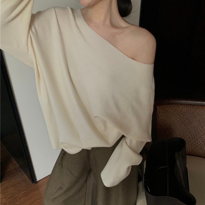【tops】ゆったりシンプルデザインニットトップス4色 NR1503