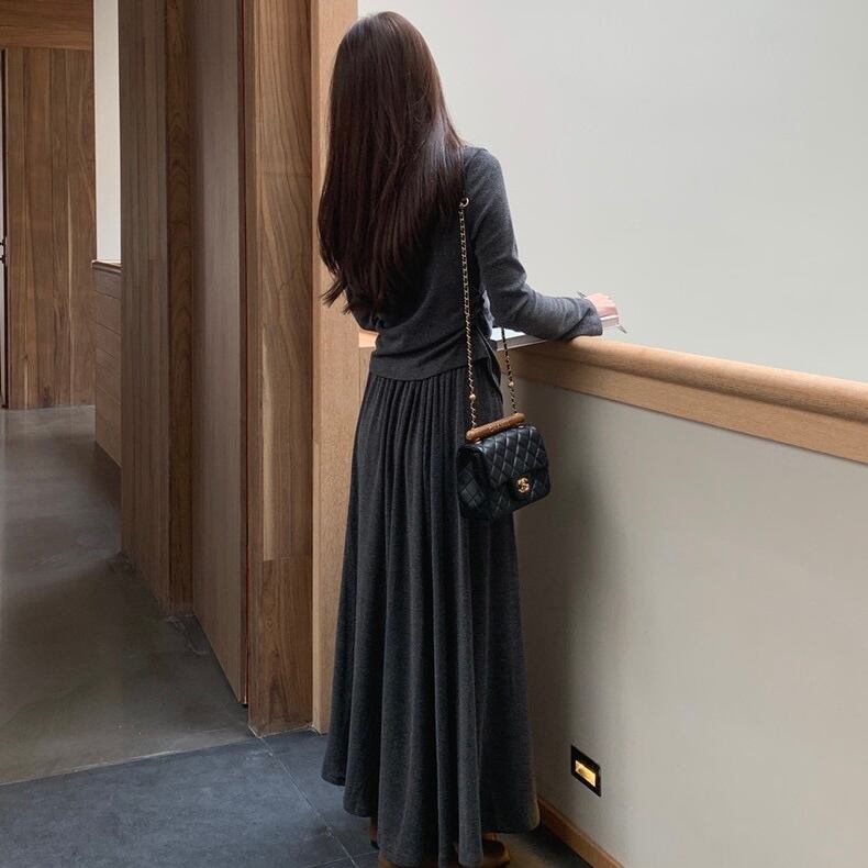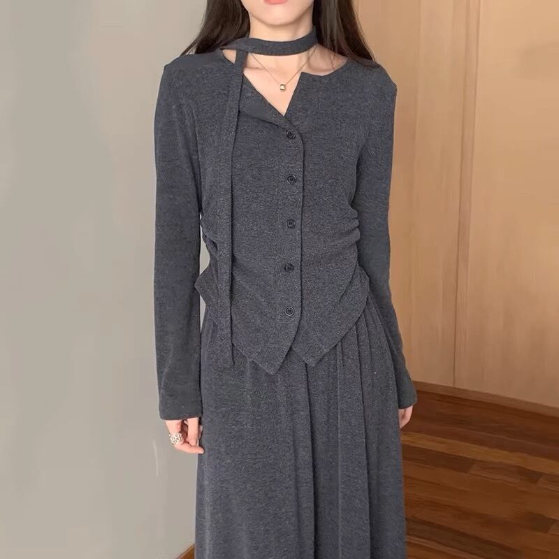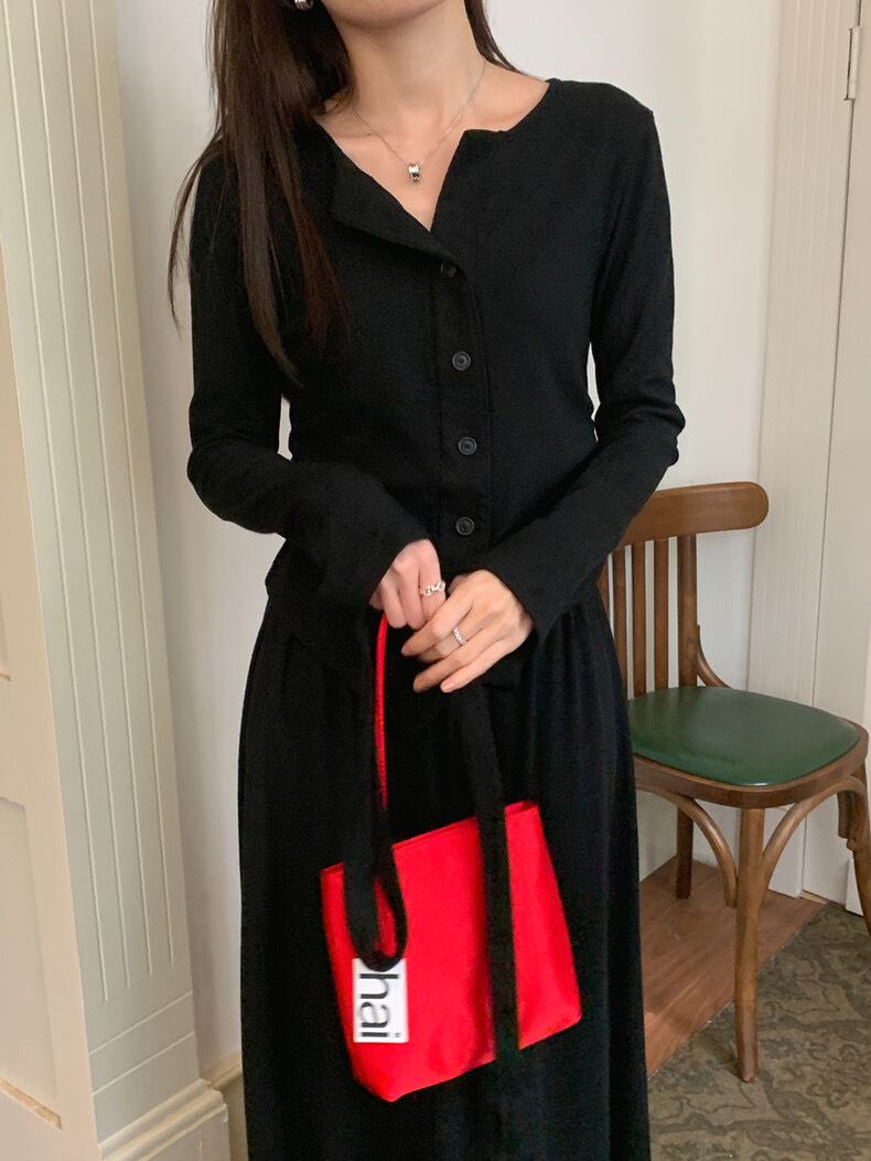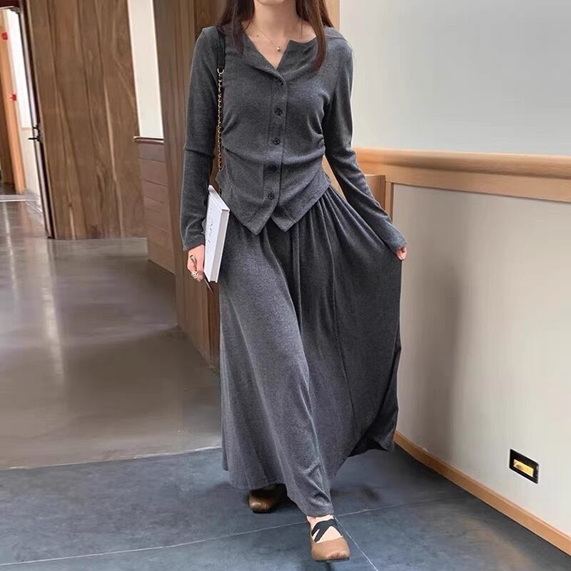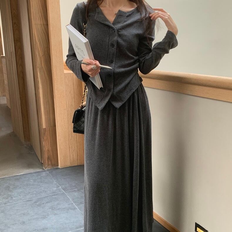 【set】vネックカーディガントップスxスカート2色 OK1602