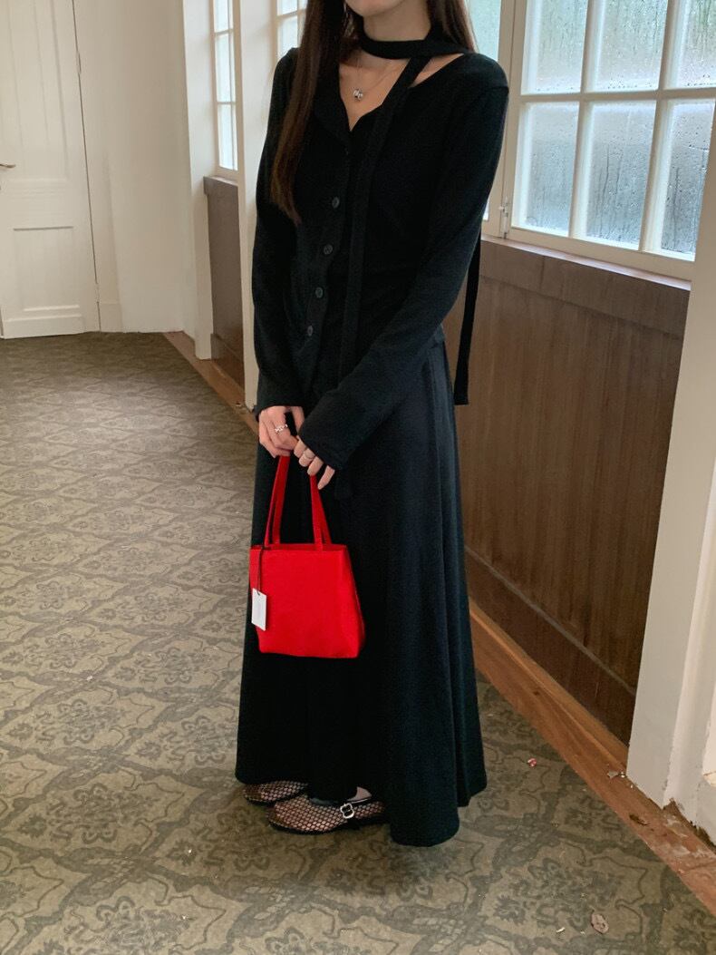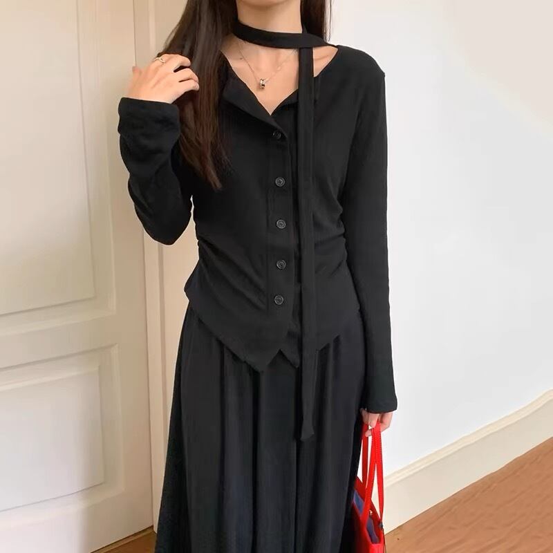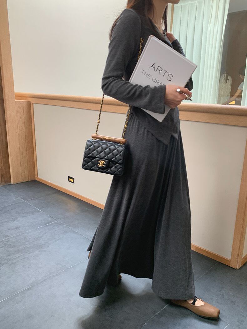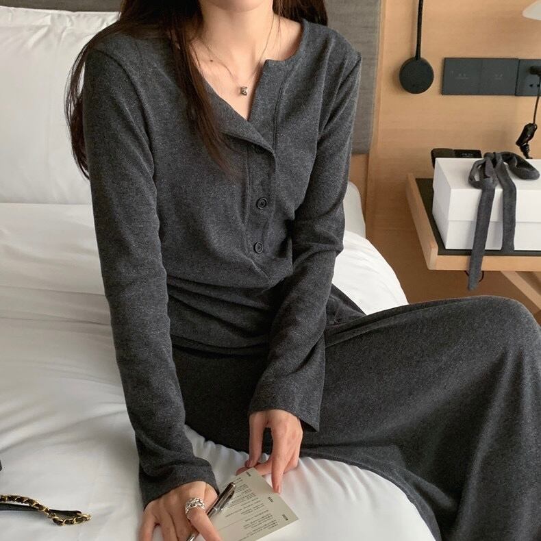 【set】vネックカーディガントップスxスカート2色 OK1602