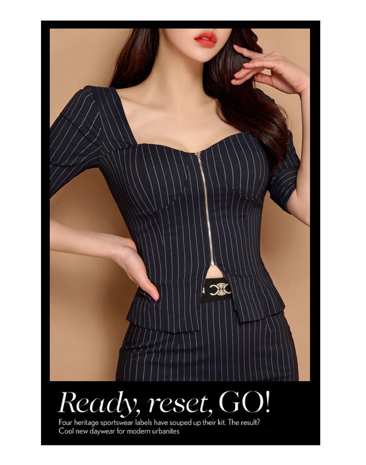 【set】スクエアネックzipデザイントップスxスカート UN1700
