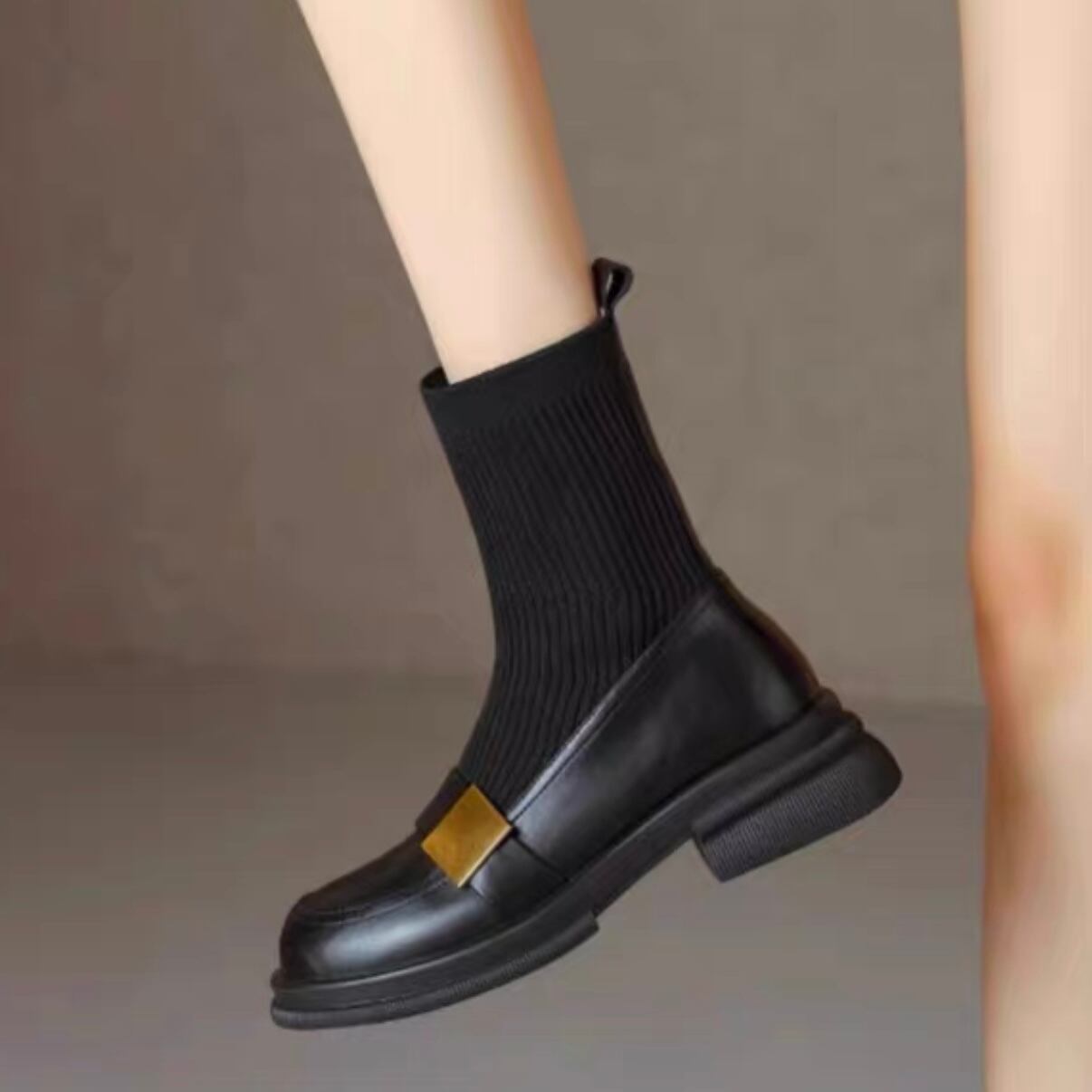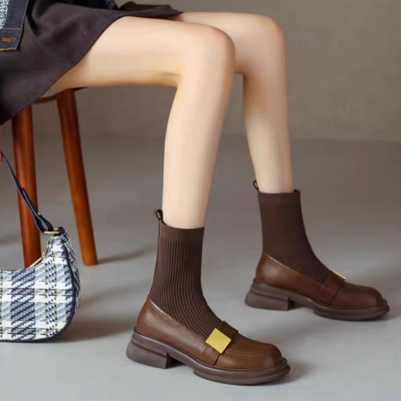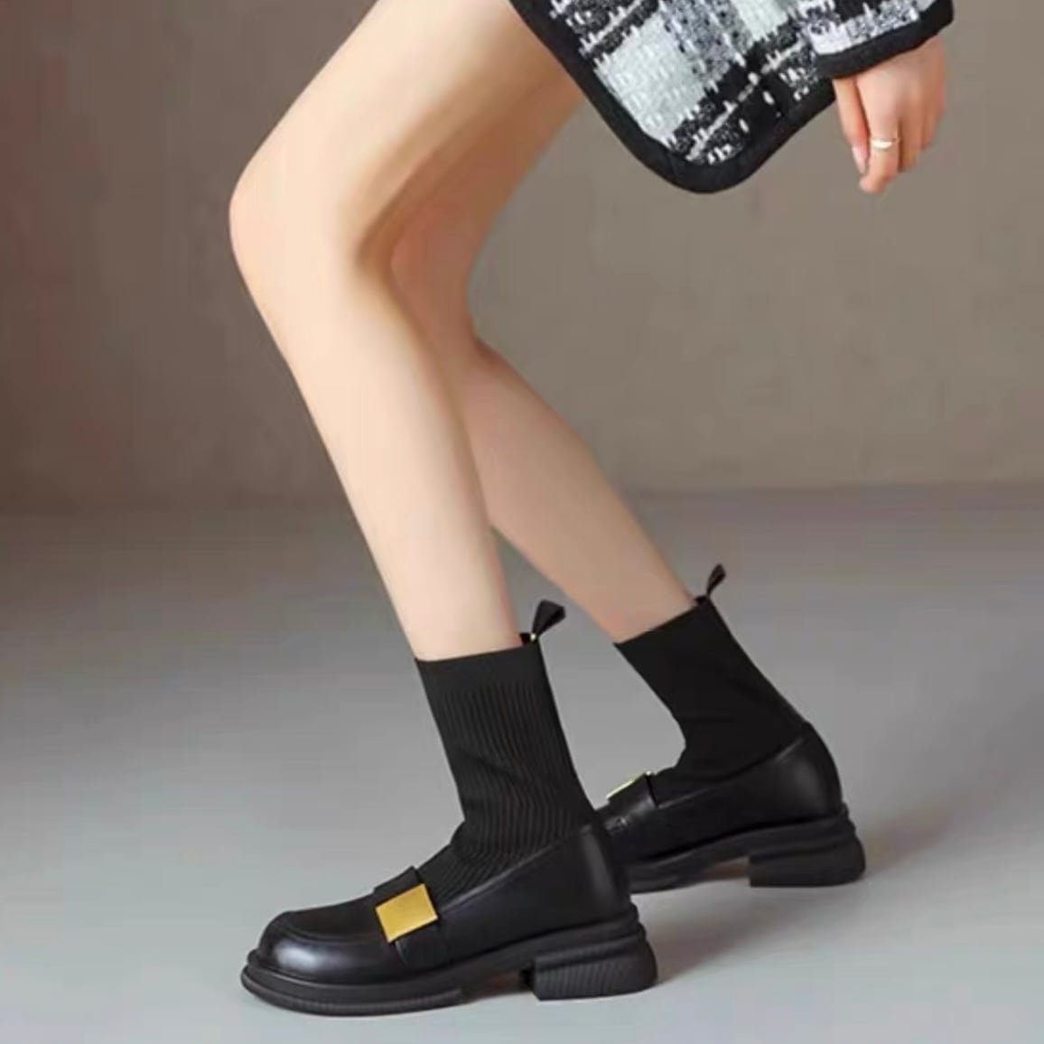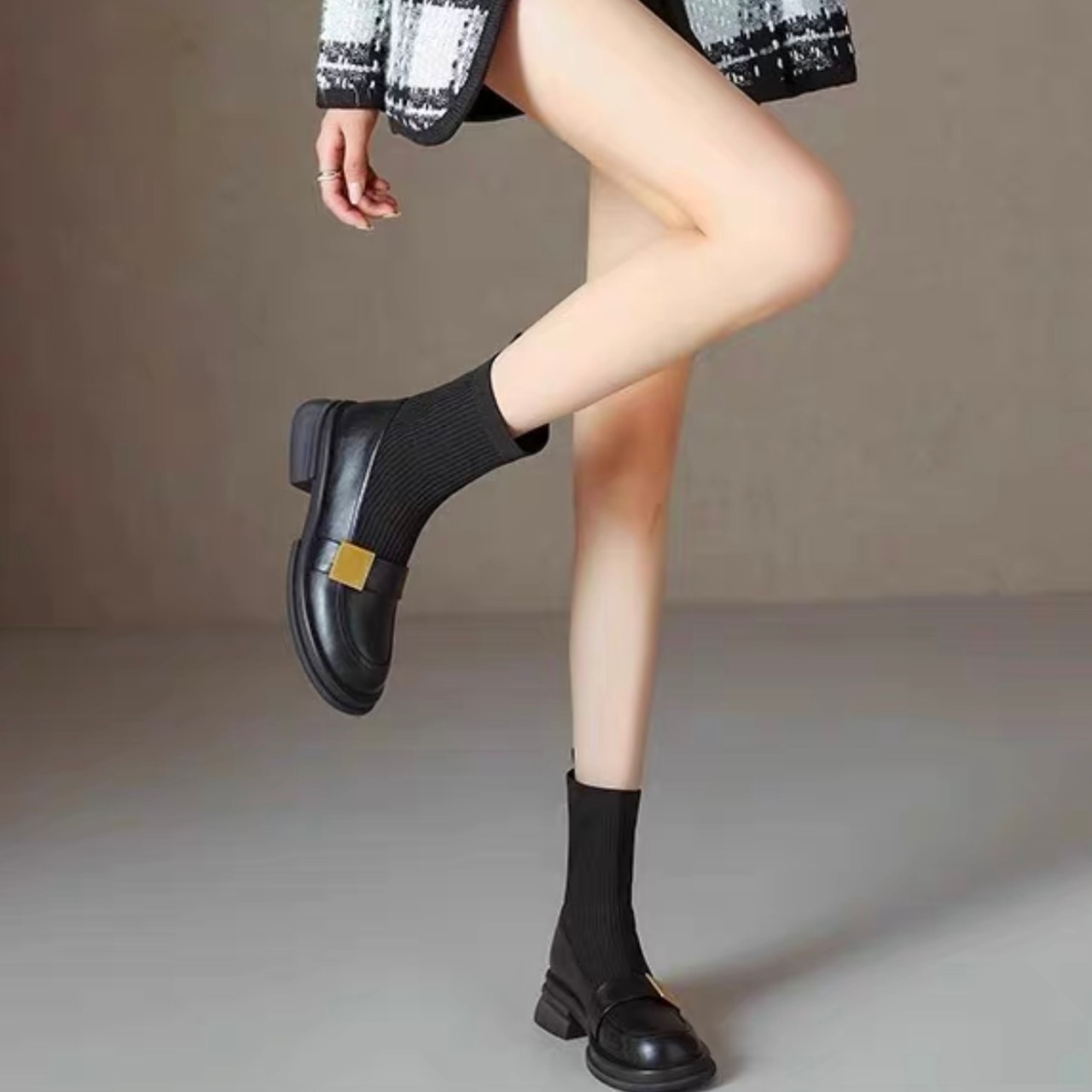 【shoes】ローファー風ソックスブーツ2色 YR0076