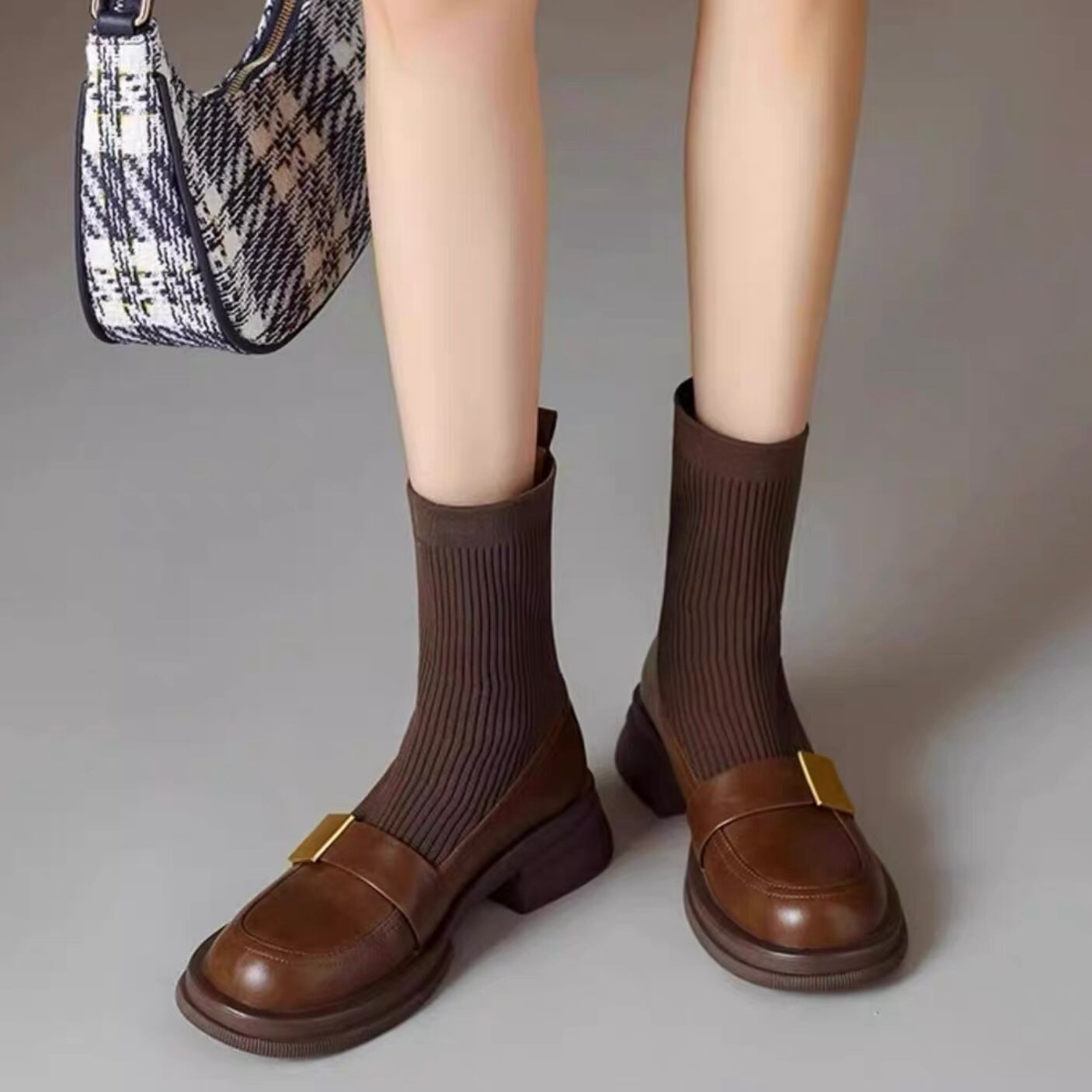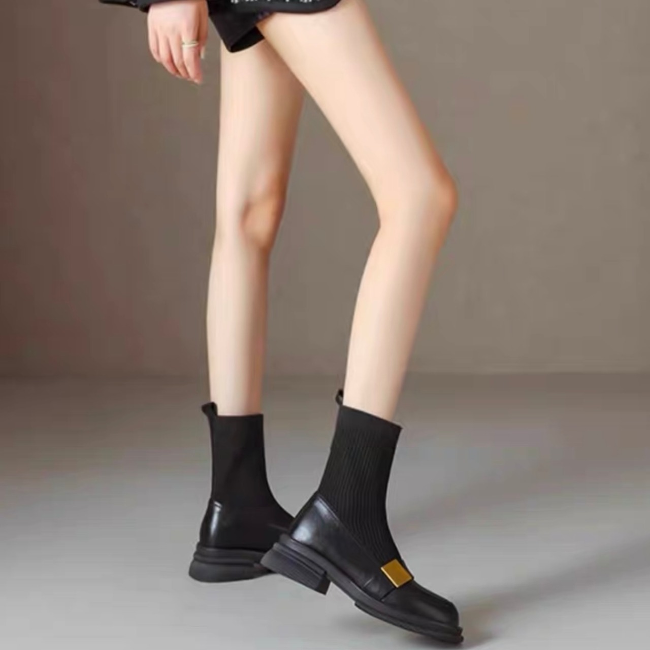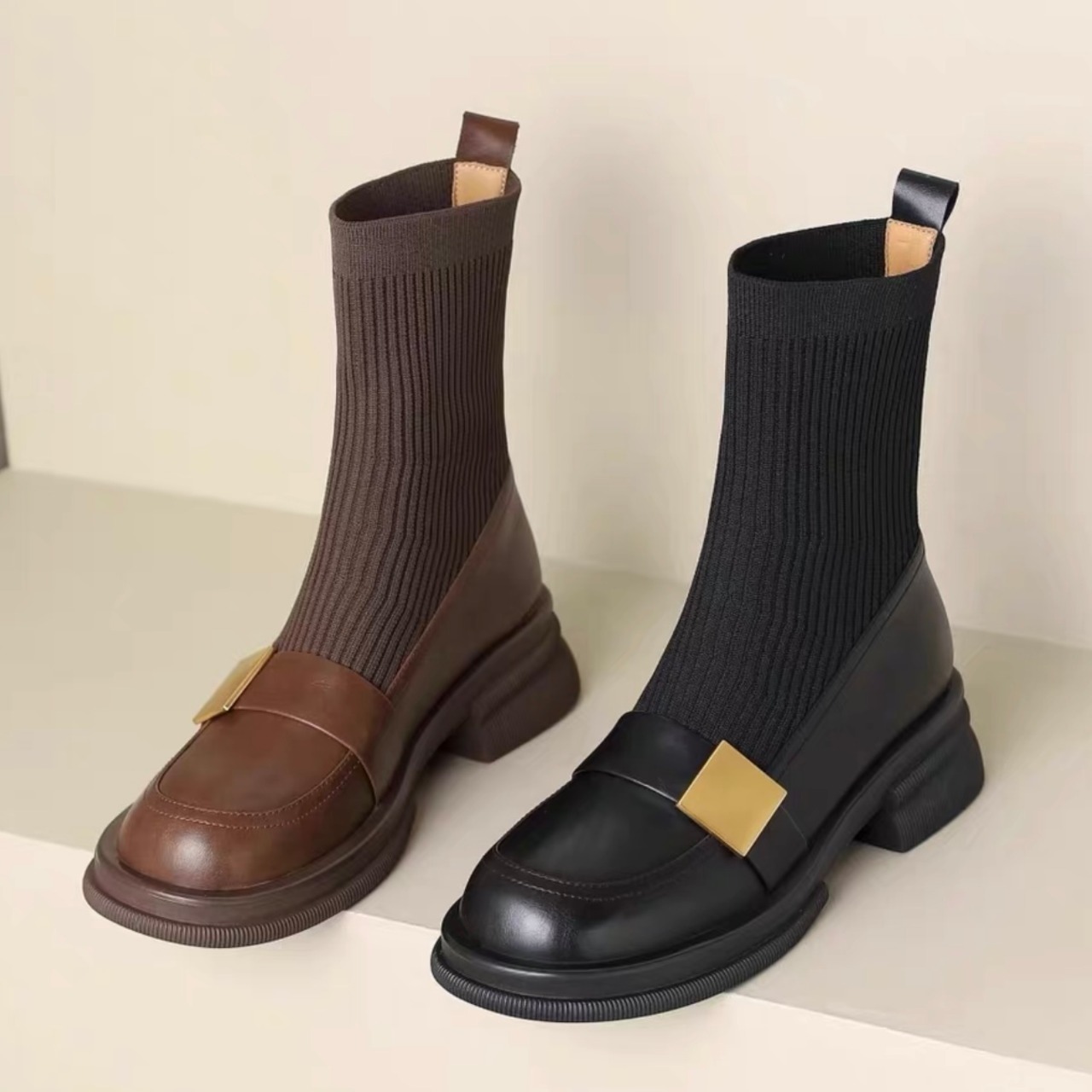 【shoes】ローファー風ソックスブーツ2色 YR0076