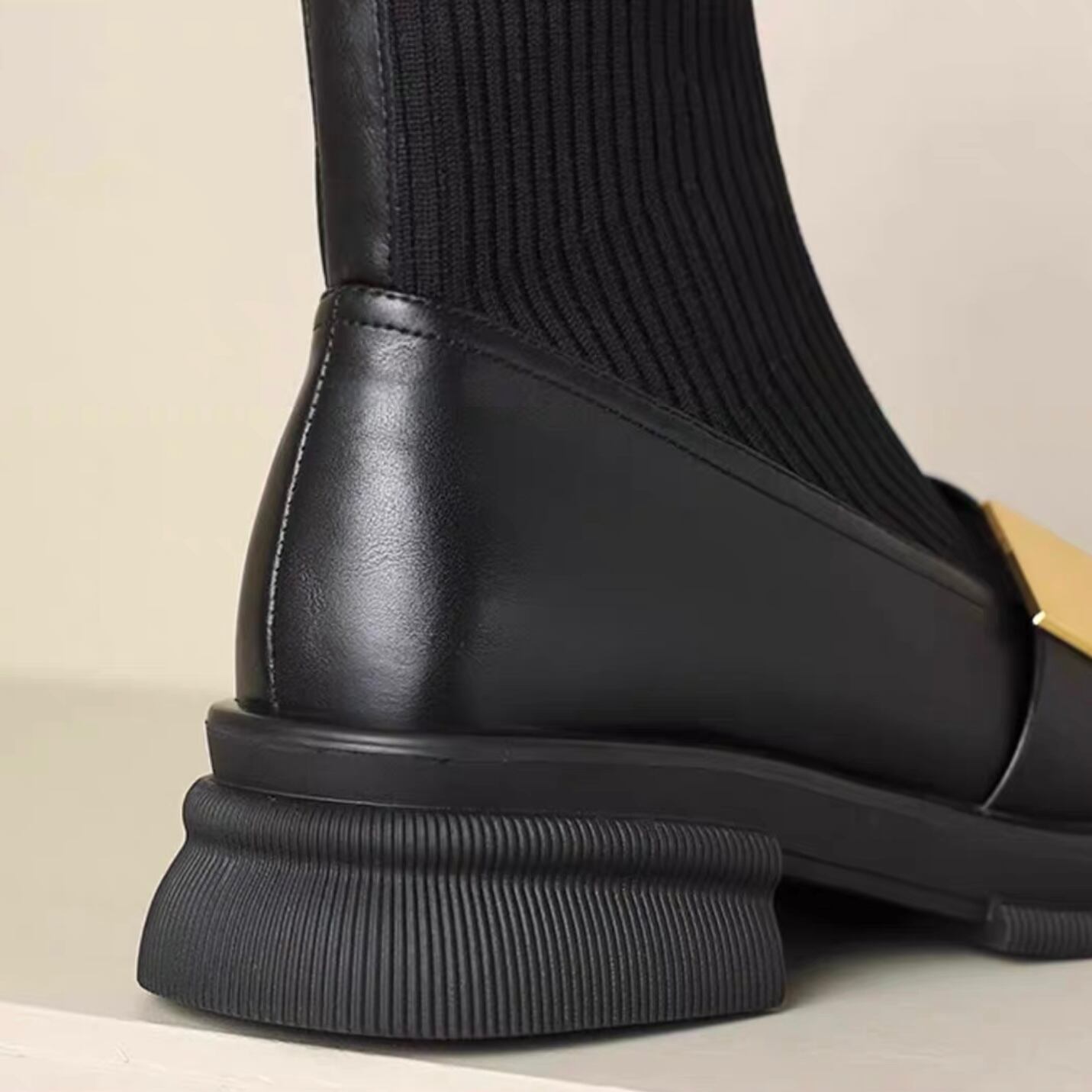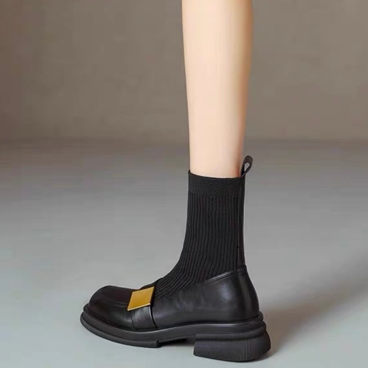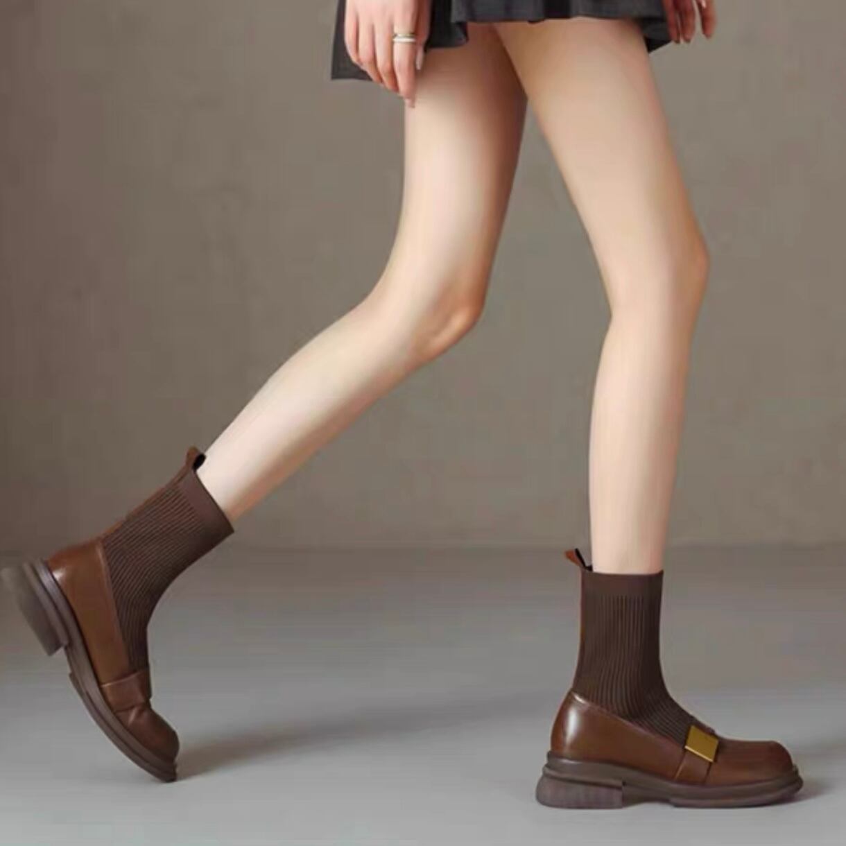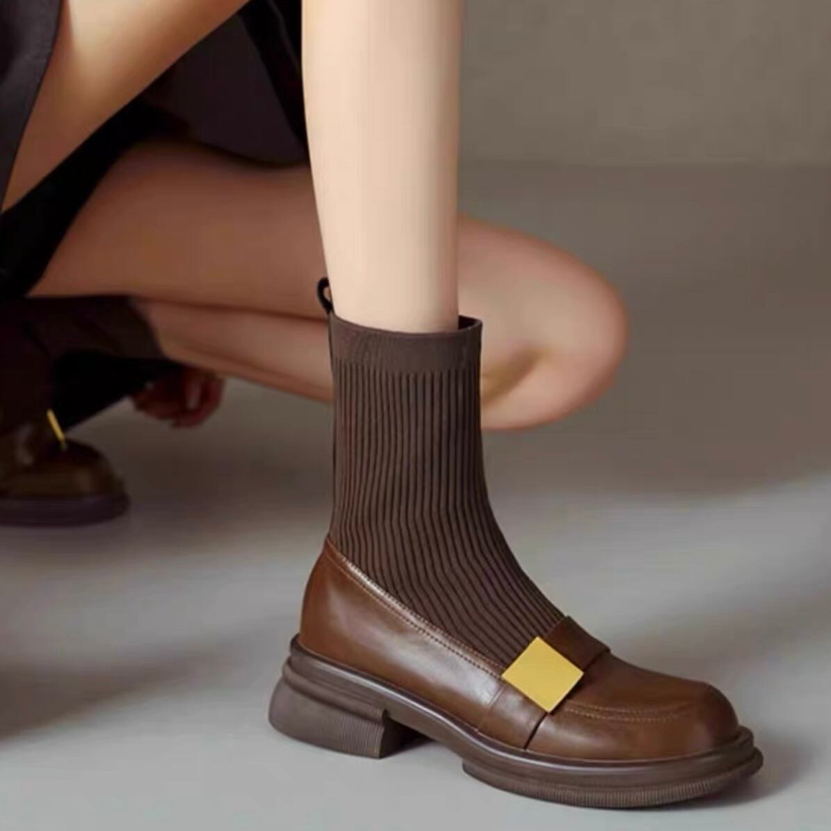 【shoes】ローファー風ソックスブーツ2色 YR0076