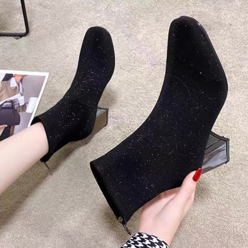 【shoes】グリッターマテリアルショートブーツ YR0080