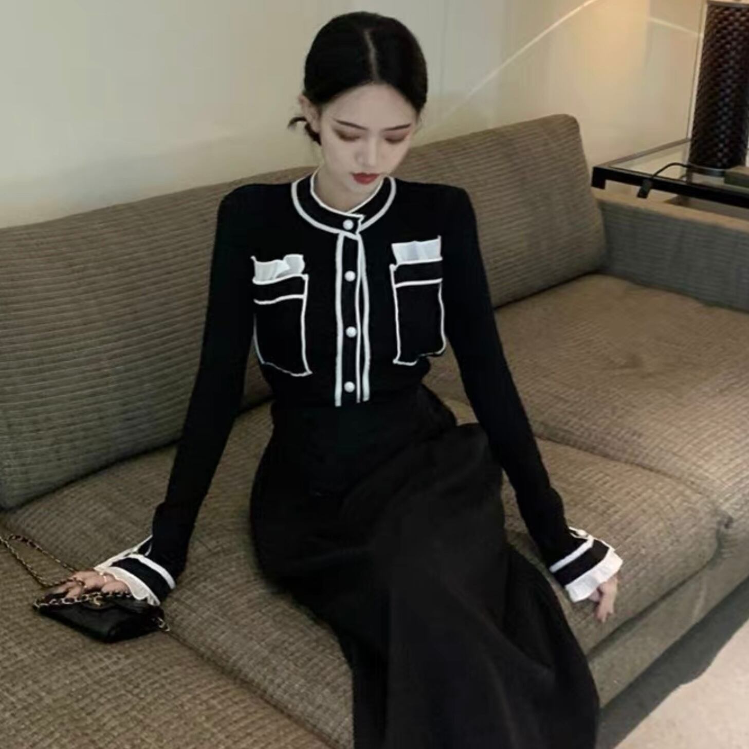 【outer】配色パイピングニットカーディガン MA1114