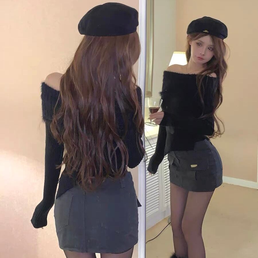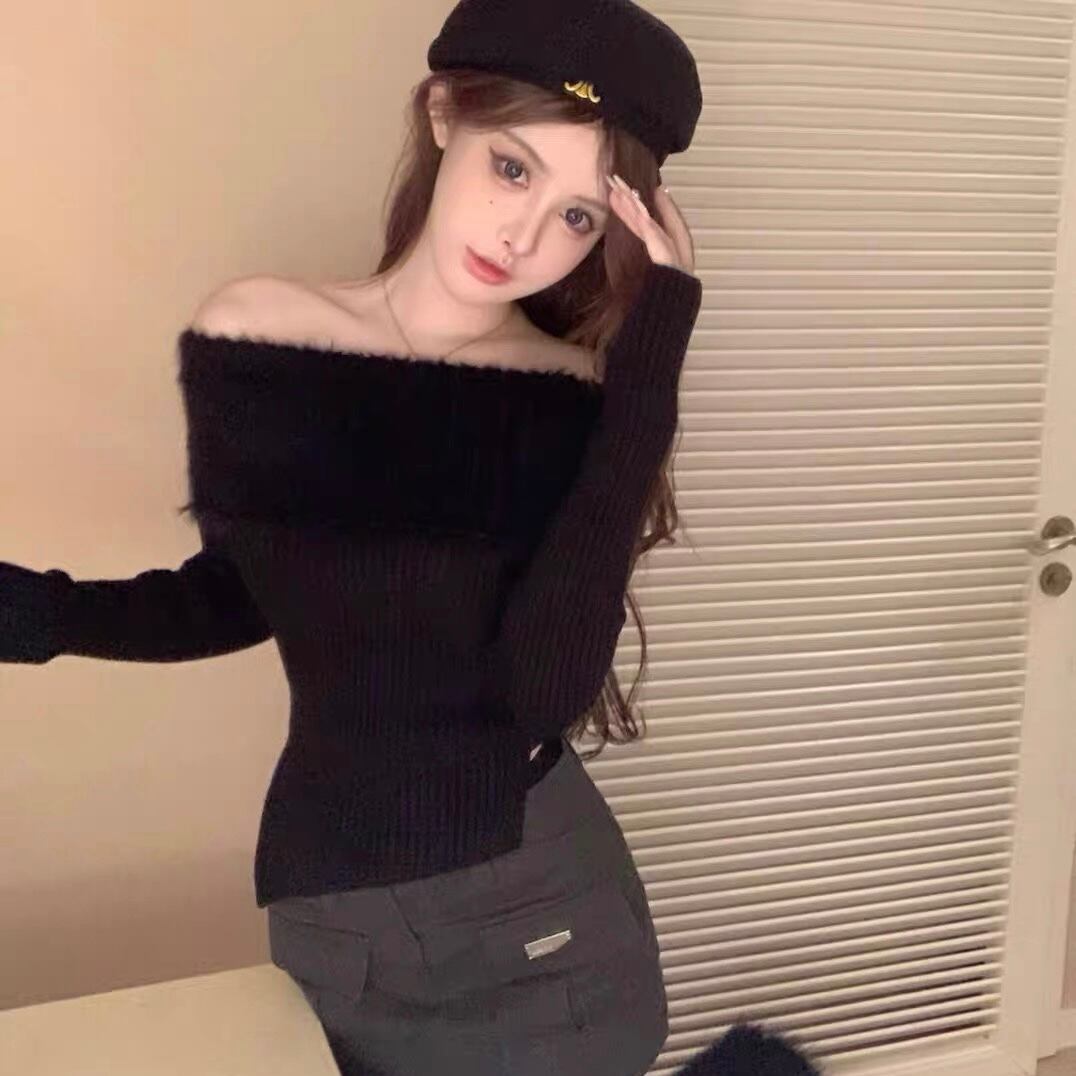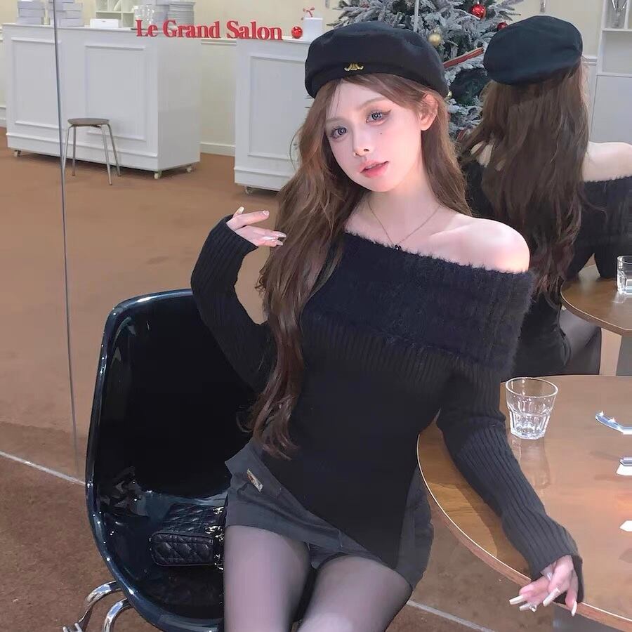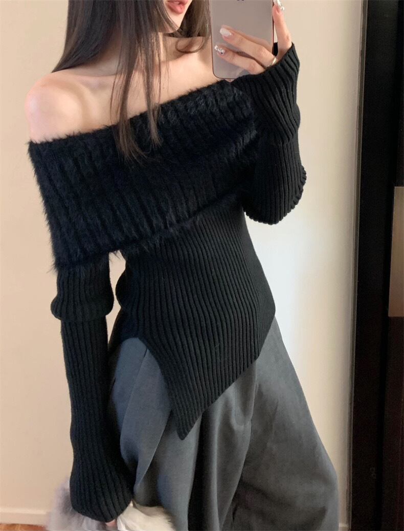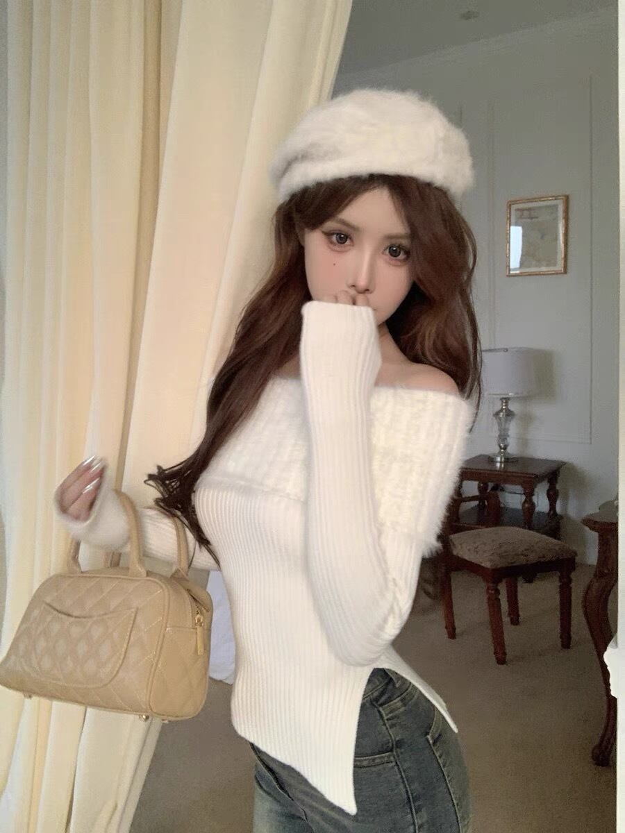 【tops】スリット入りオフショルダーニットトップス2色 SG10220