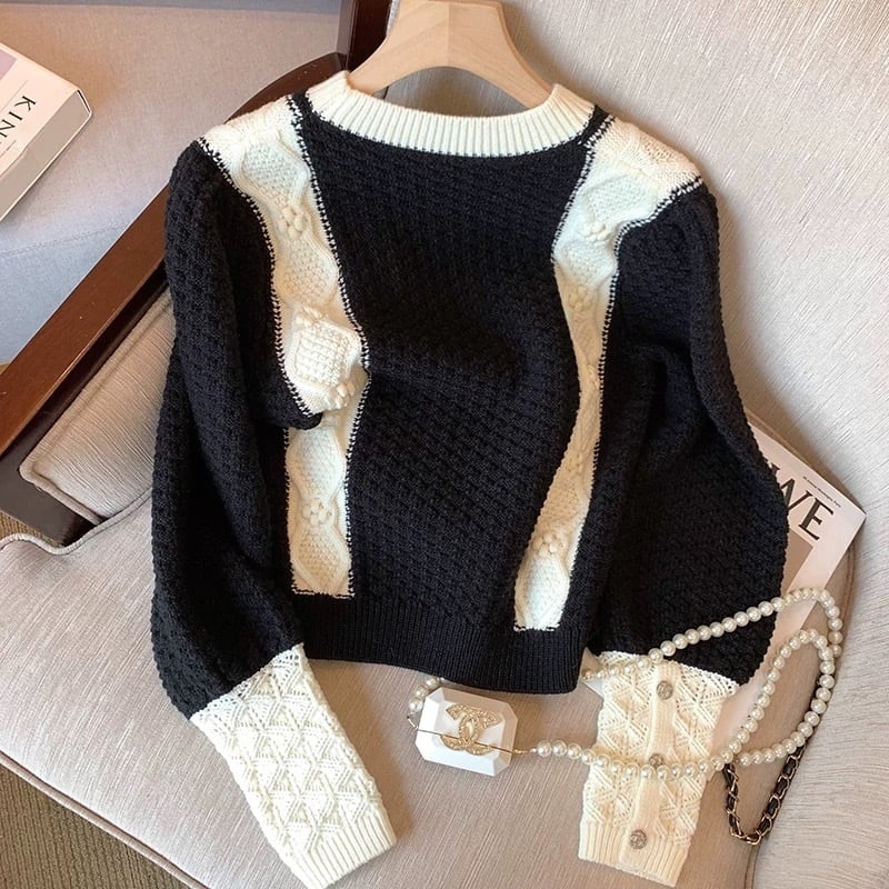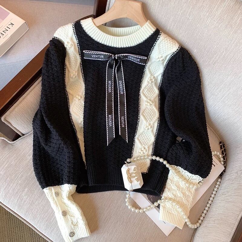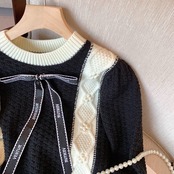 【tops】配色リボンニットトップス MA1115