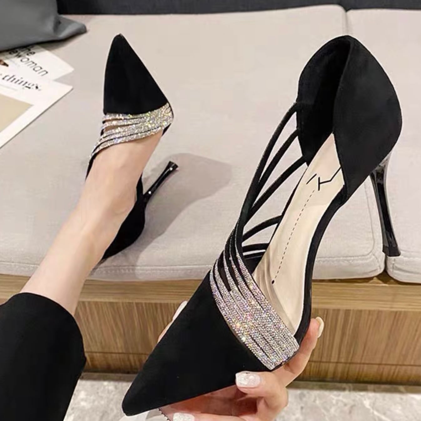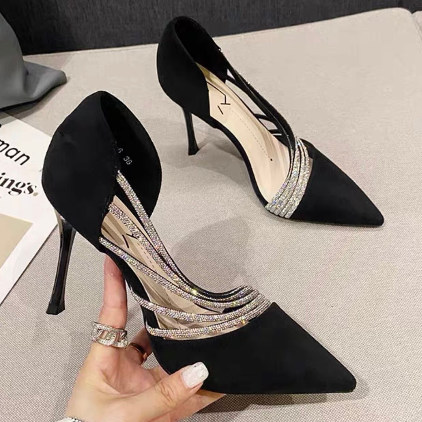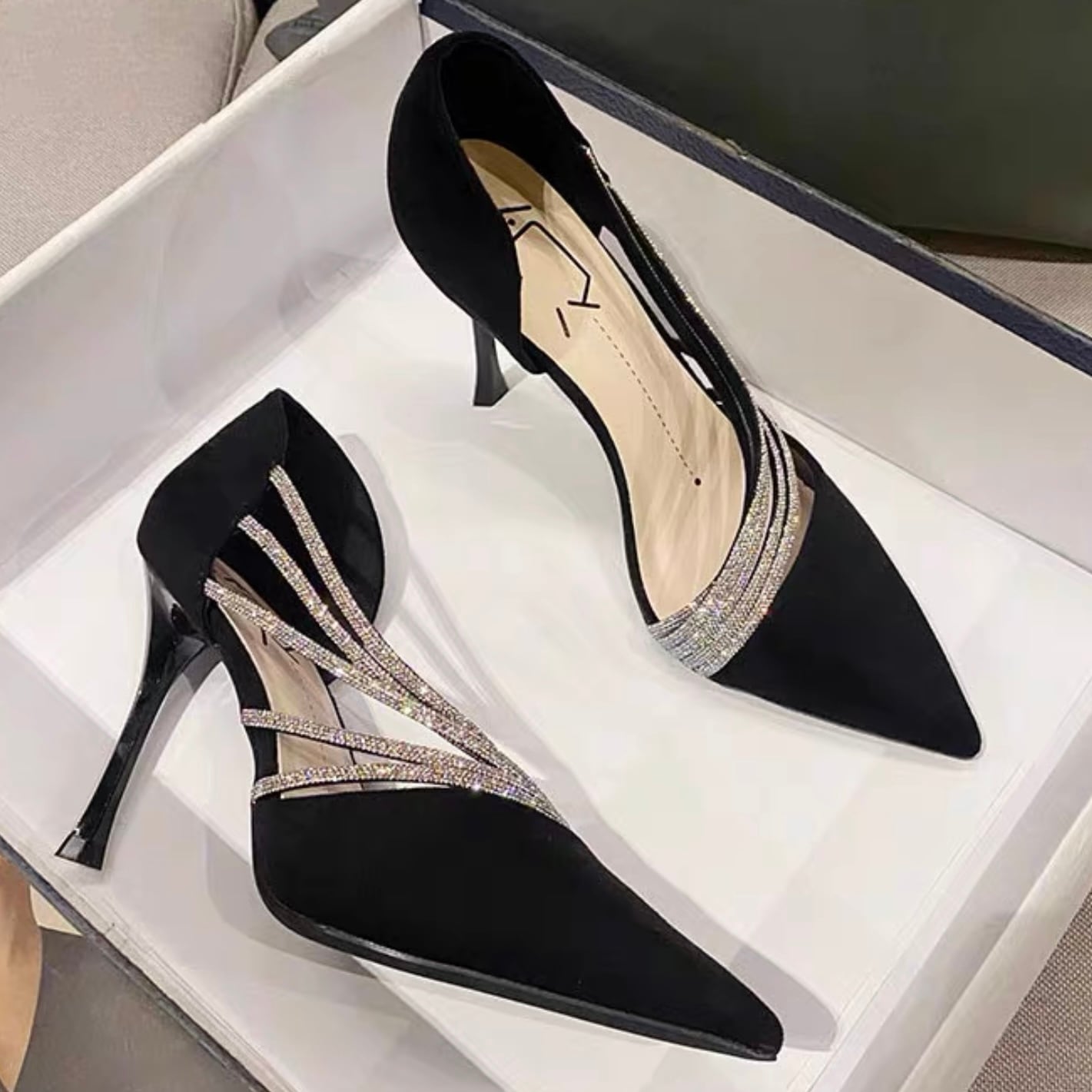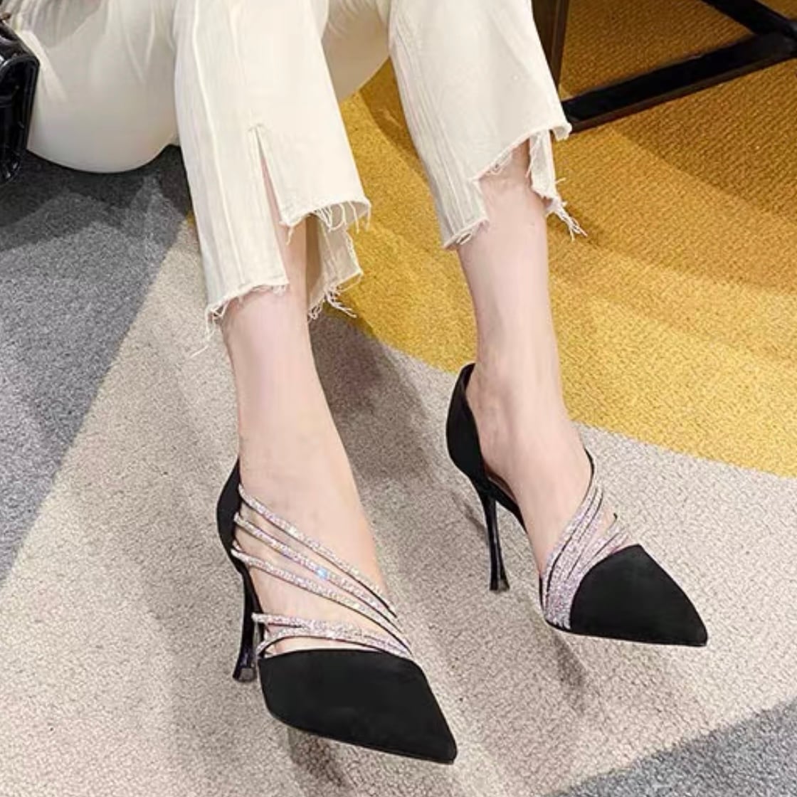 【shoes】サイドオープンビジューパンプス2色 YR0085