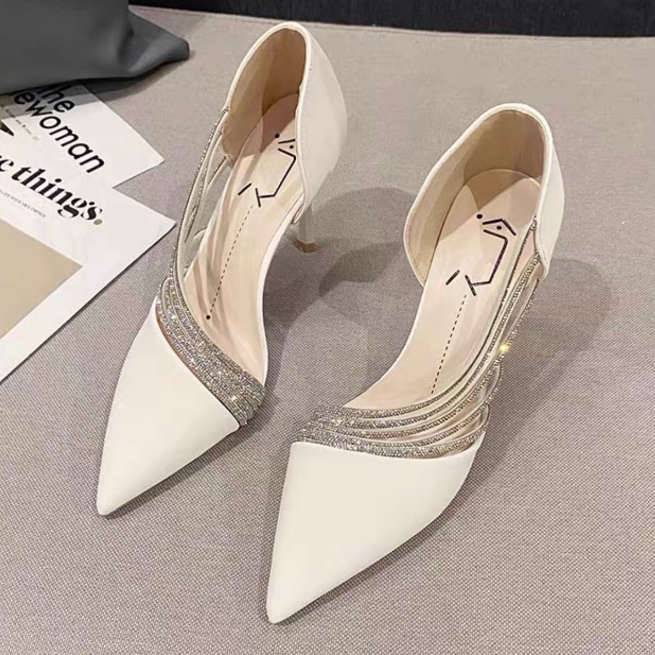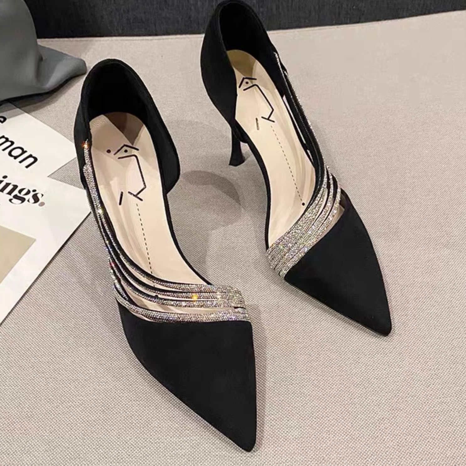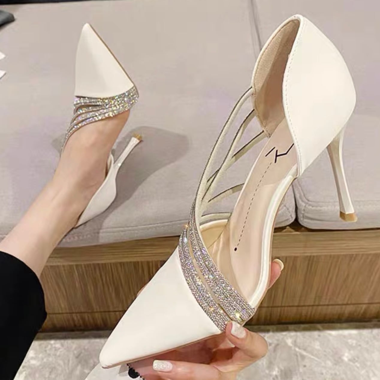 【shoes】サイドオープンビジューパンプス2色 YR0085