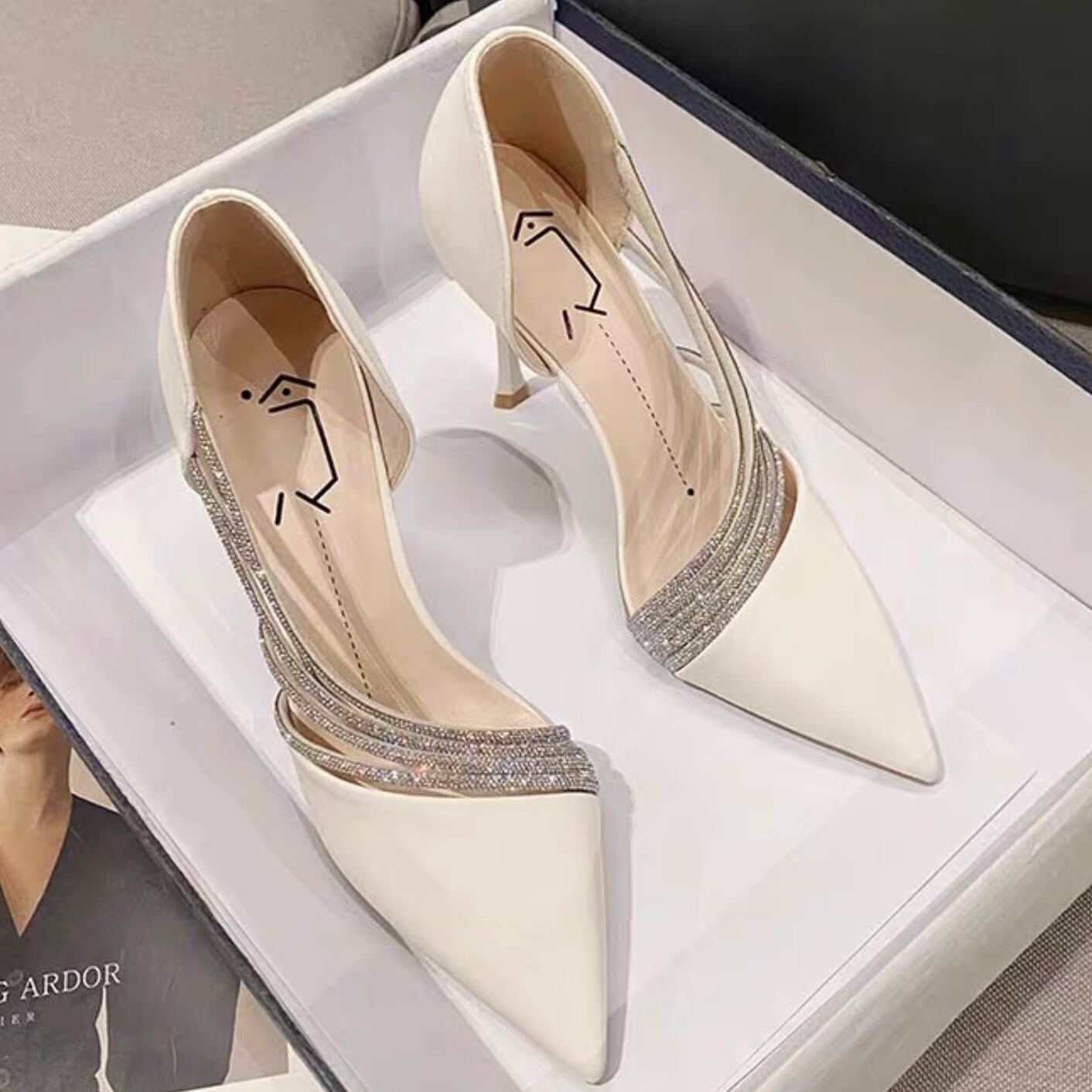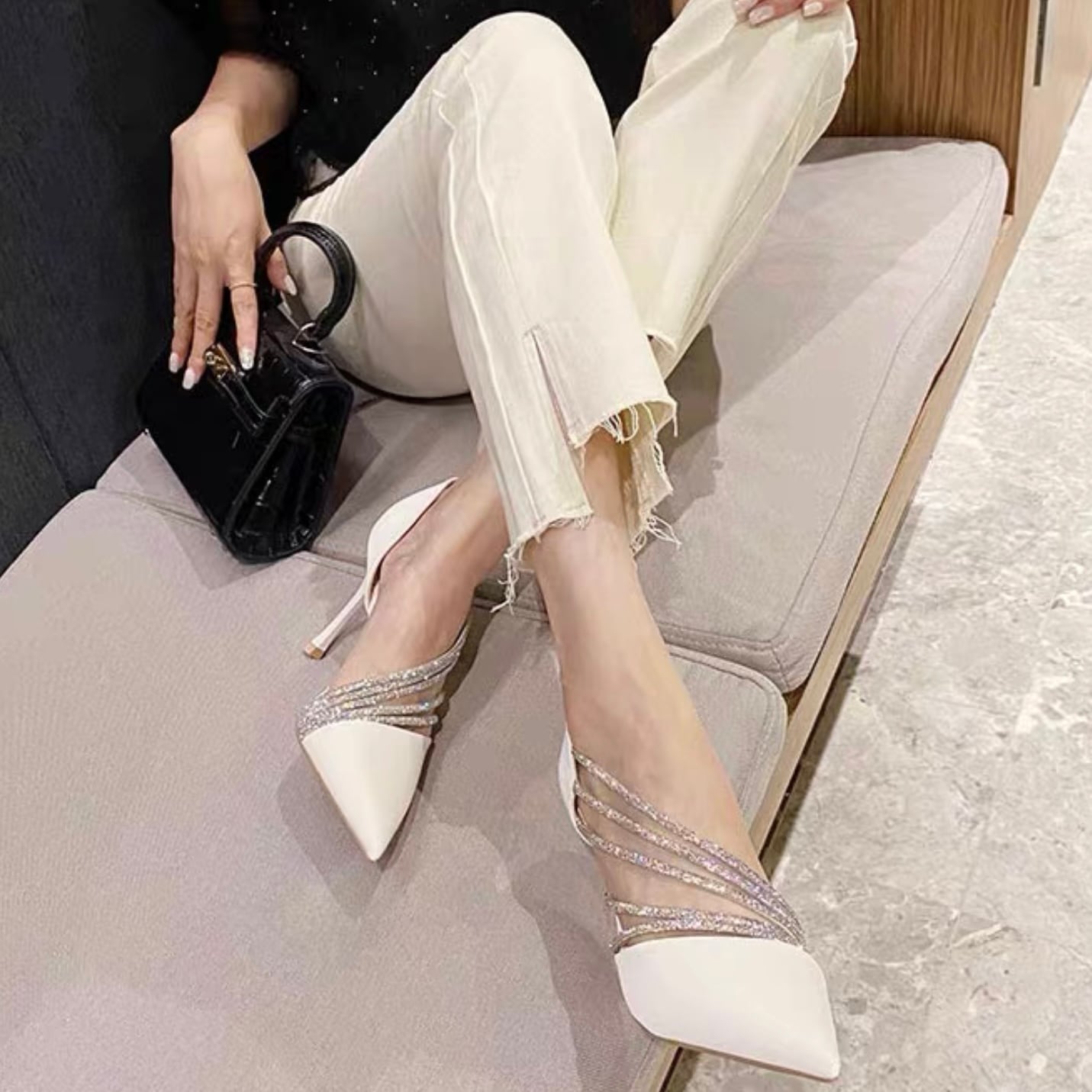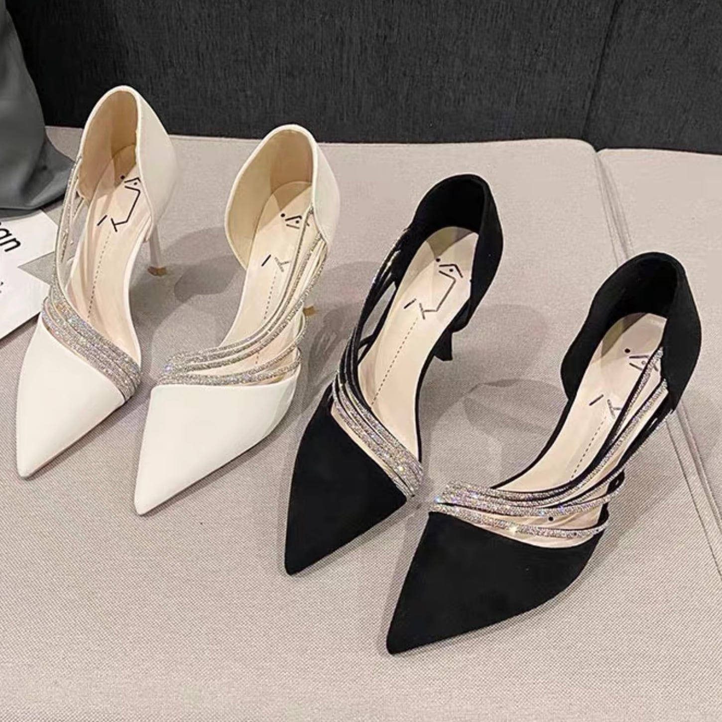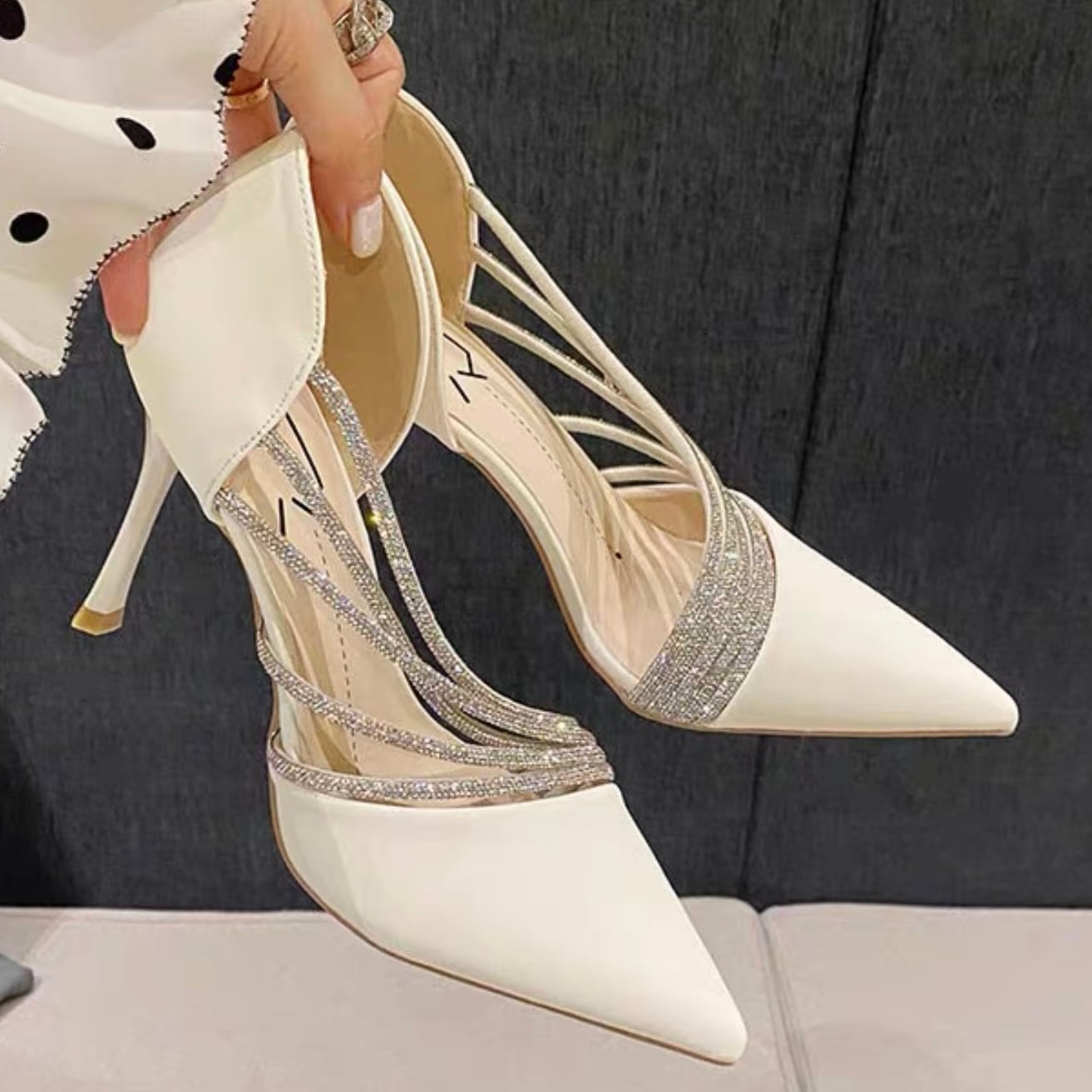 【shoes】サイドオープンビジューパンプス2色 YR0085
