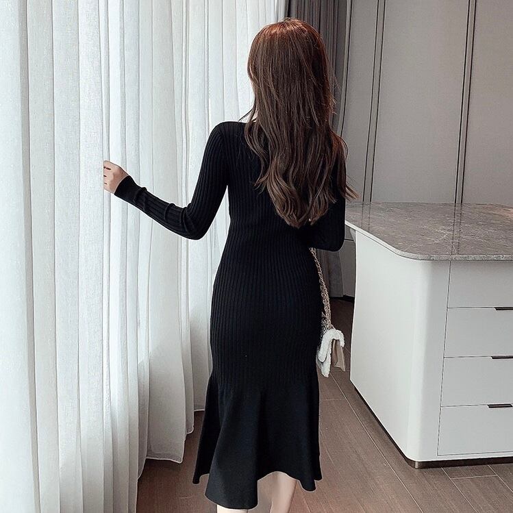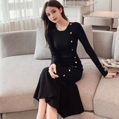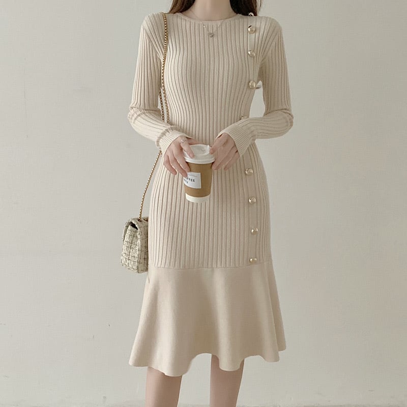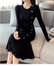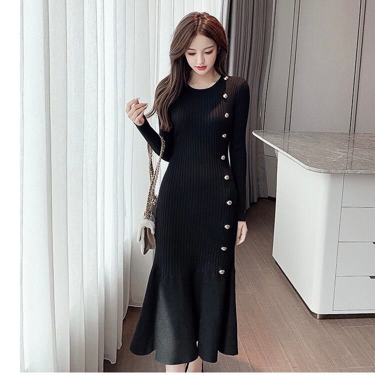 【dress】ボタンデザインマーメイドニットワンピース2色 SY10233