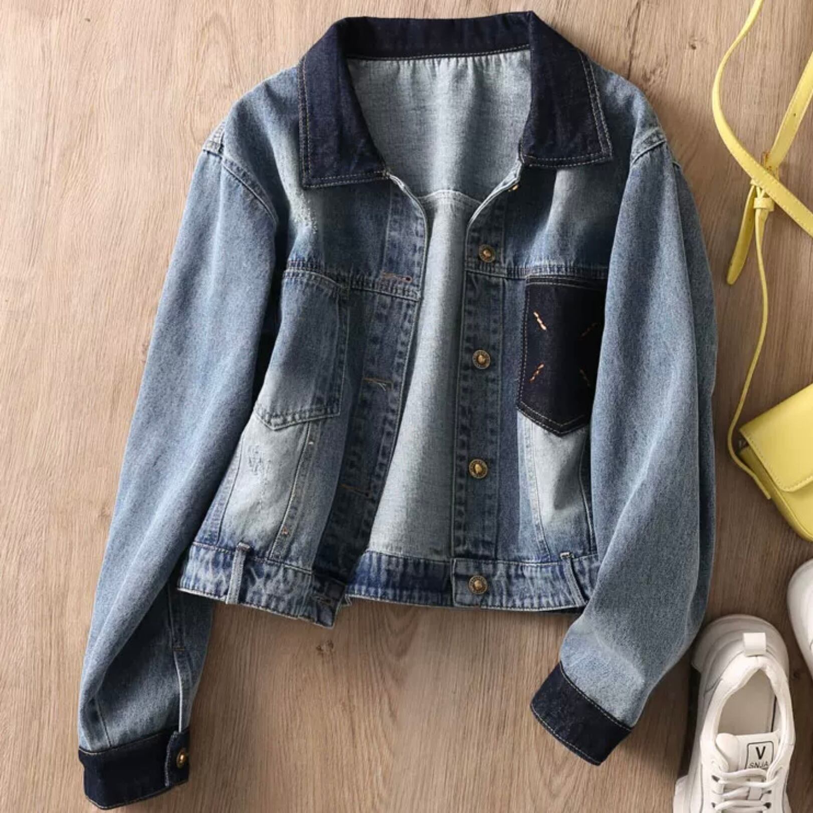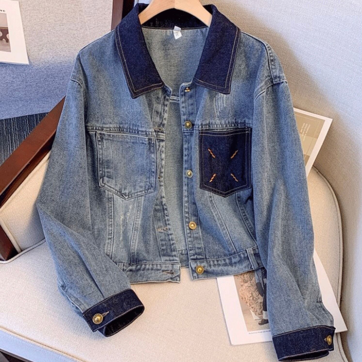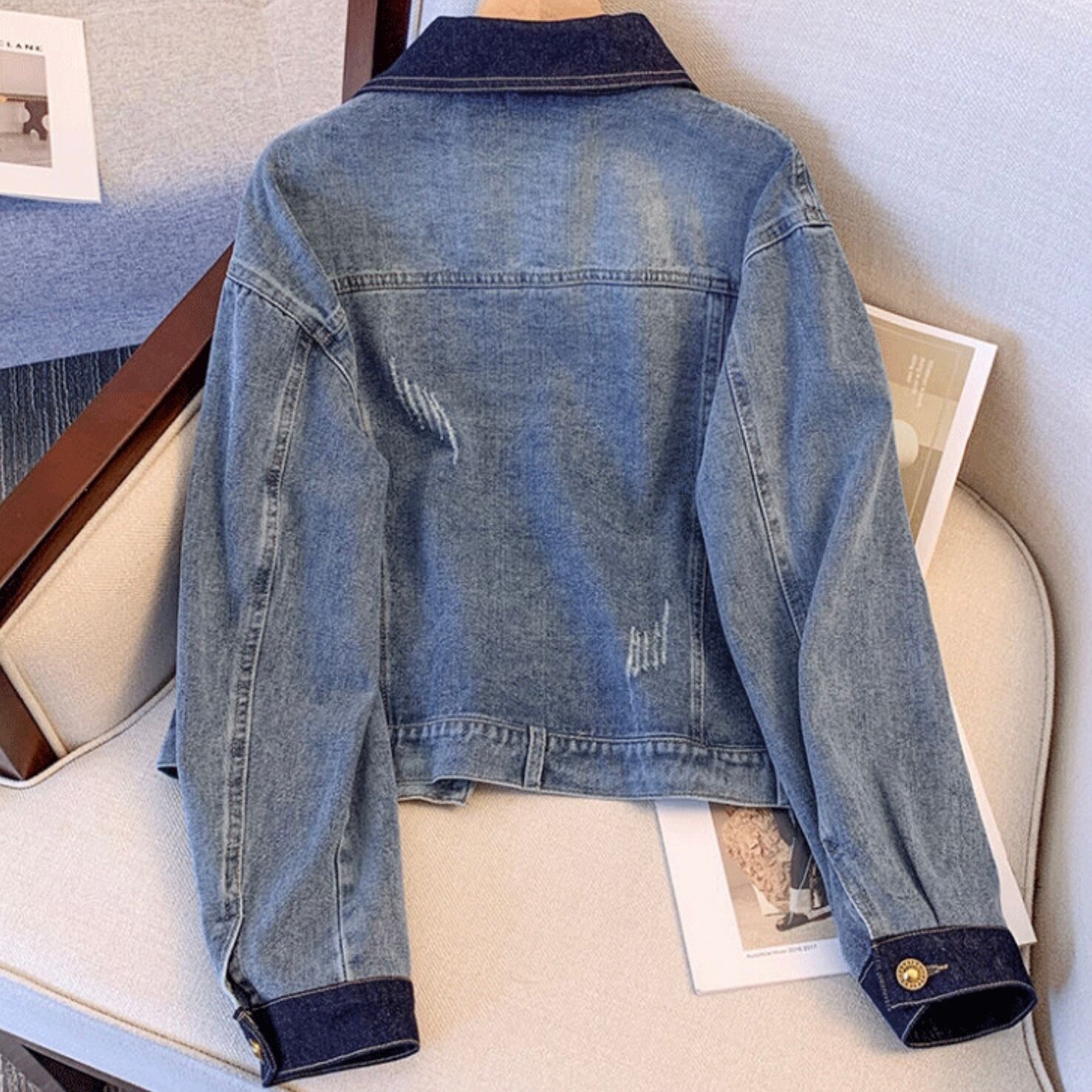 【outer】配色襟付きデニムジャケット MA1125