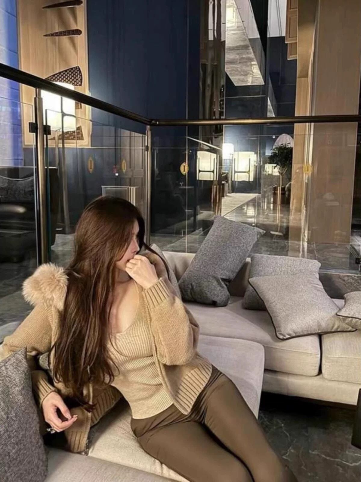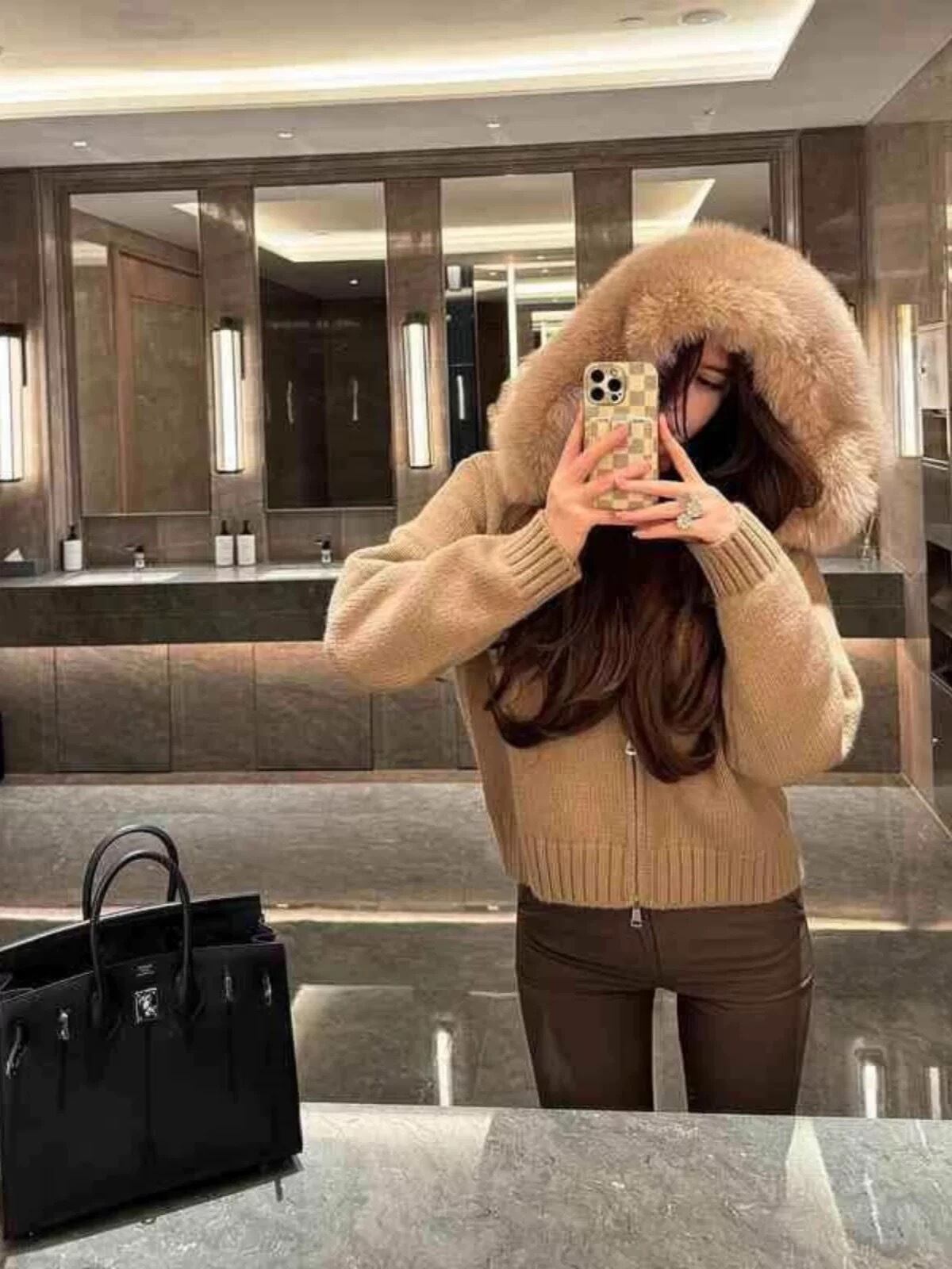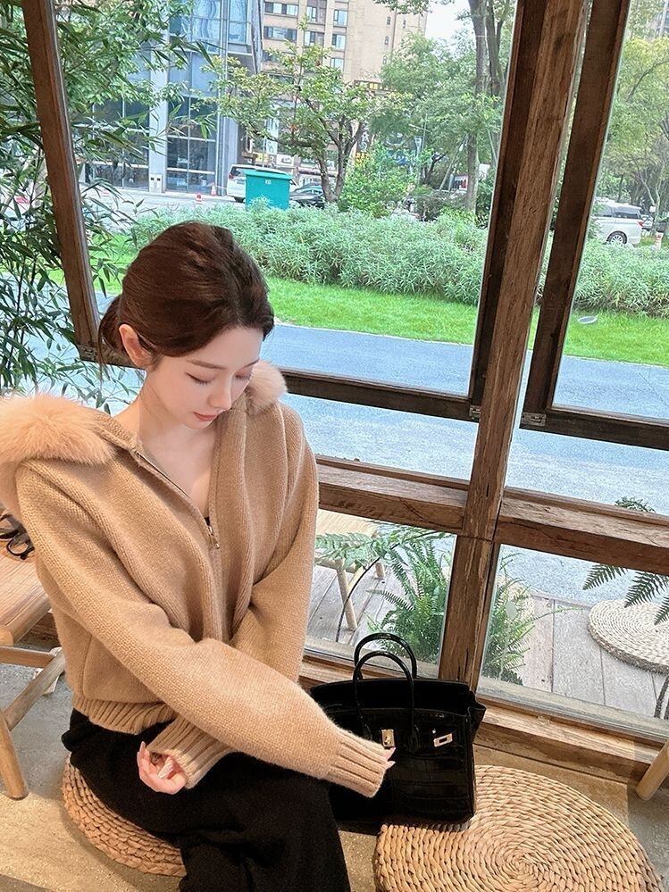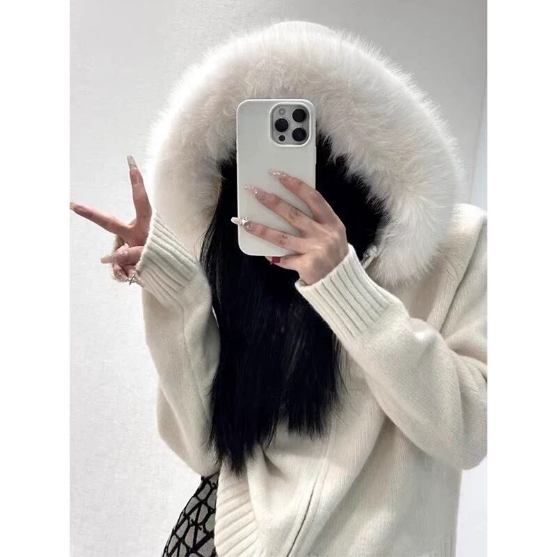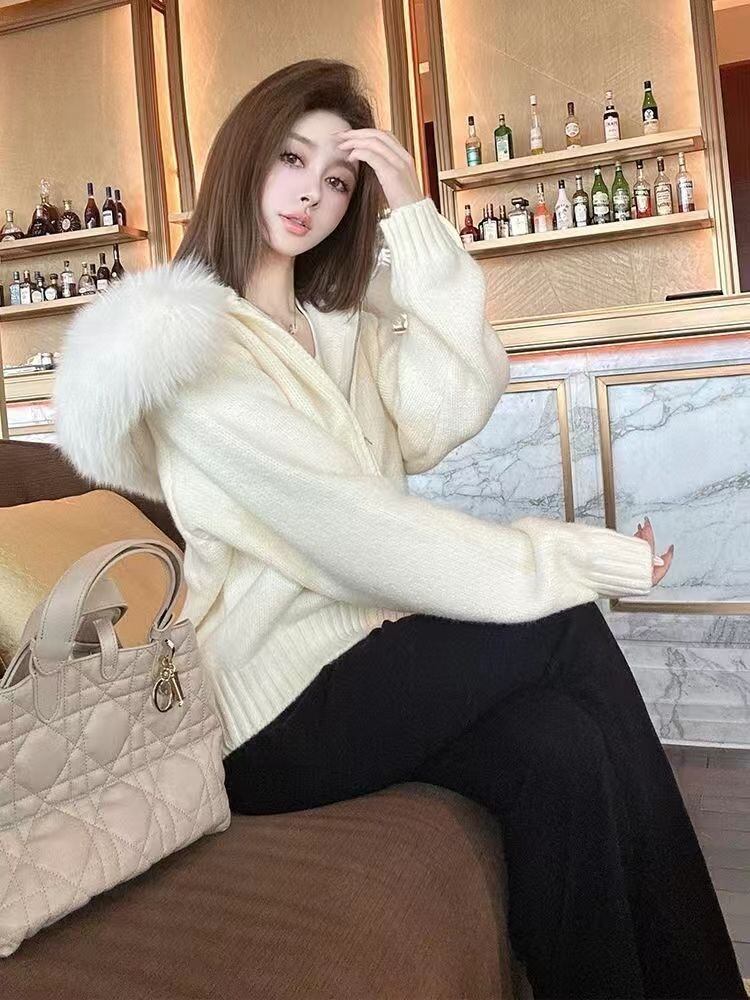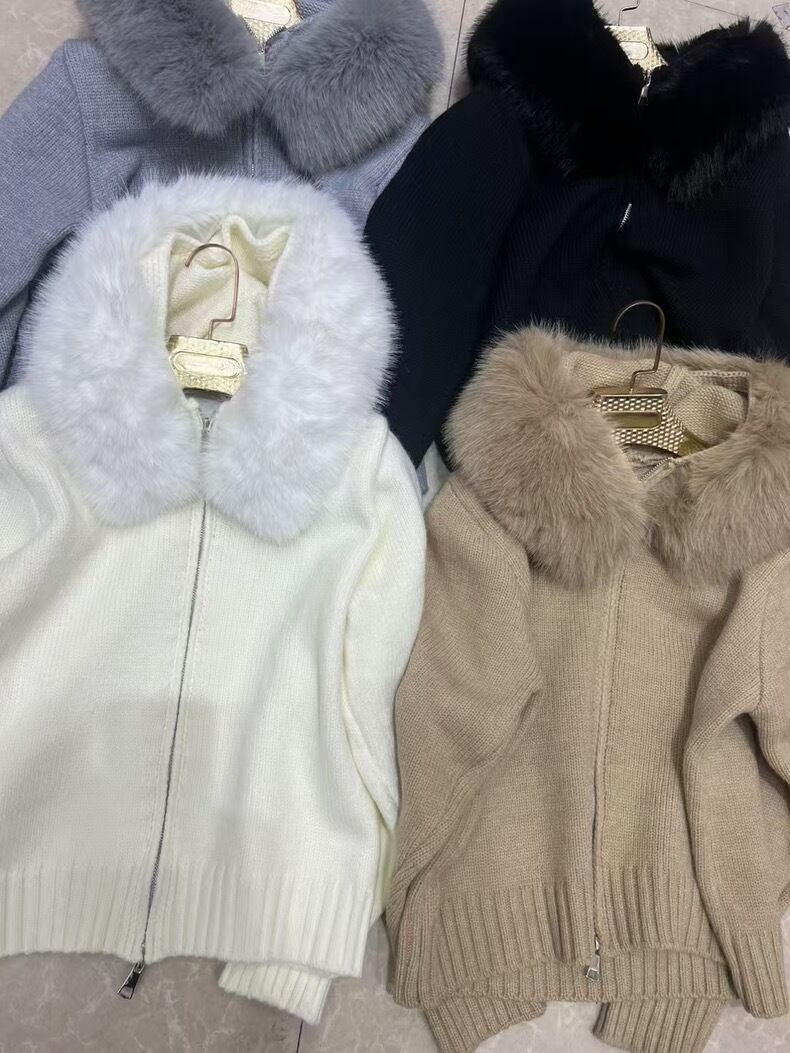 【outer】エコファーフードニットジャケット4色 ID10250