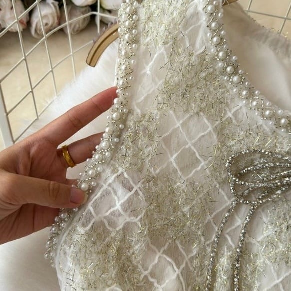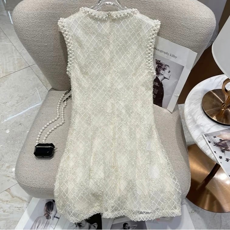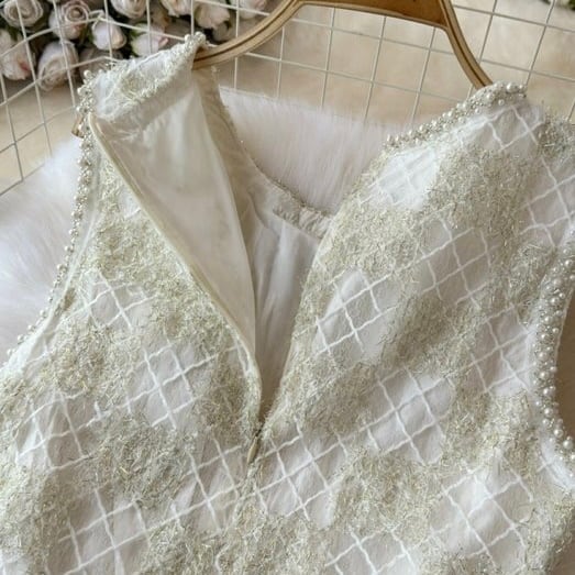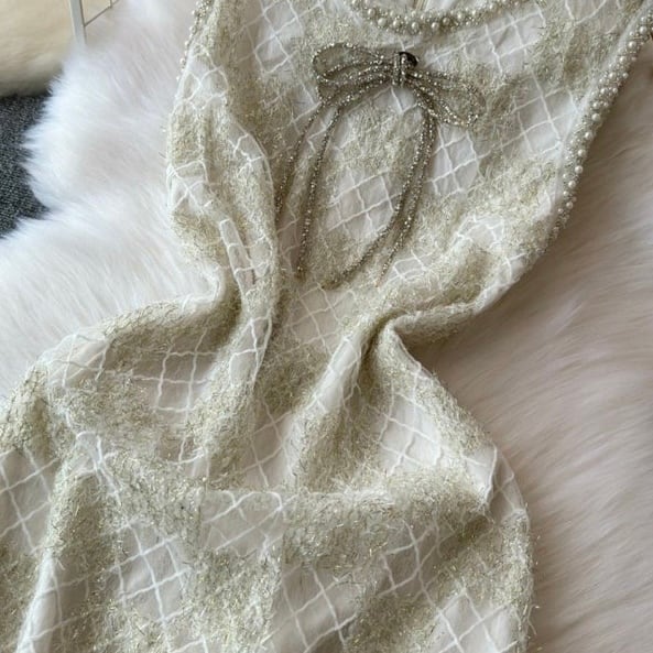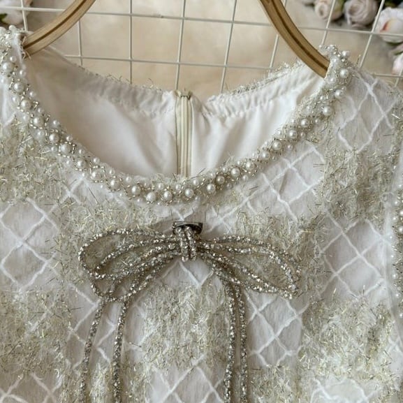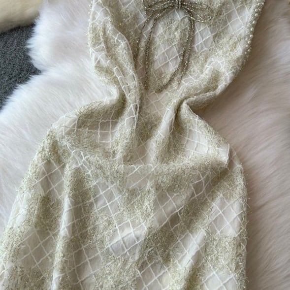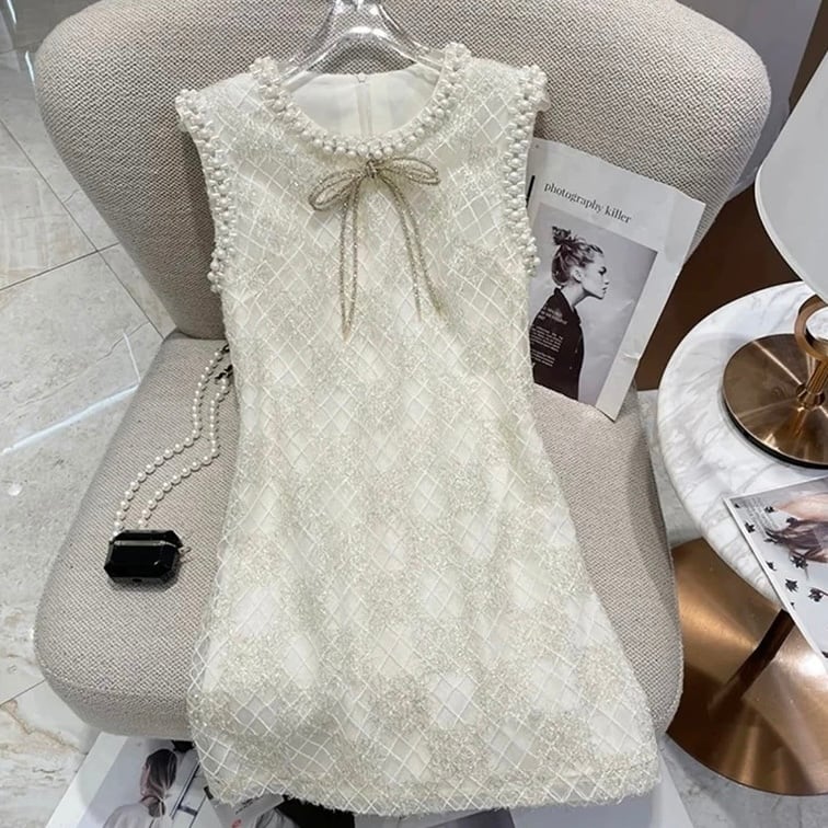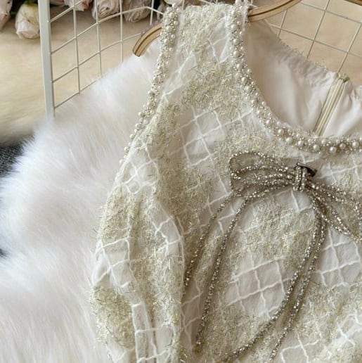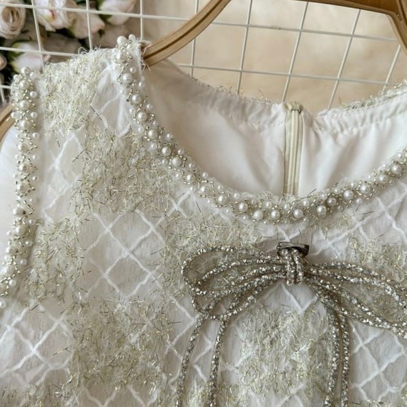 【dress】S〜2XLパールリボン付きノースリーブワンピース YM10253