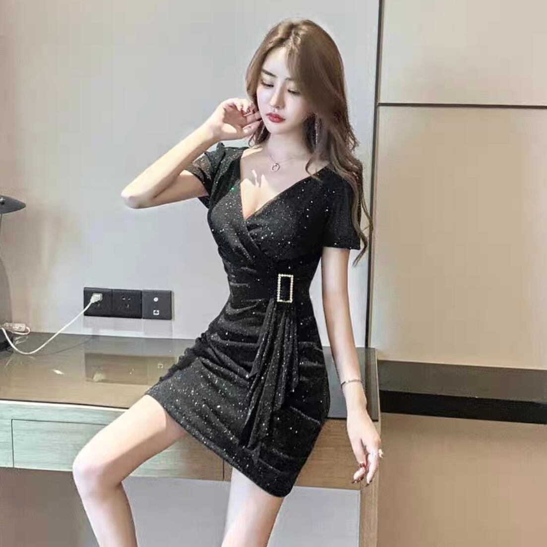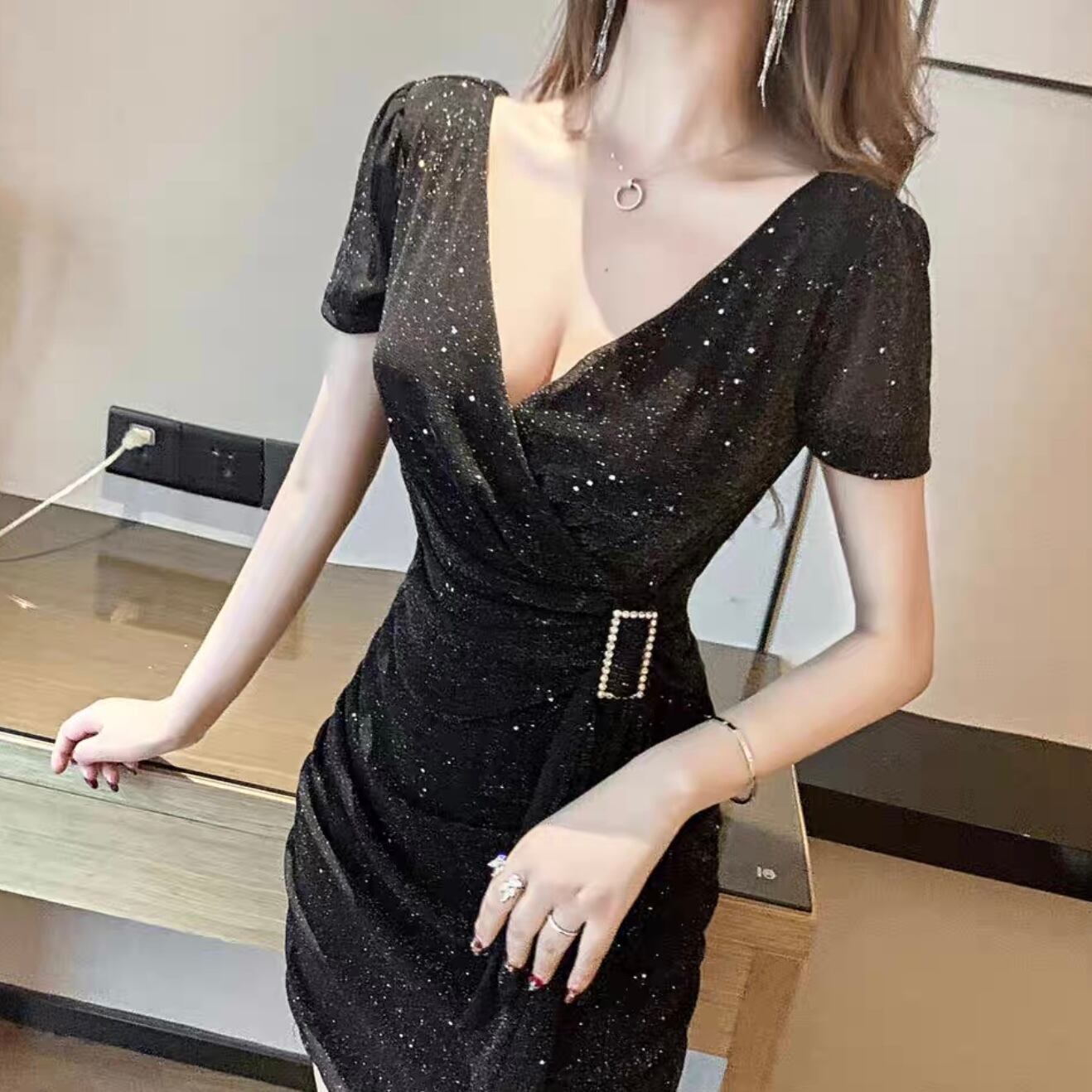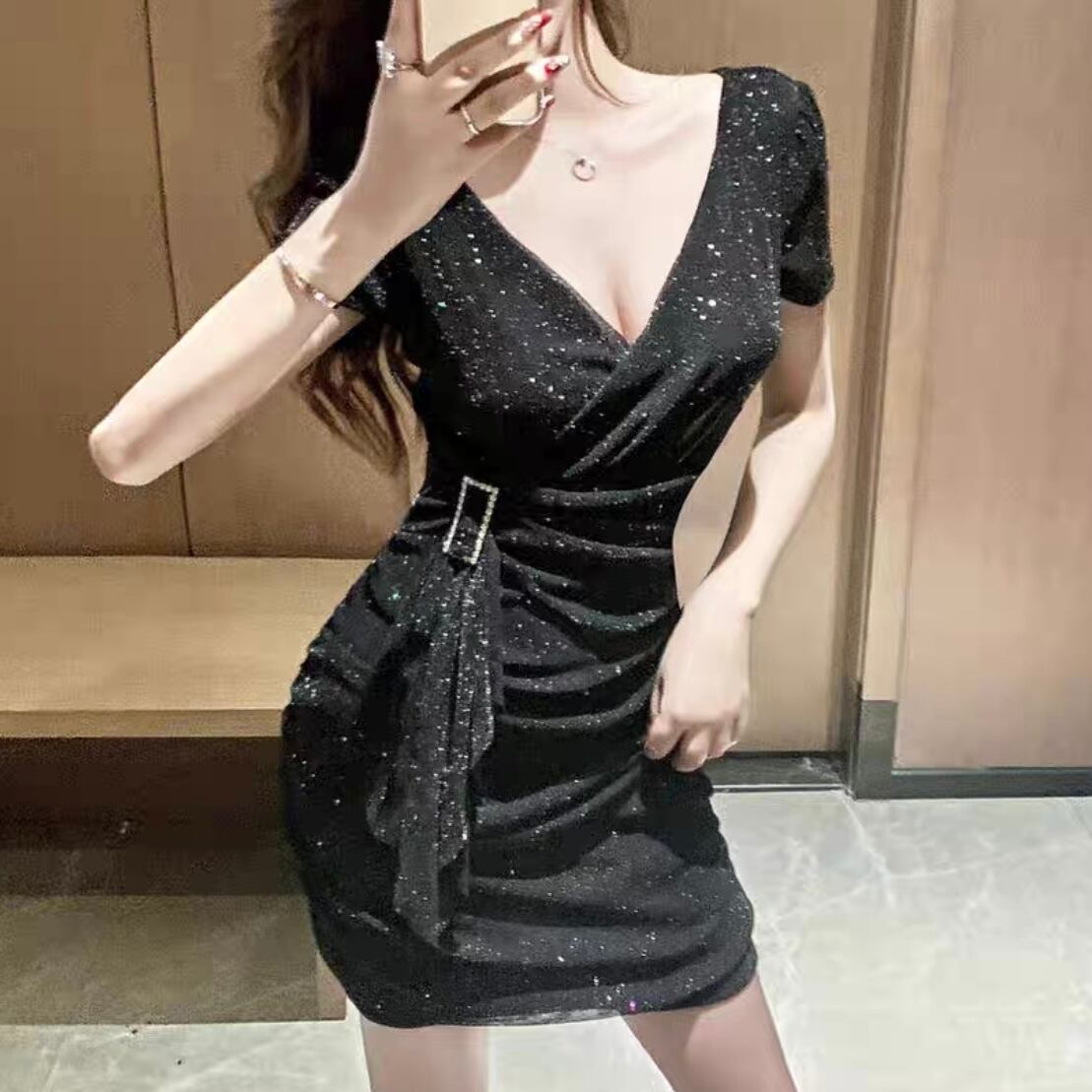 【dress】ウエスト絞りラメタイトワンピース2色 MA1136