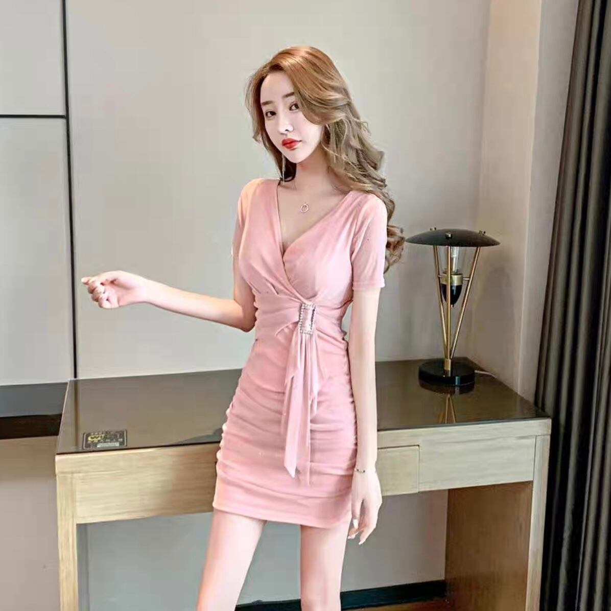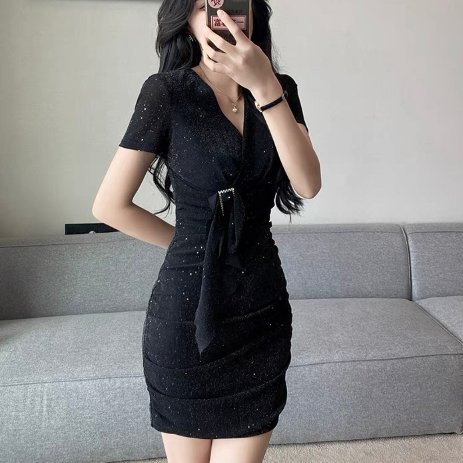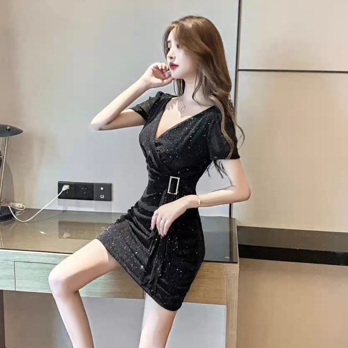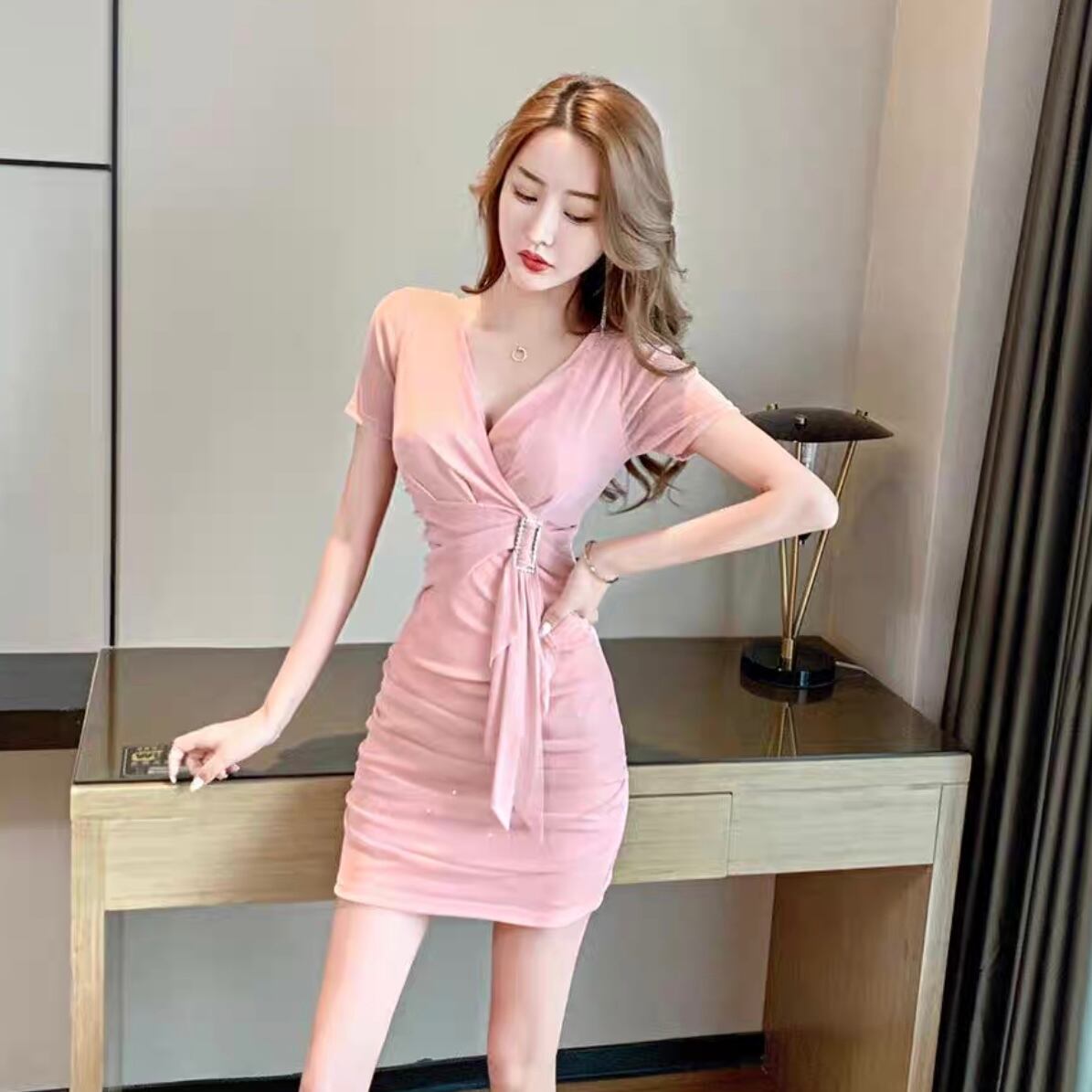 【dress】ウエスト絞りラメタイトワンピース2色 MA1136
