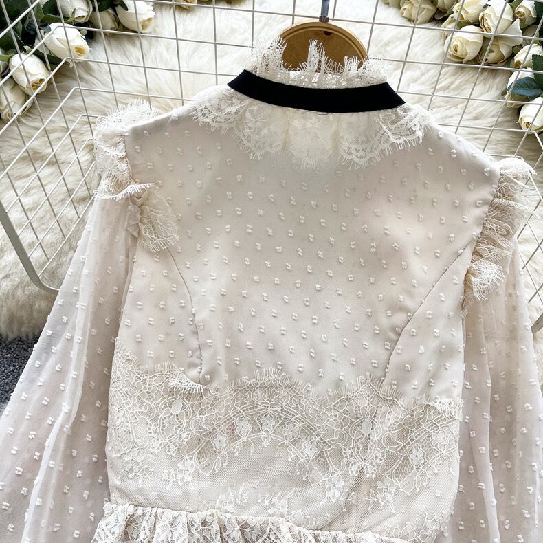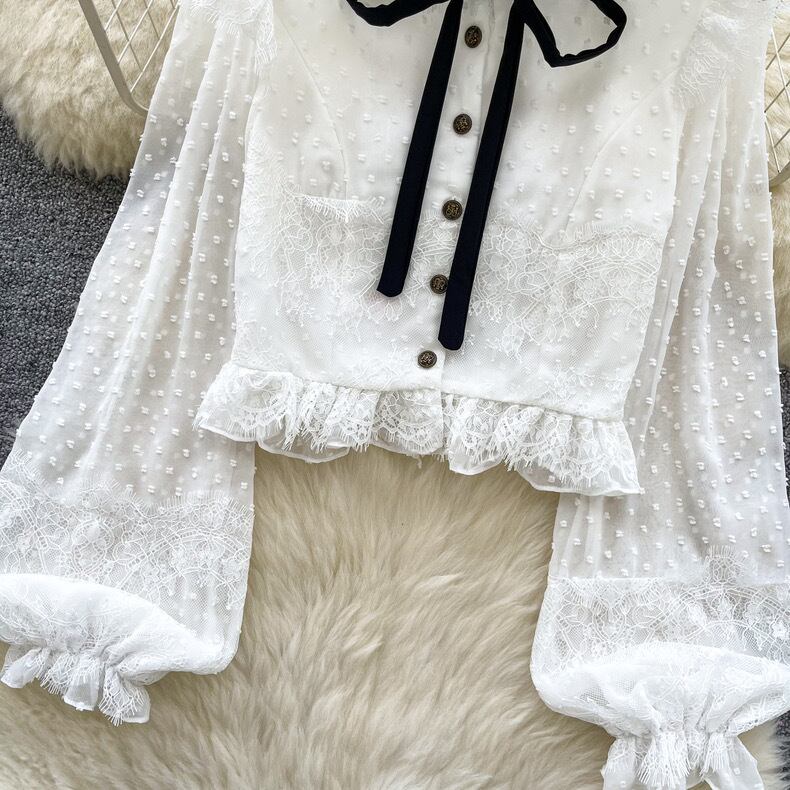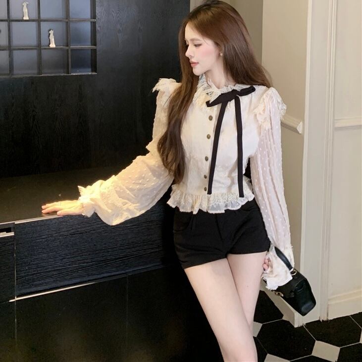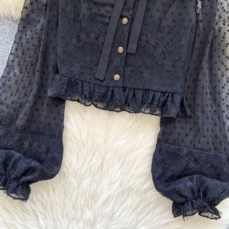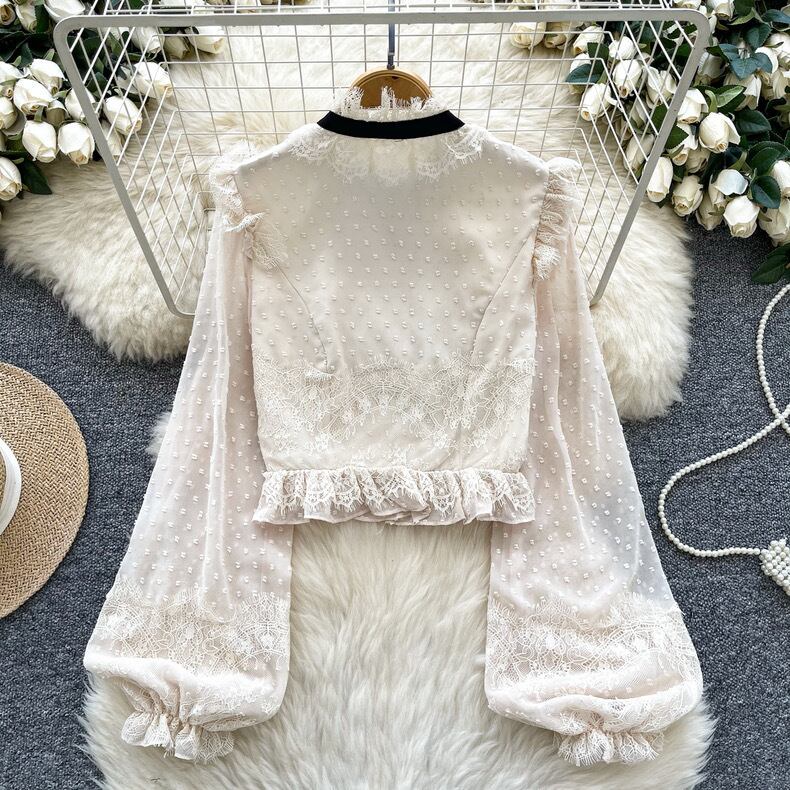 【tops】パフスリーブレース長袖ブラウス3色 MC10302