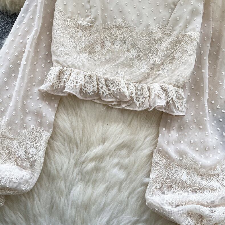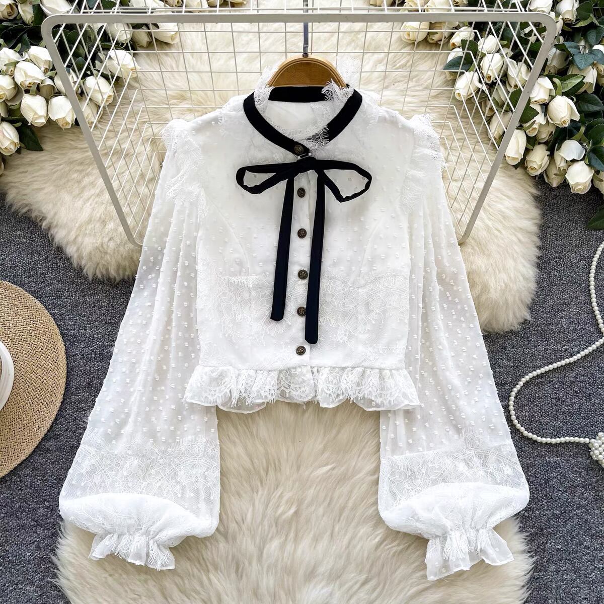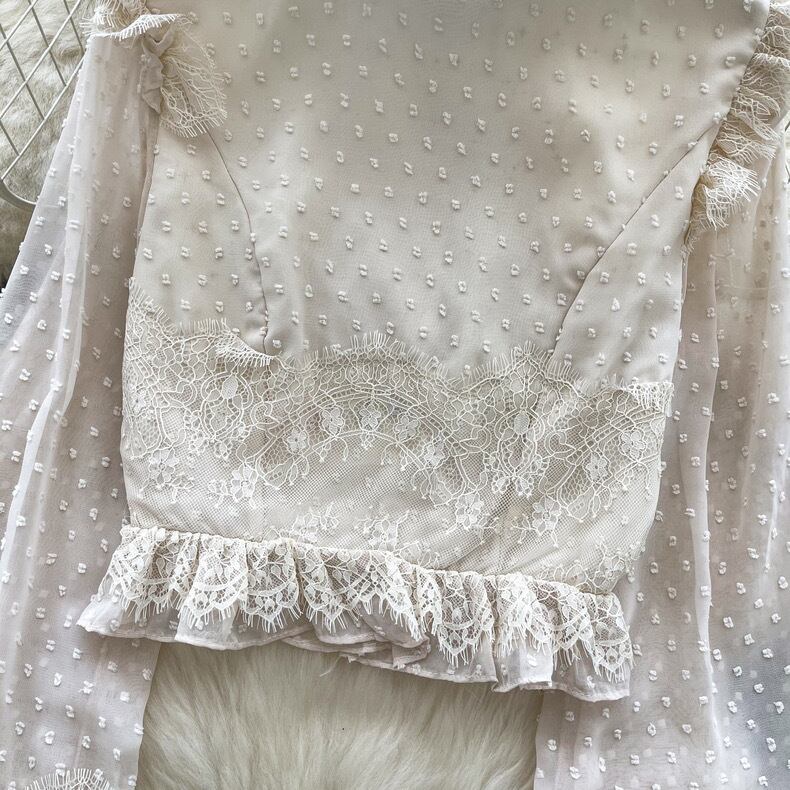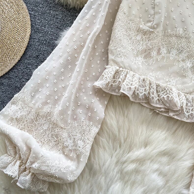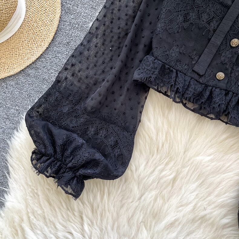 【tops】パフスリーブレース長袖ブラウス3色 MC10302