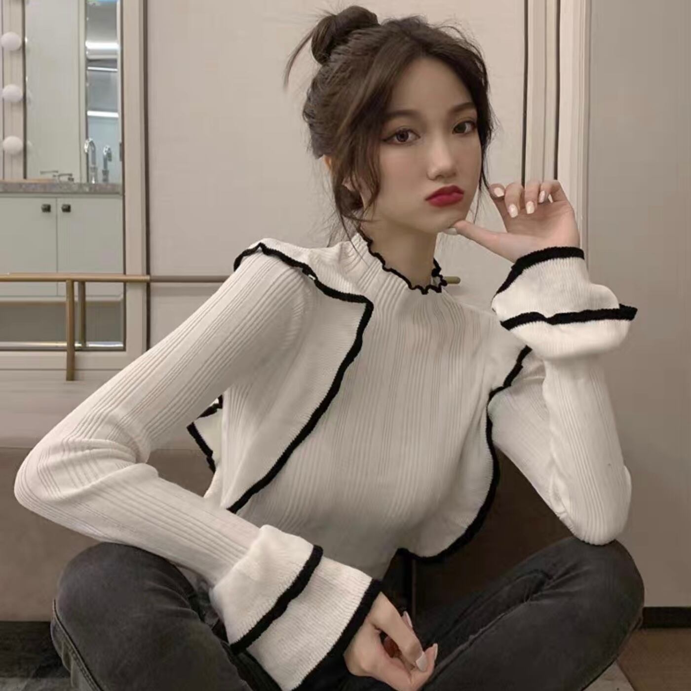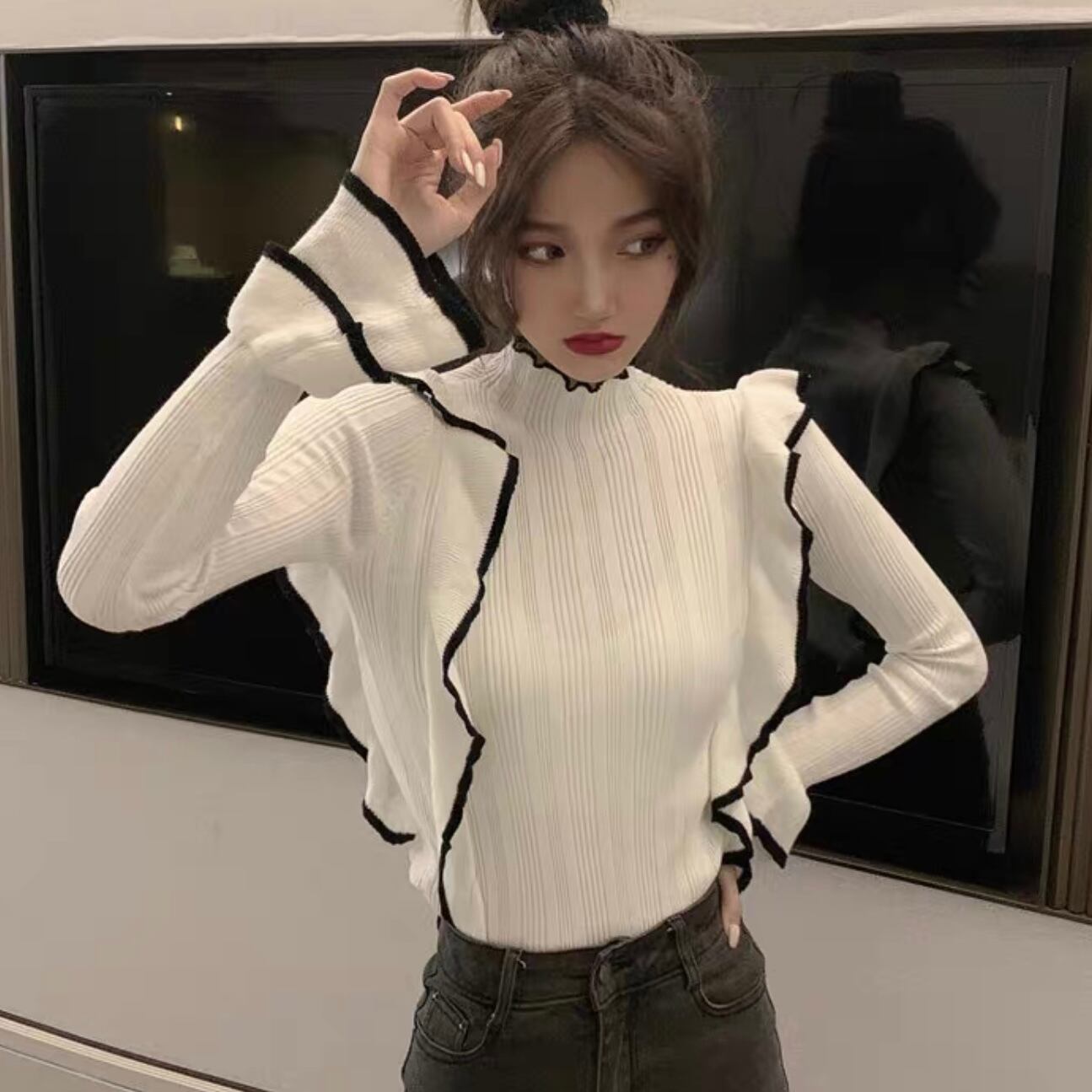 【tops】フリルニットトップス2色 MA1147