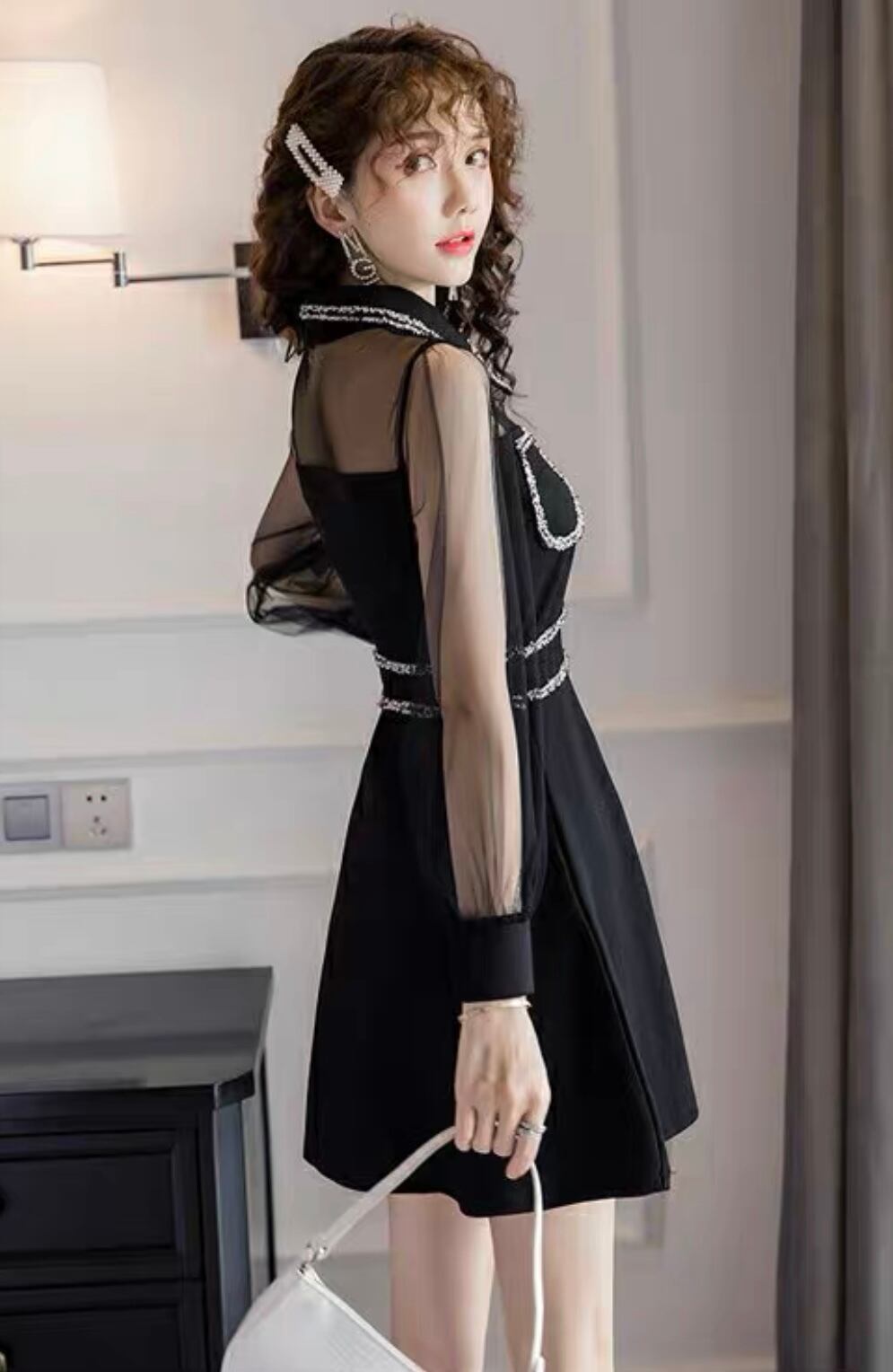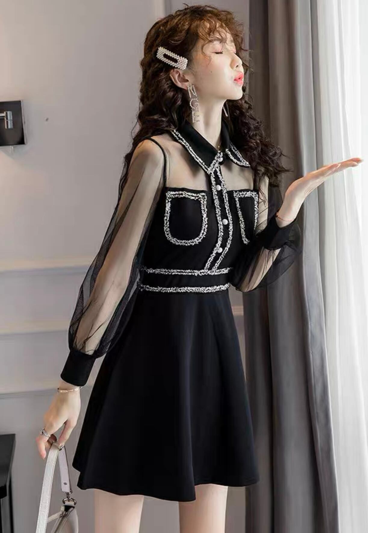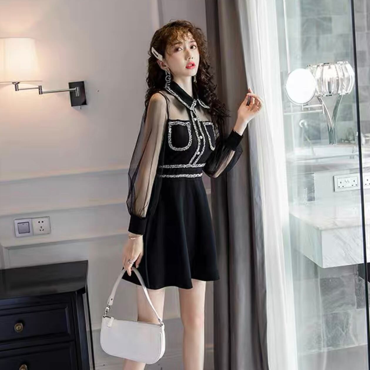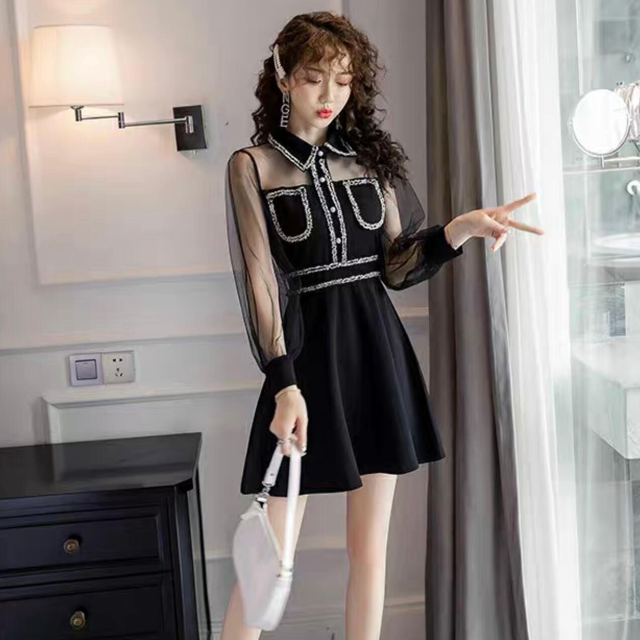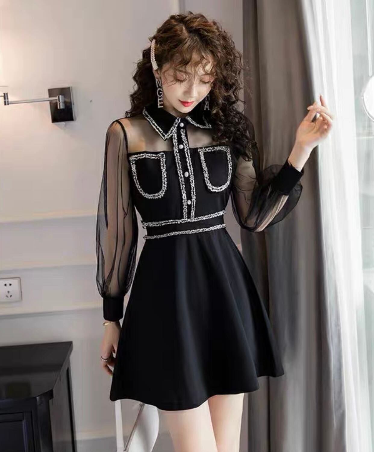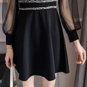 【dress】襟付きシースルー切り替えミニワンピース MA1149
