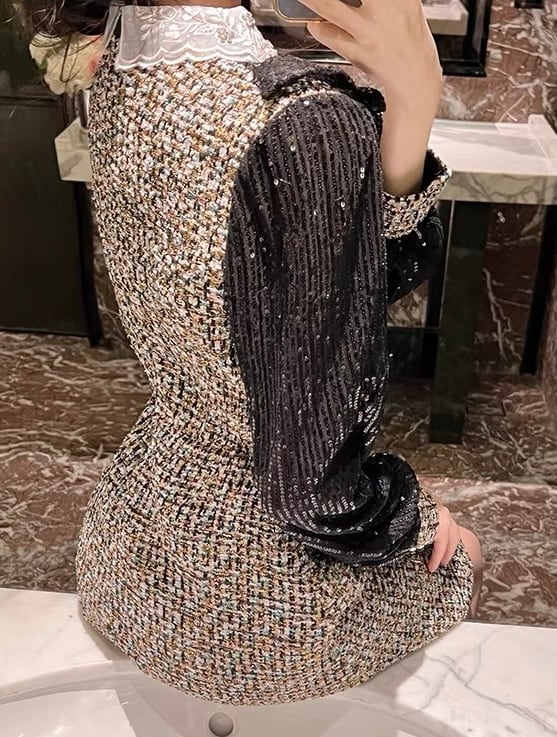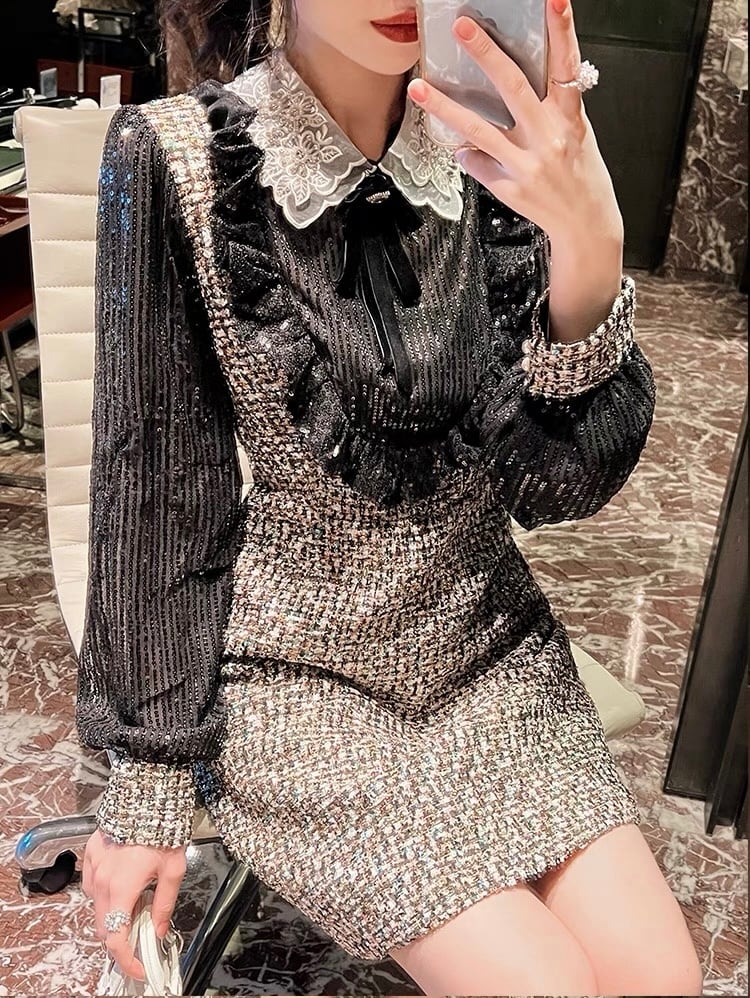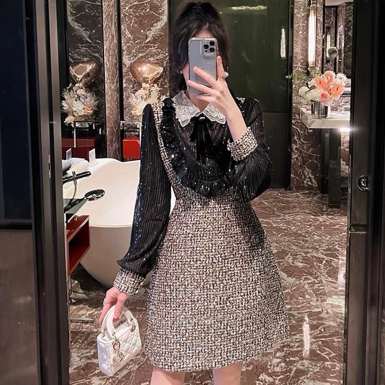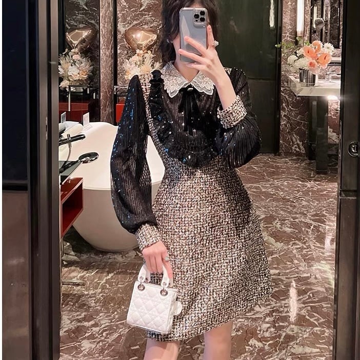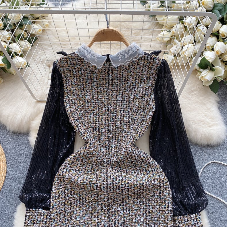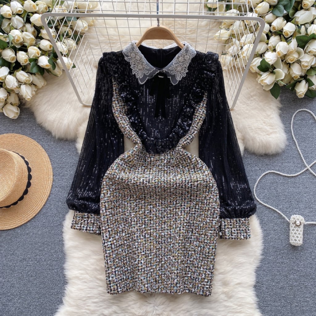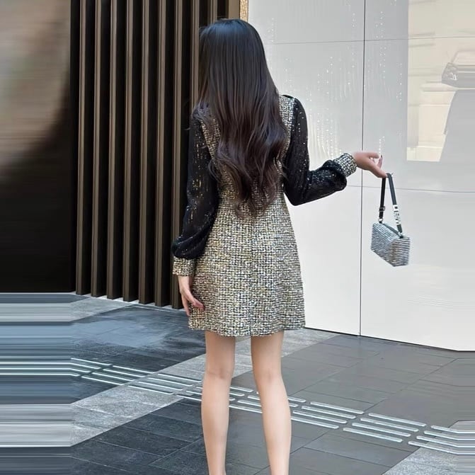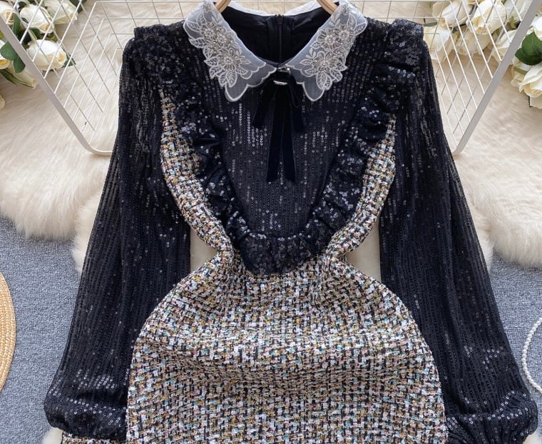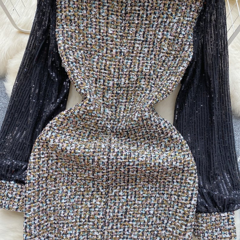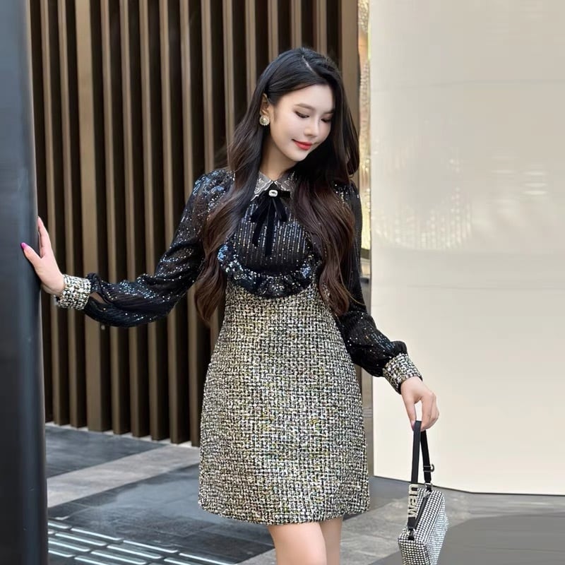 【dress】S〜2XLスパンコールドッキングワンピース RY11012