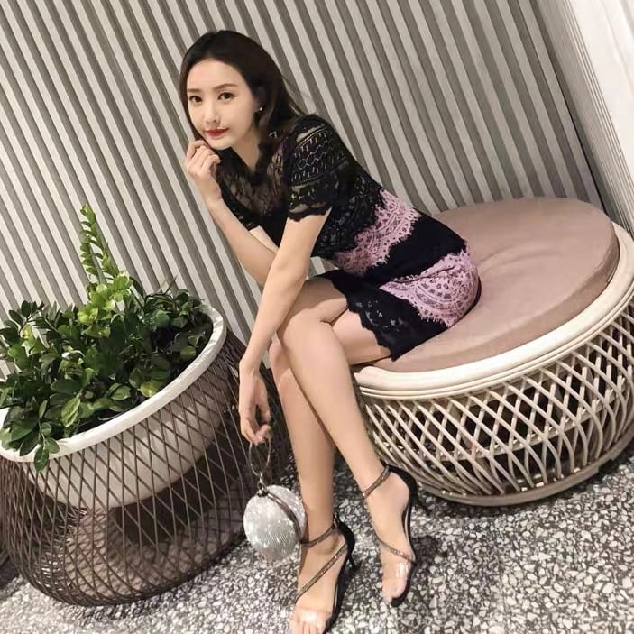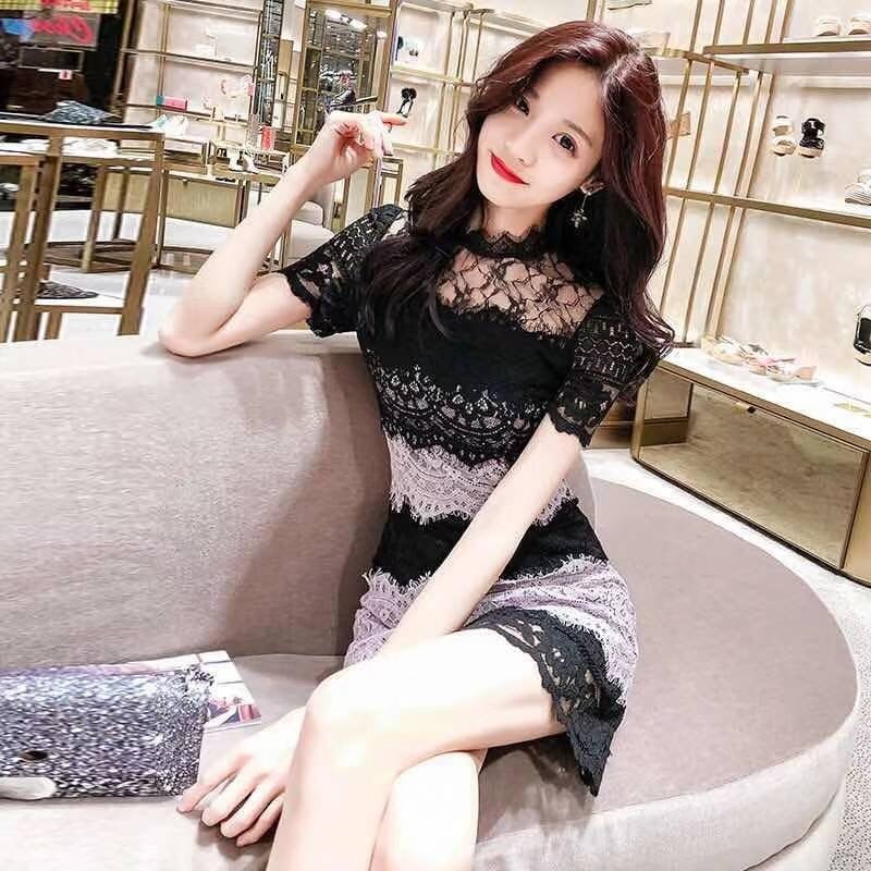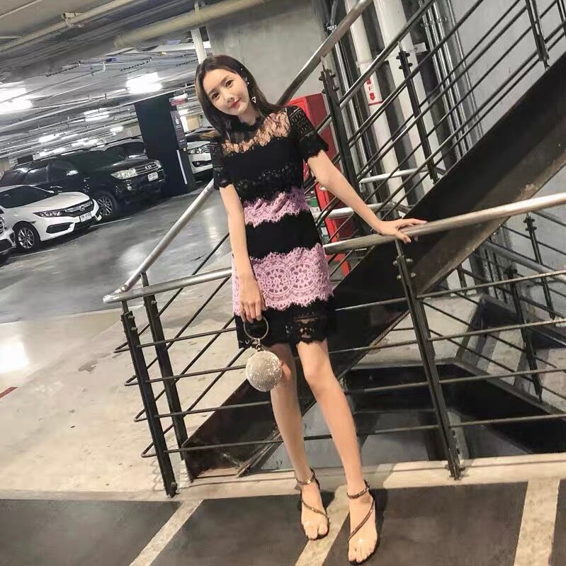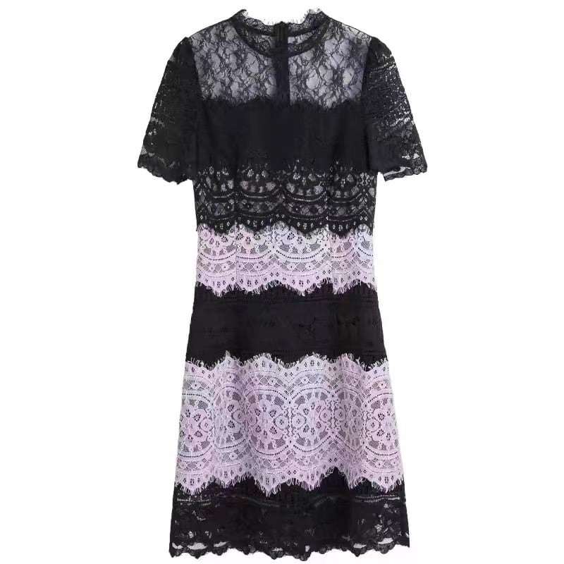 【dress】レース配色半袖ワンピース PX11016