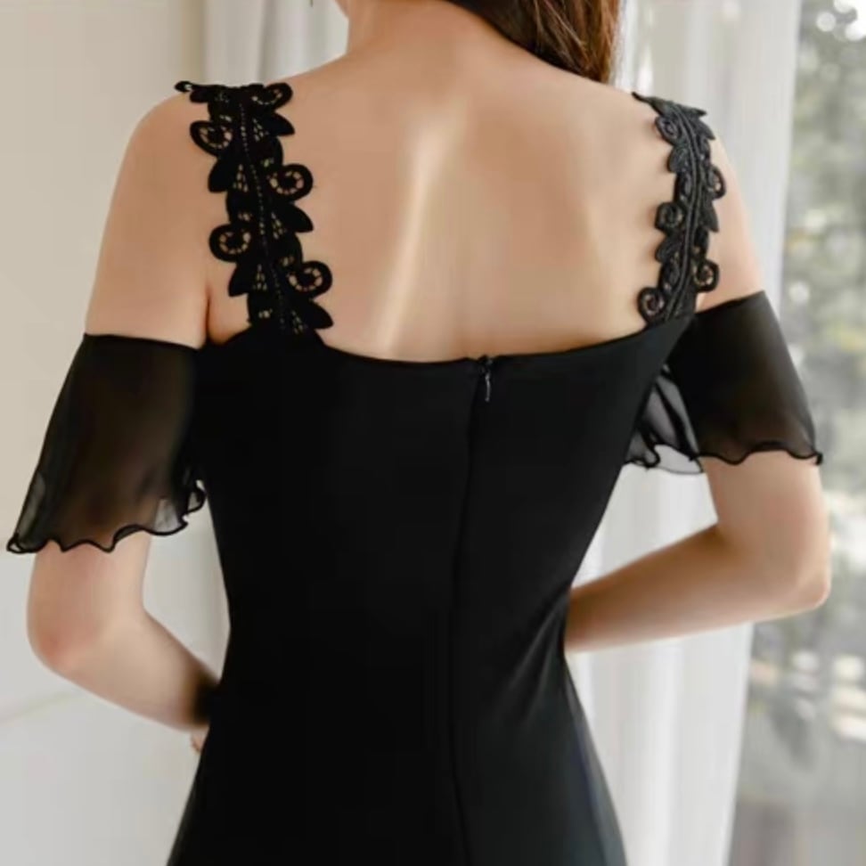 【dress】オープンショルダー裾シースルー切り替えワンピース MA1159