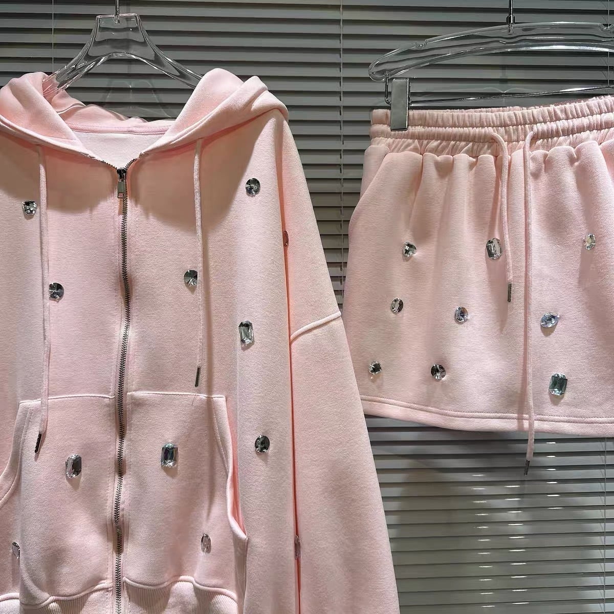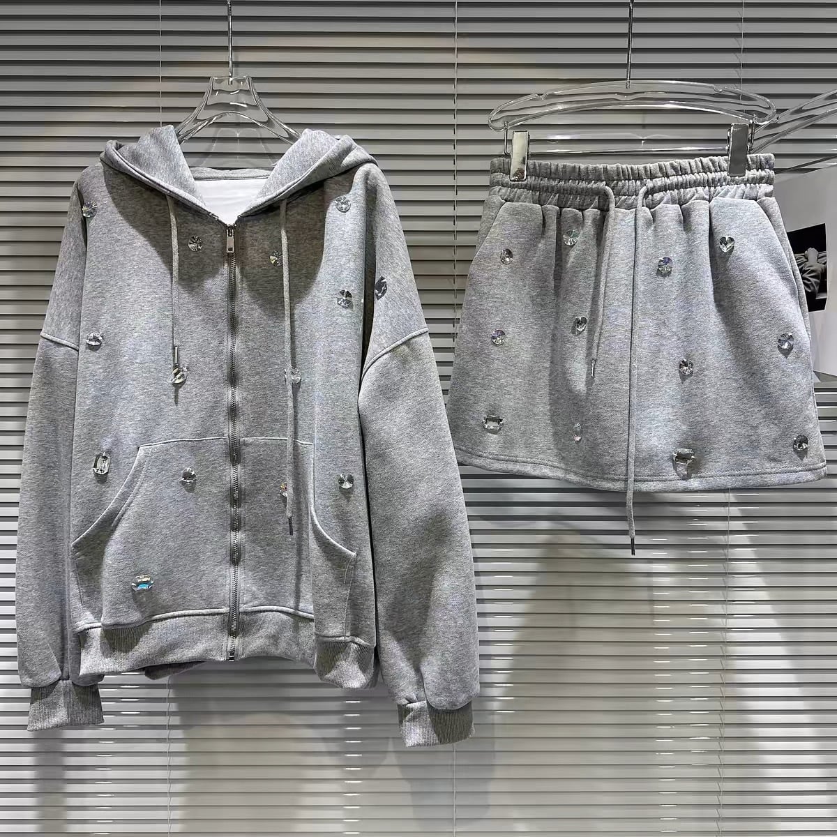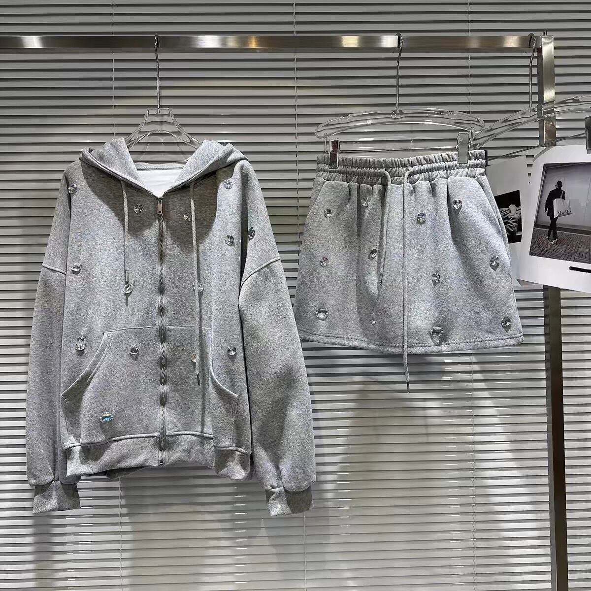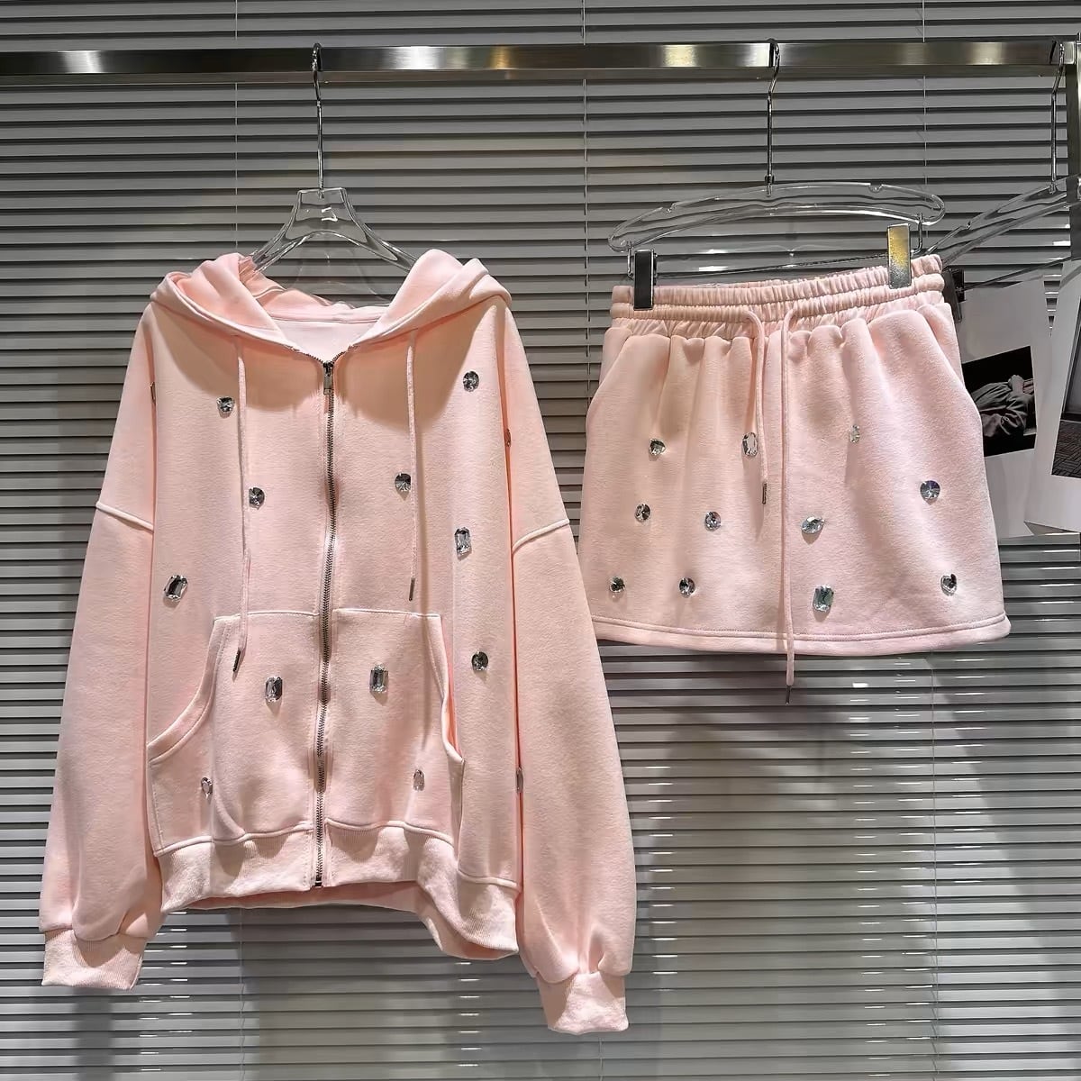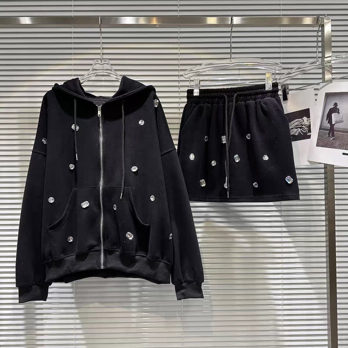 【set】ビジュー付きジャケットxミニスカート3色 HB11020