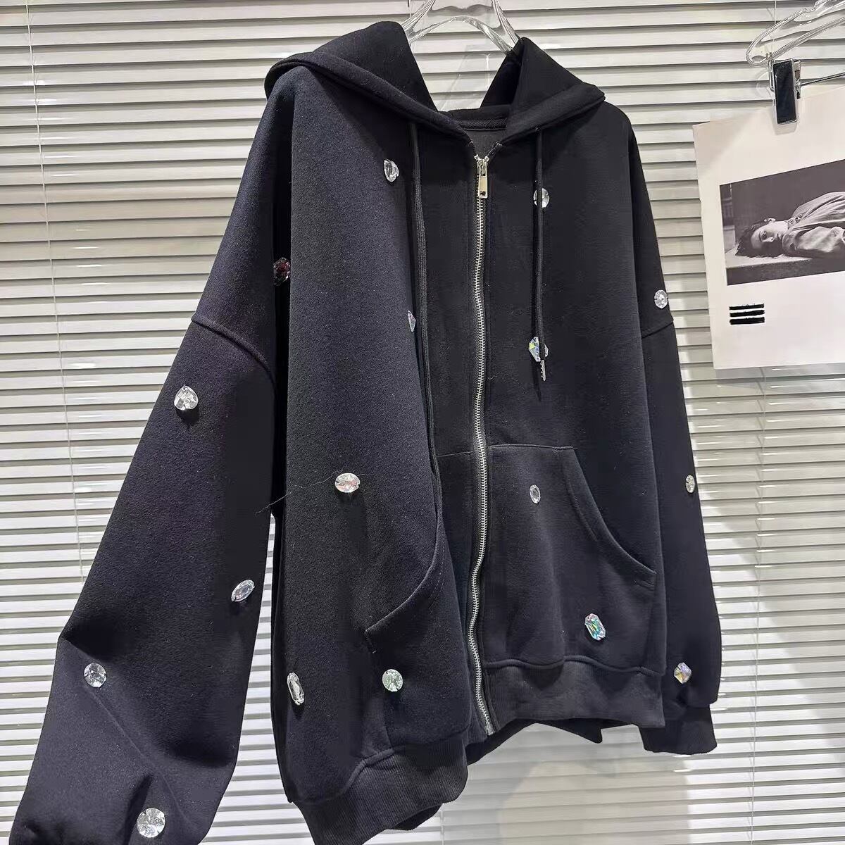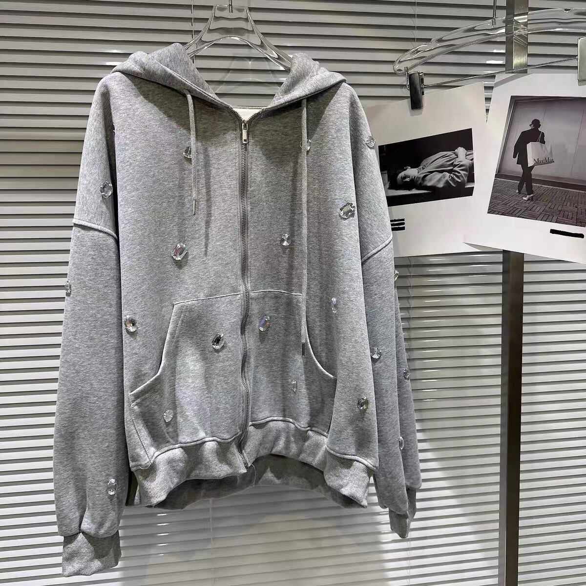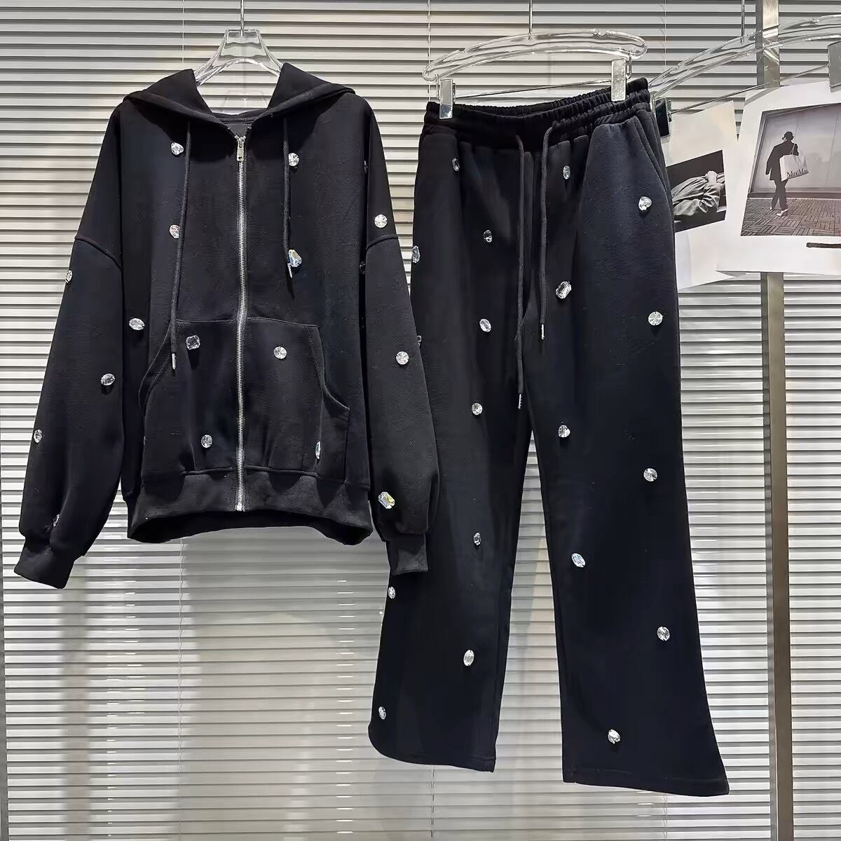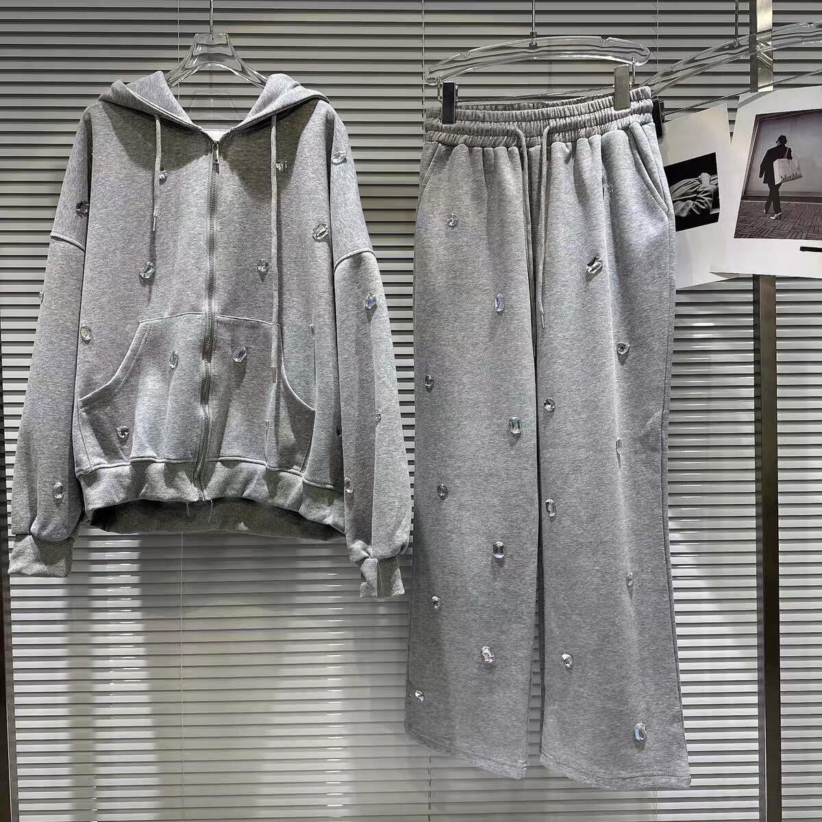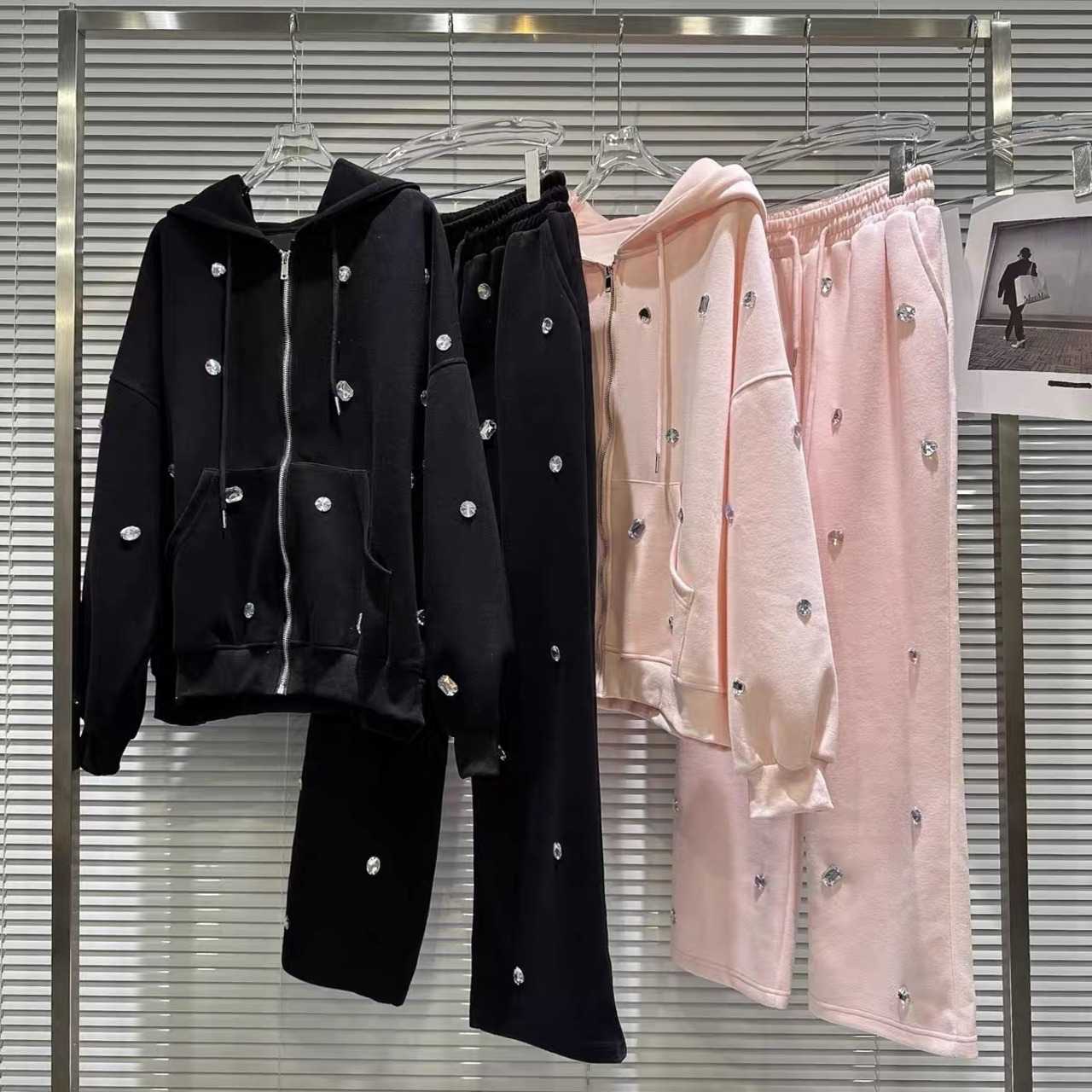 【set】ビジュー付きパーカーxパンツ3色 HB11021