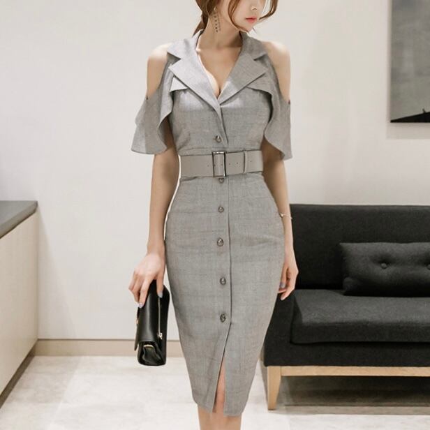 【dress】オープンショルダーベルト付きワンピース MA1171