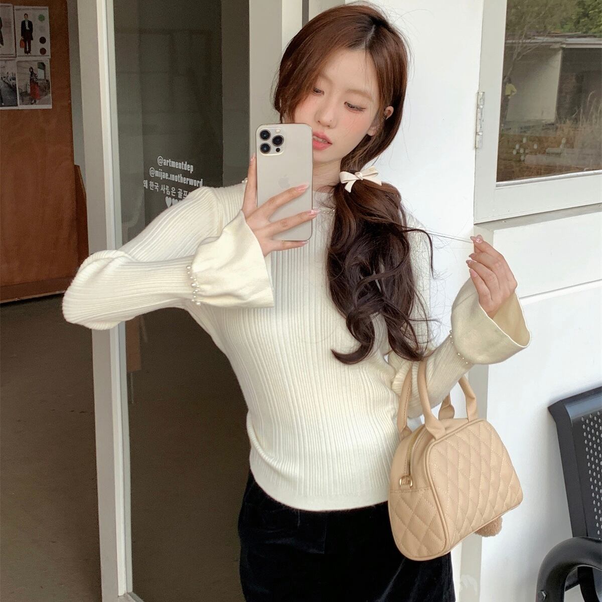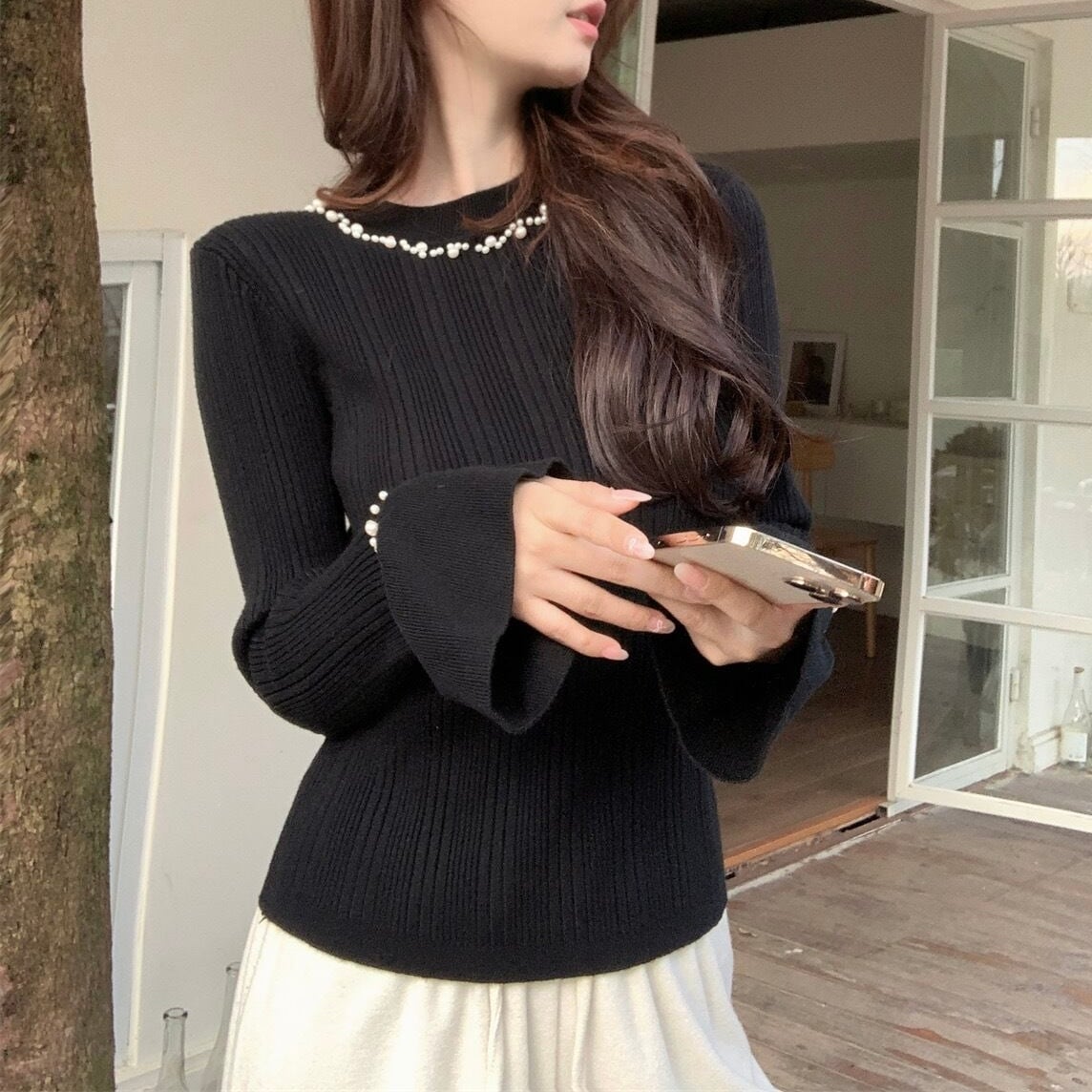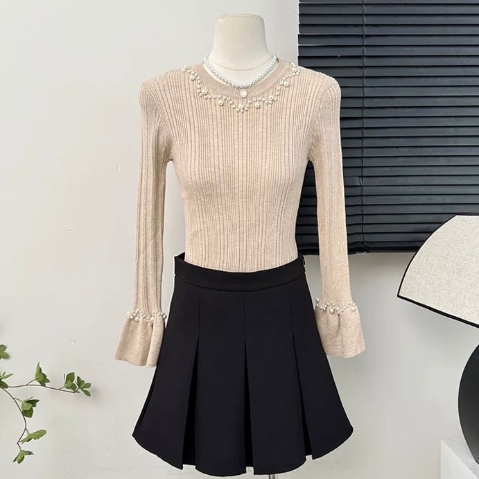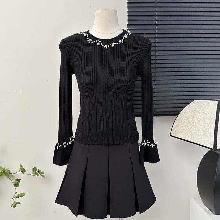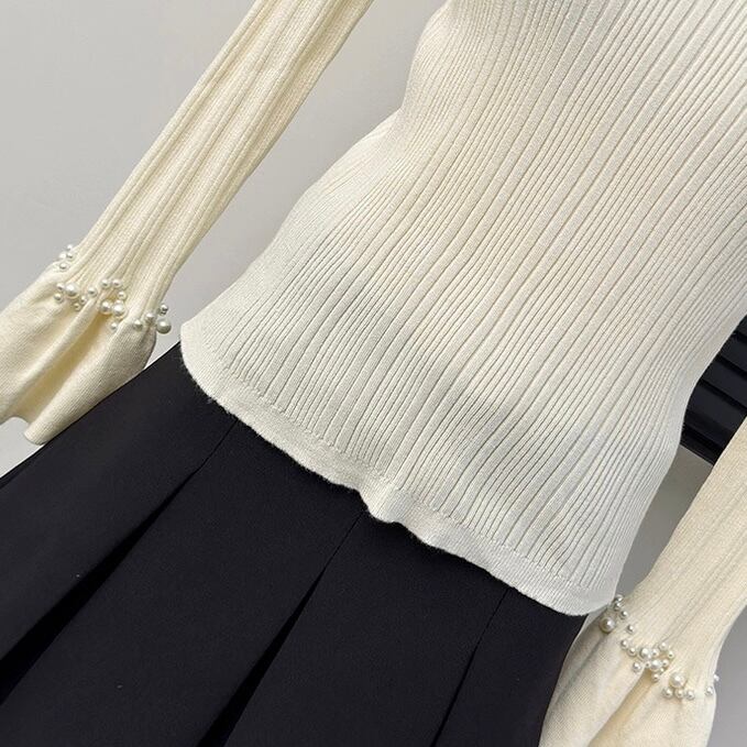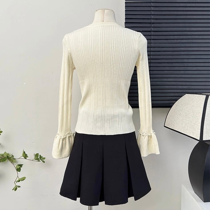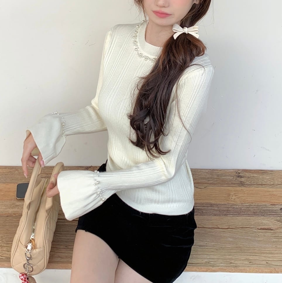 【tops】パールフレアスリーブニットトップス4色 HB11051