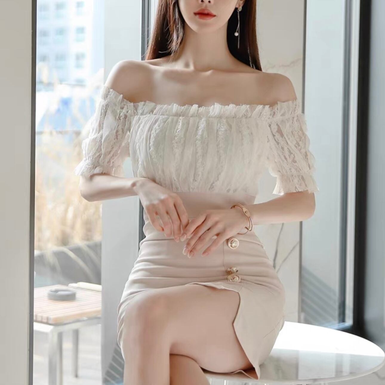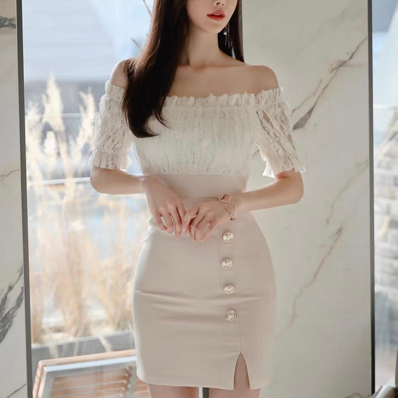 【dress】ハイウエストドッキングワンピース MA1183