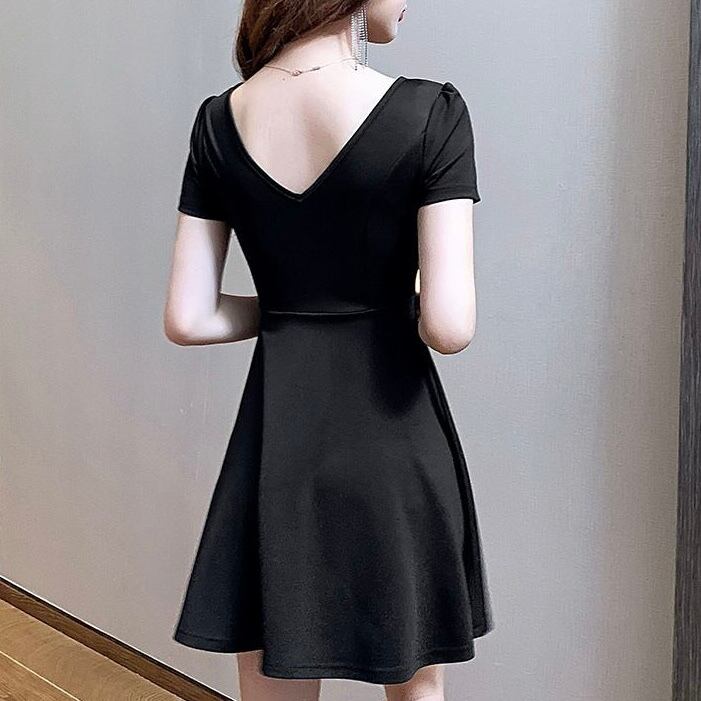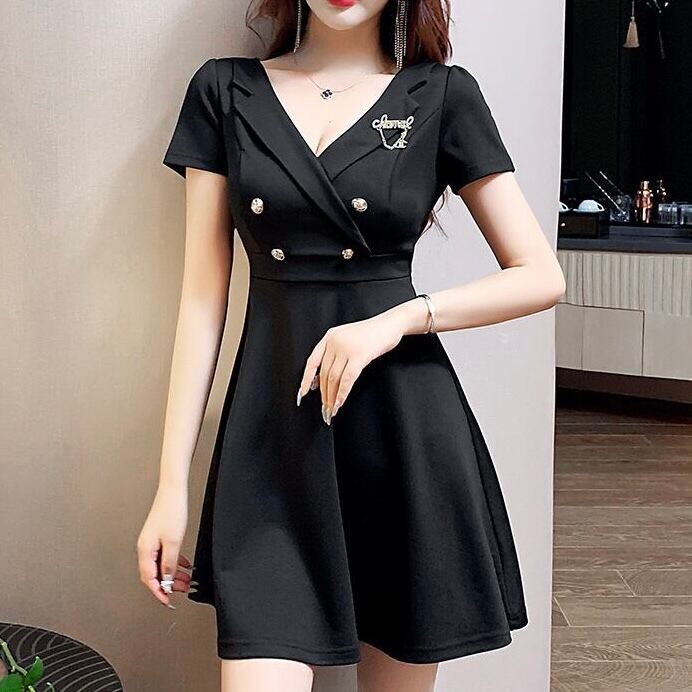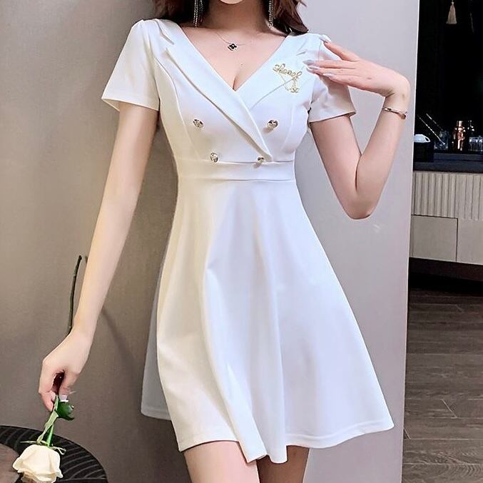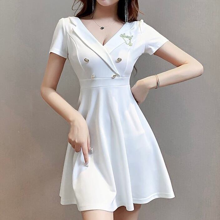 【dress】ゴールドボタン襟付き半袖ワンピース MA1185