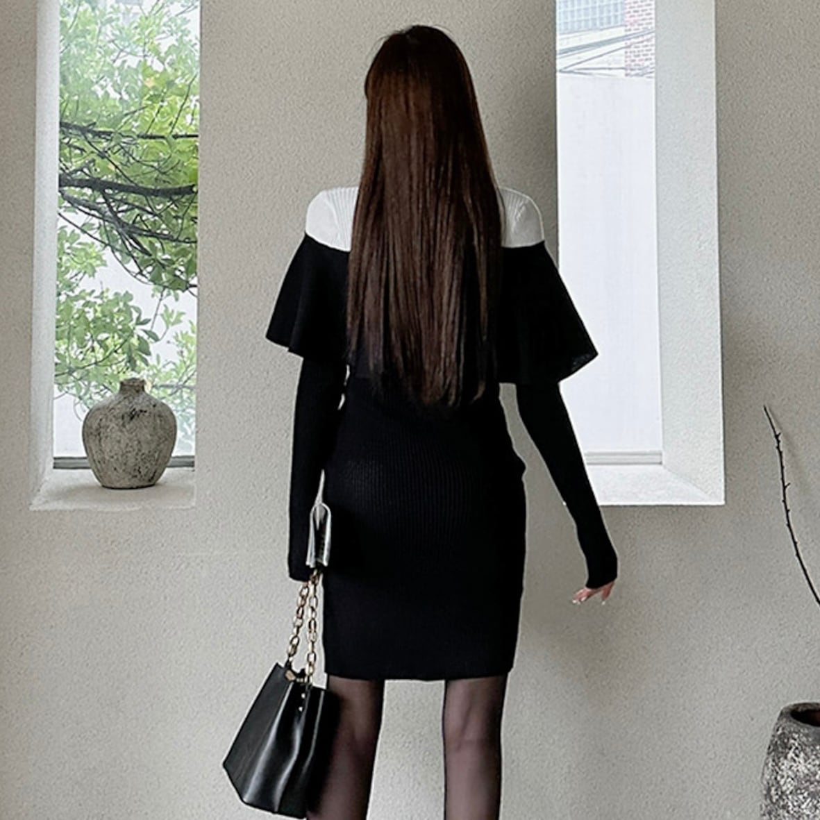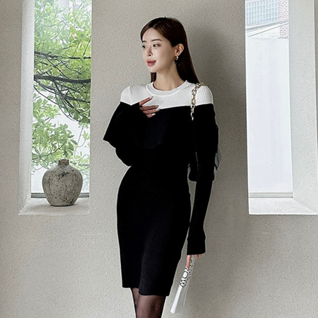 【dress】ツートーンオフショルダー風デザインワンピース MA1187