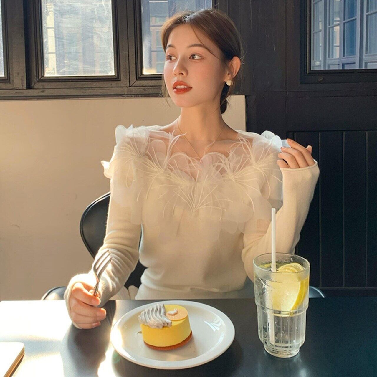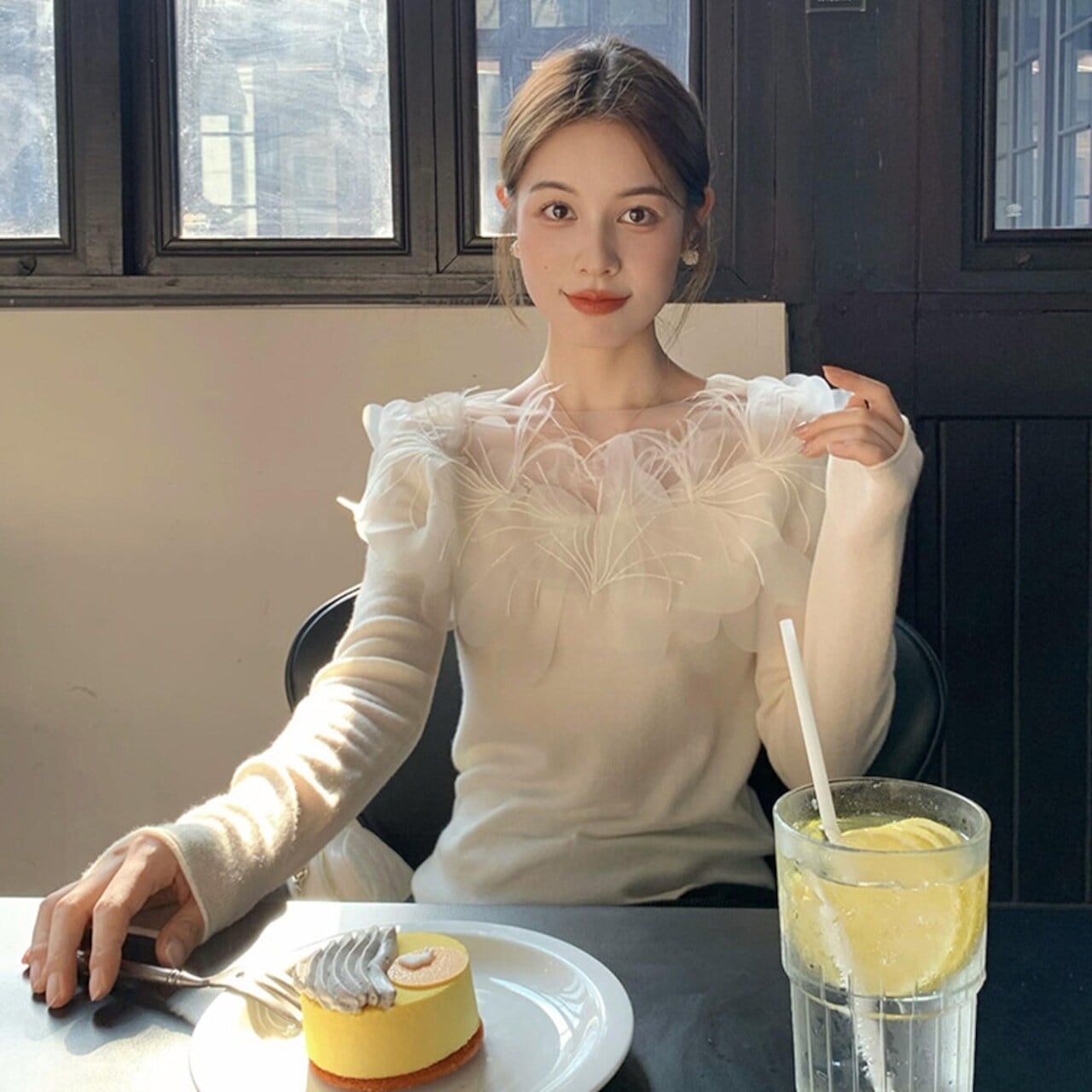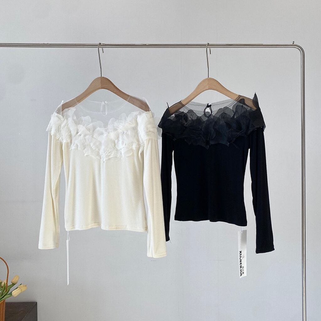 【tops】チュールドッキングフラワートップス2色 HB11076