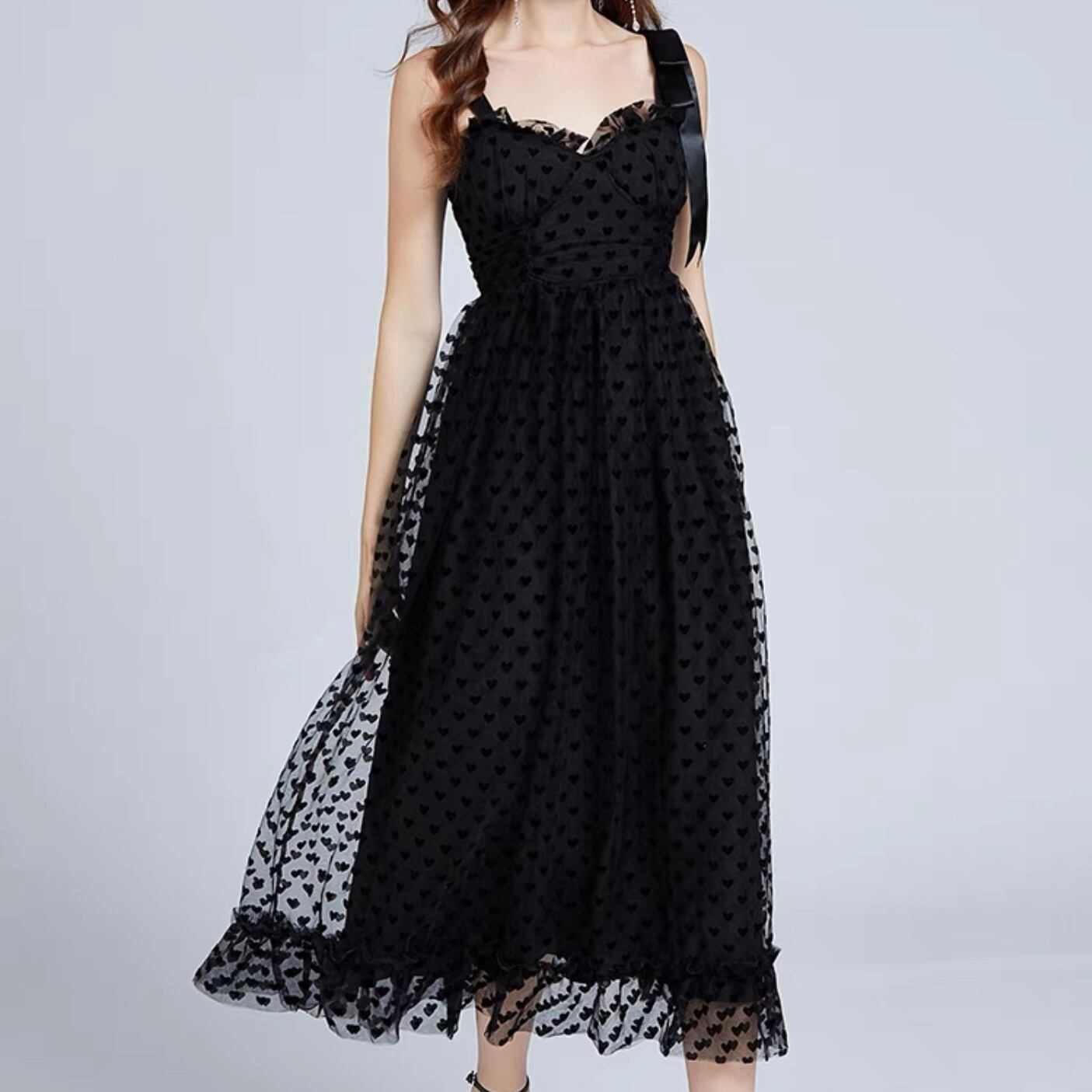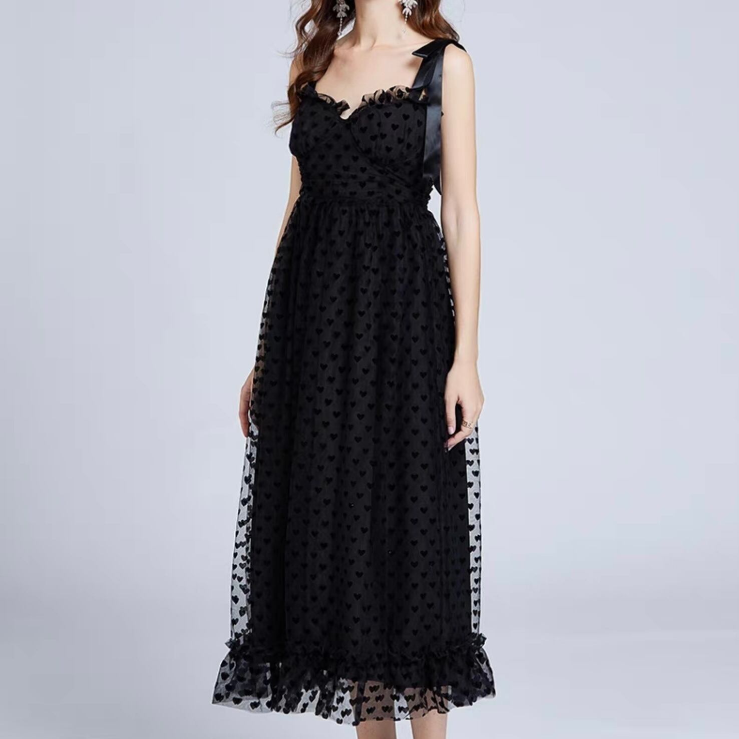 【dress】シースルーハートフリルワンピース MA1193