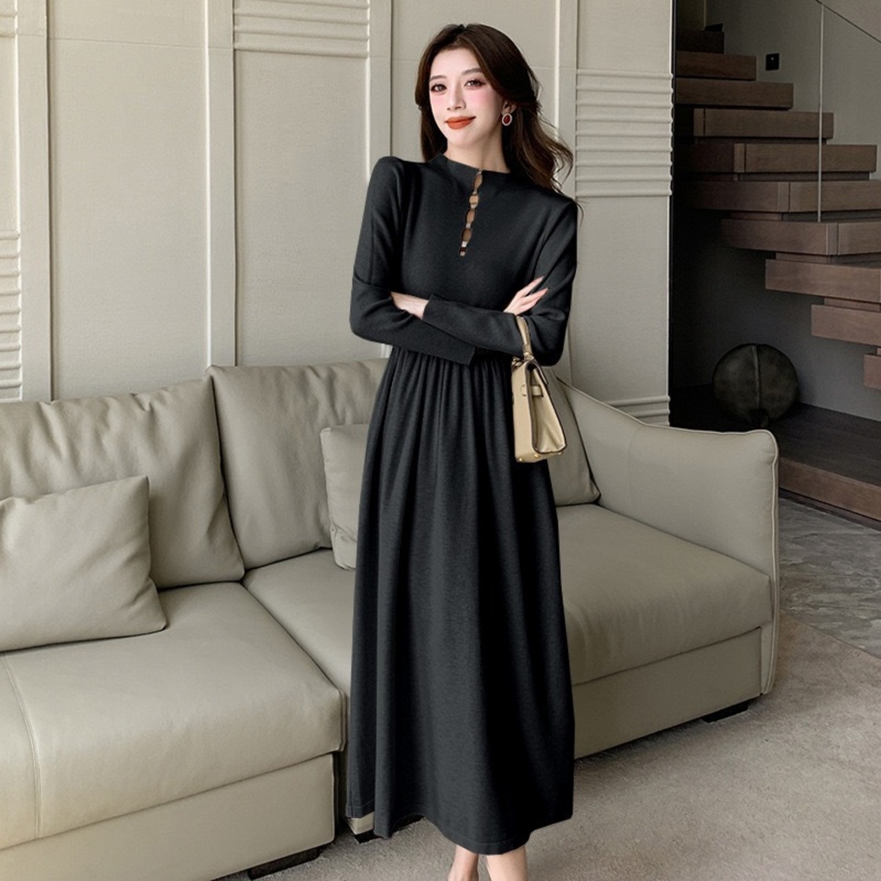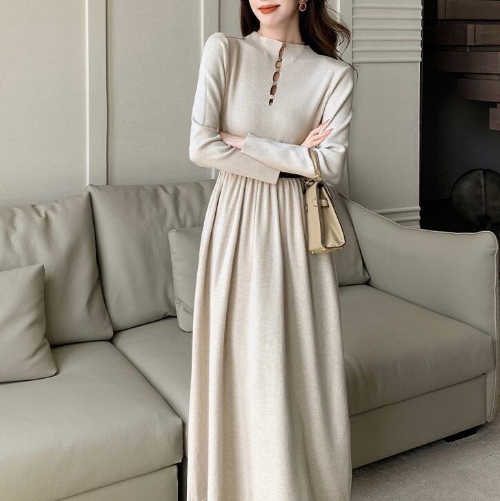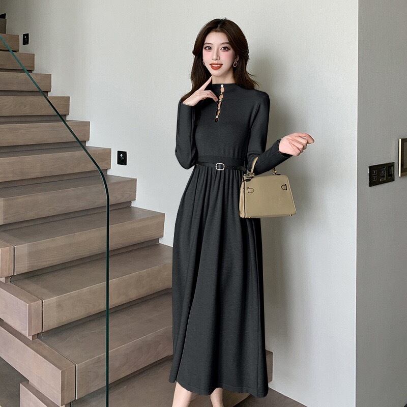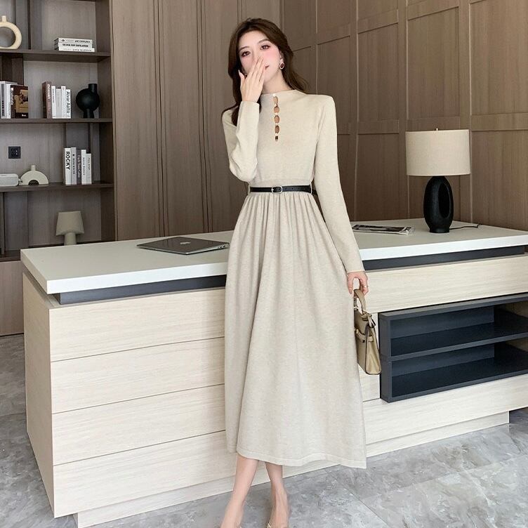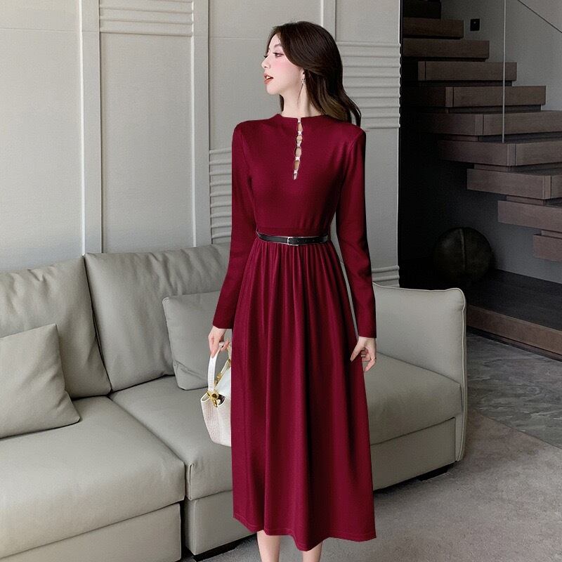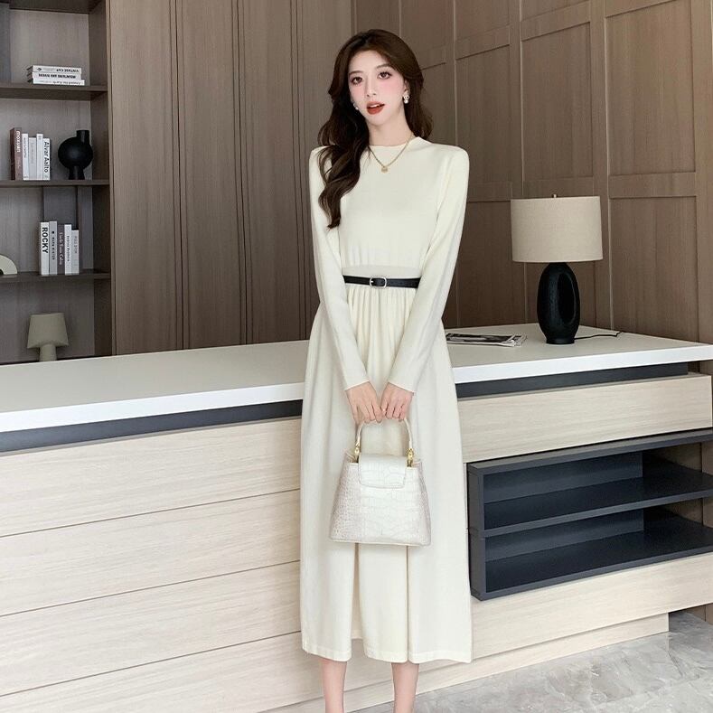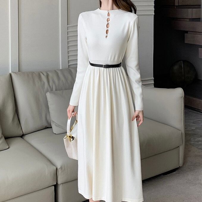 【dress】ベルト付き前後2wayAラインニットワンピース4色 IR11080